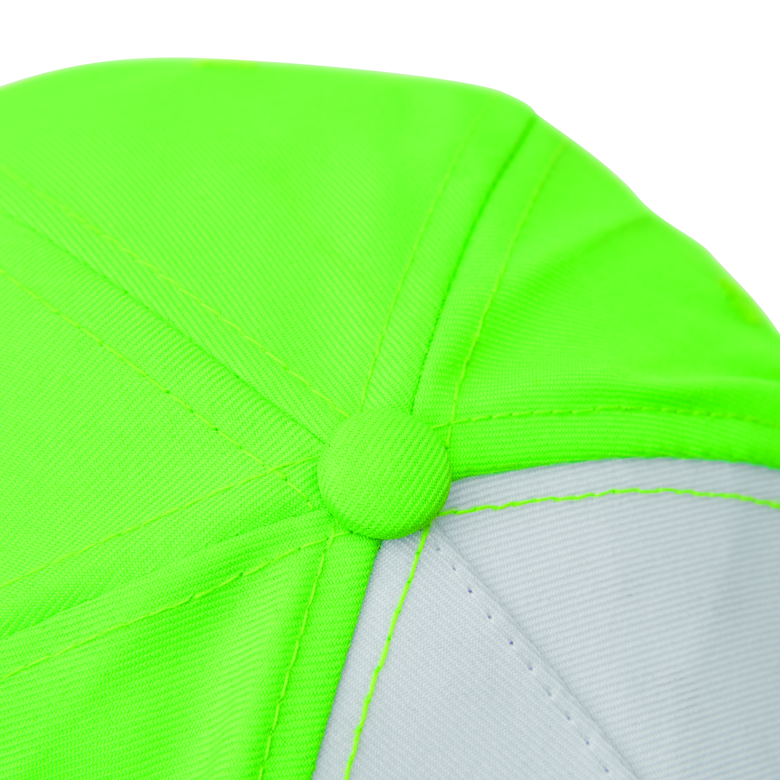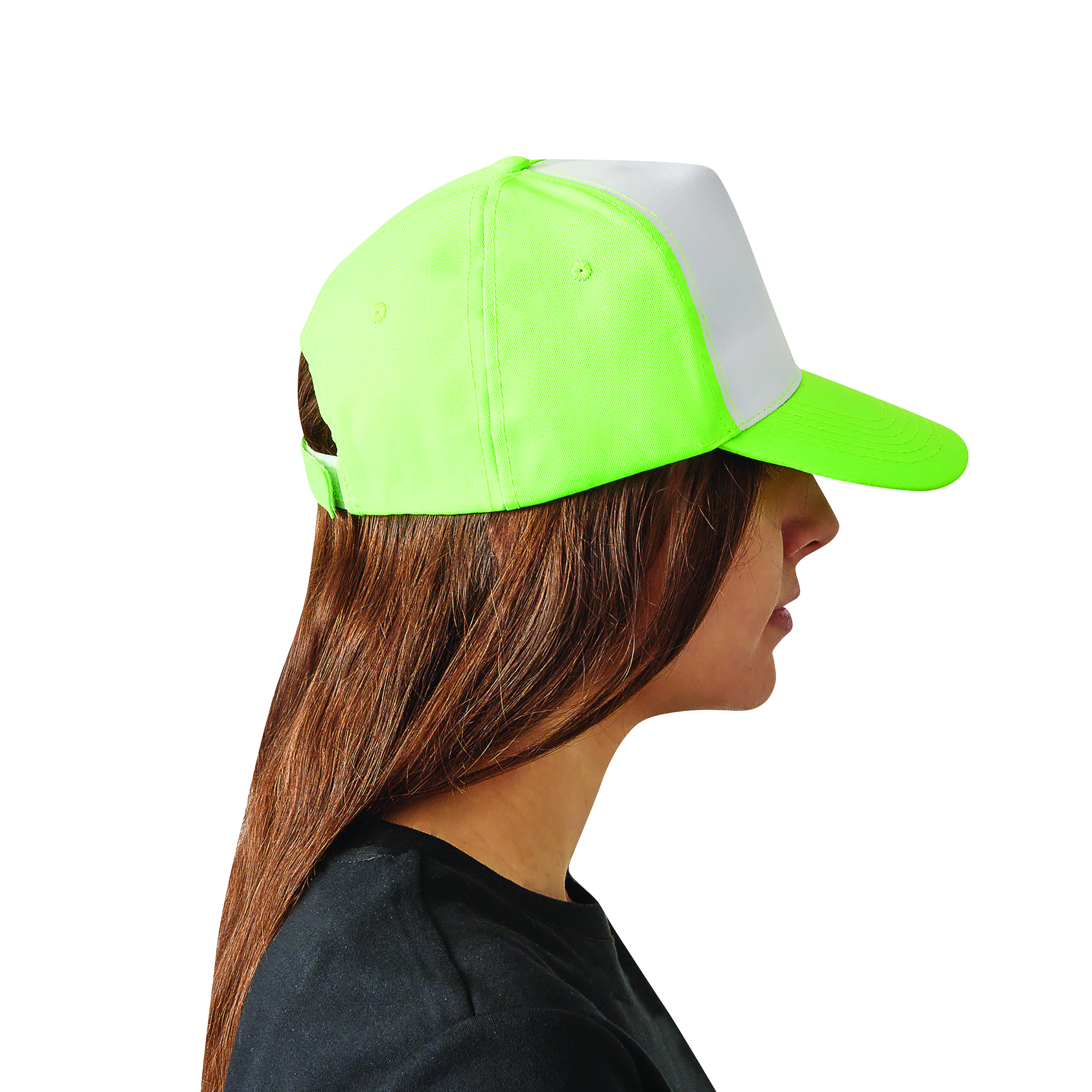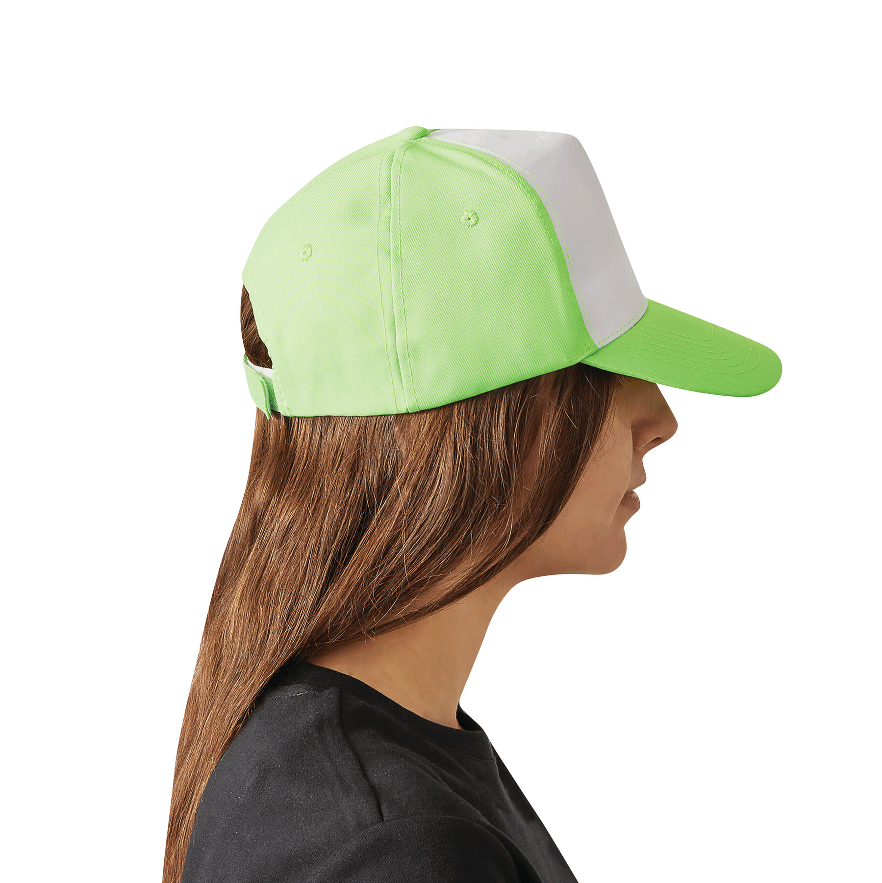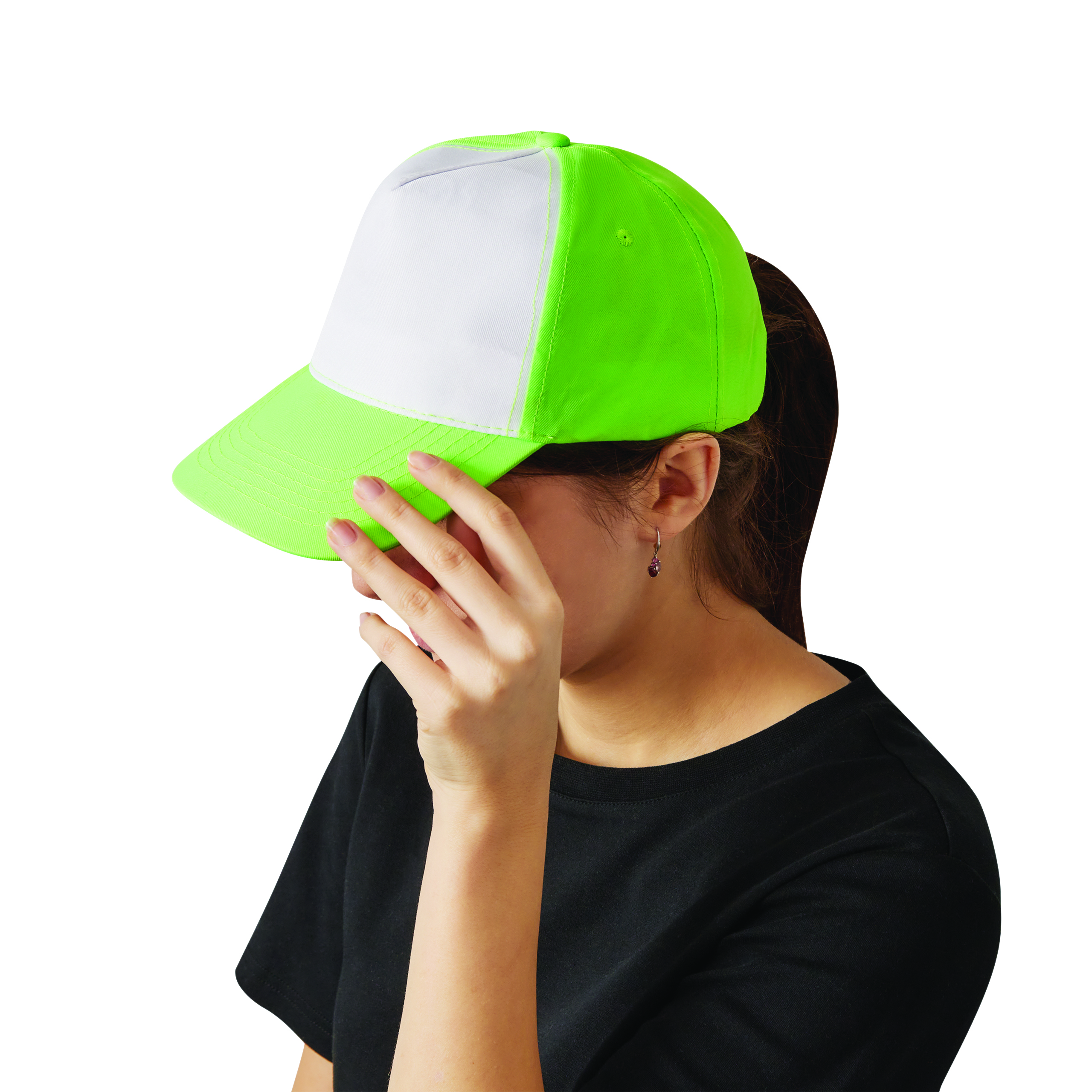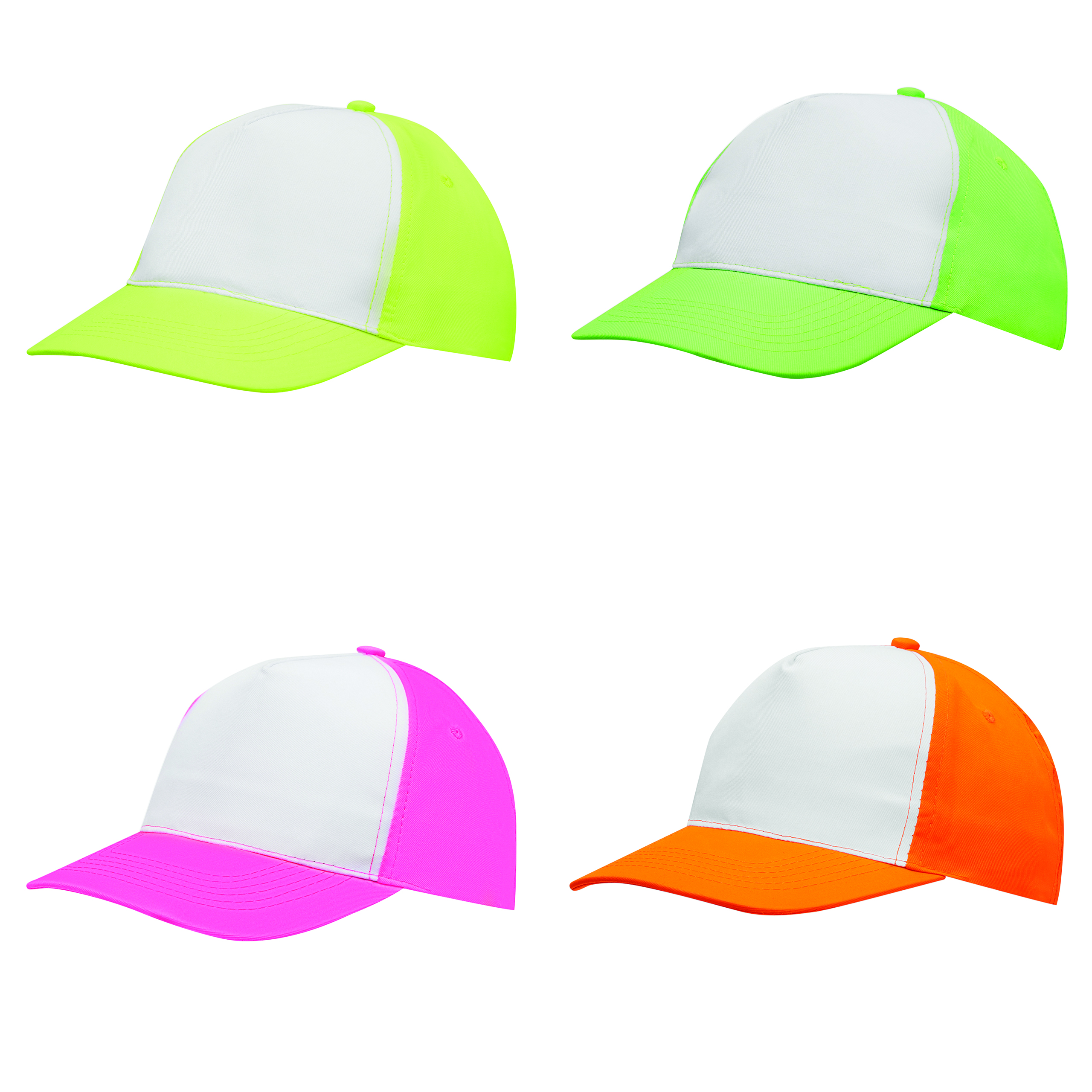 5 segmentowa czapka SHINY. 2-kolorowa z łatwym do nadrukowania wzmocnionym panelem przednim, 4 obszywane wywietrzniki, regulowana zapięciem na rzep z tyłu.