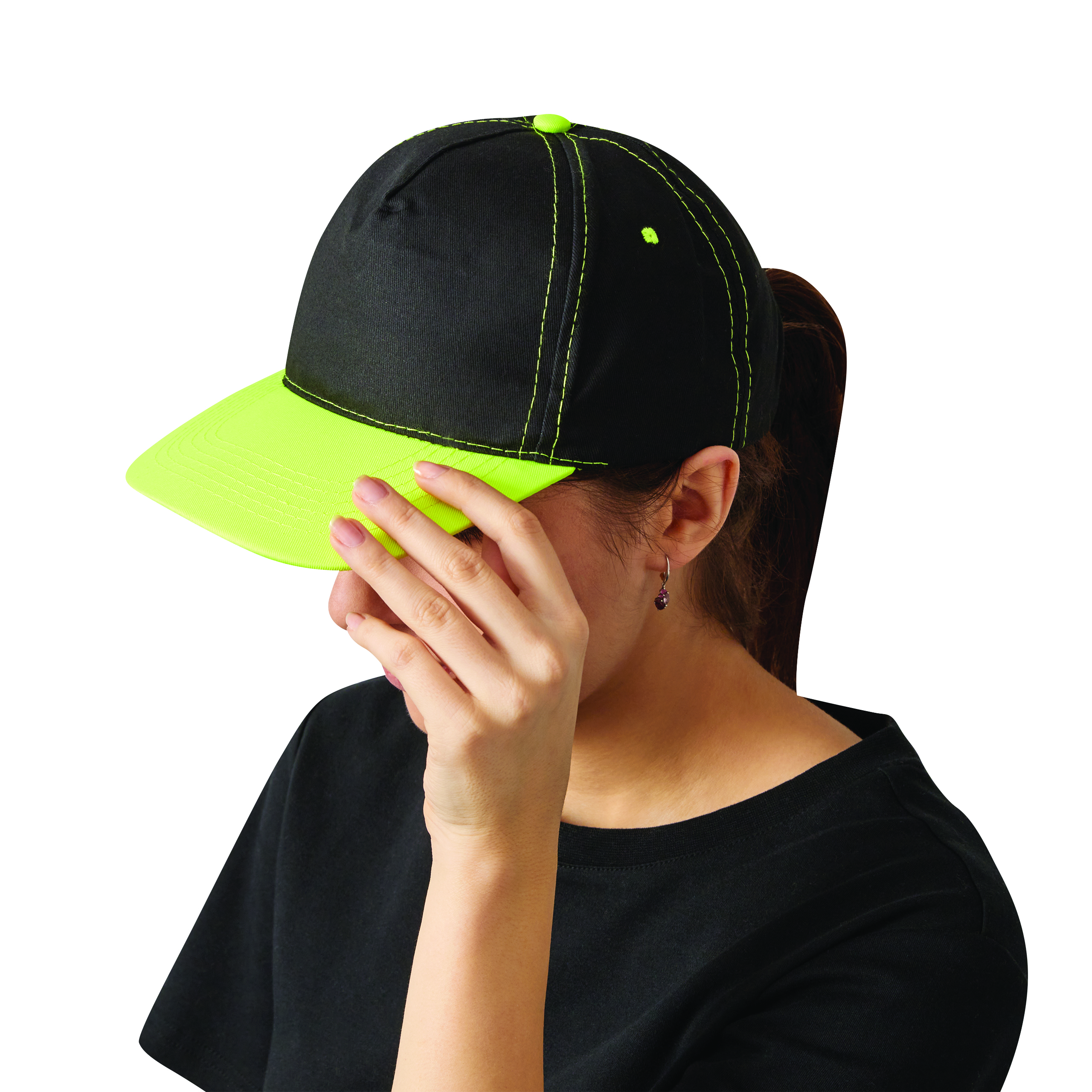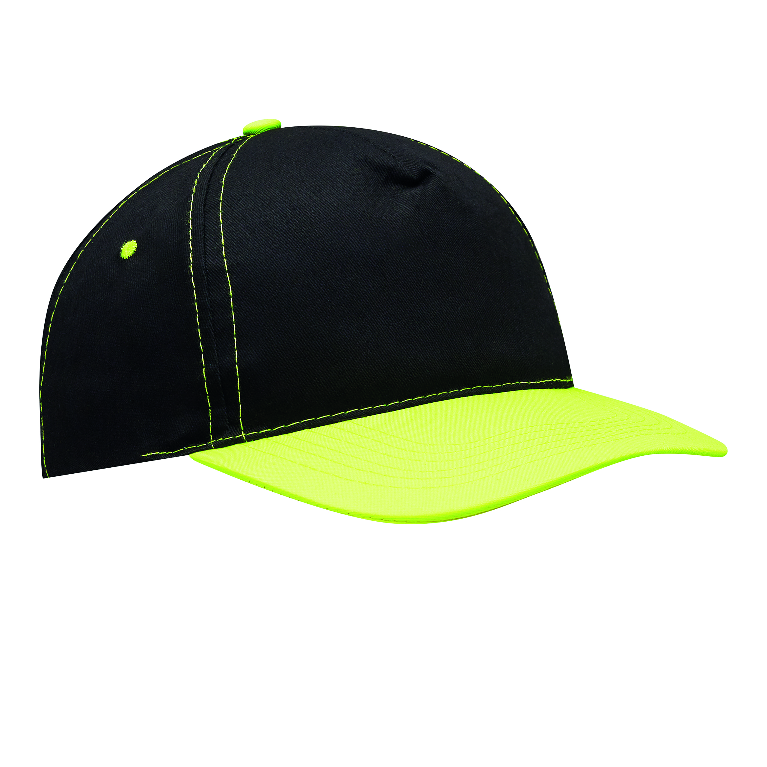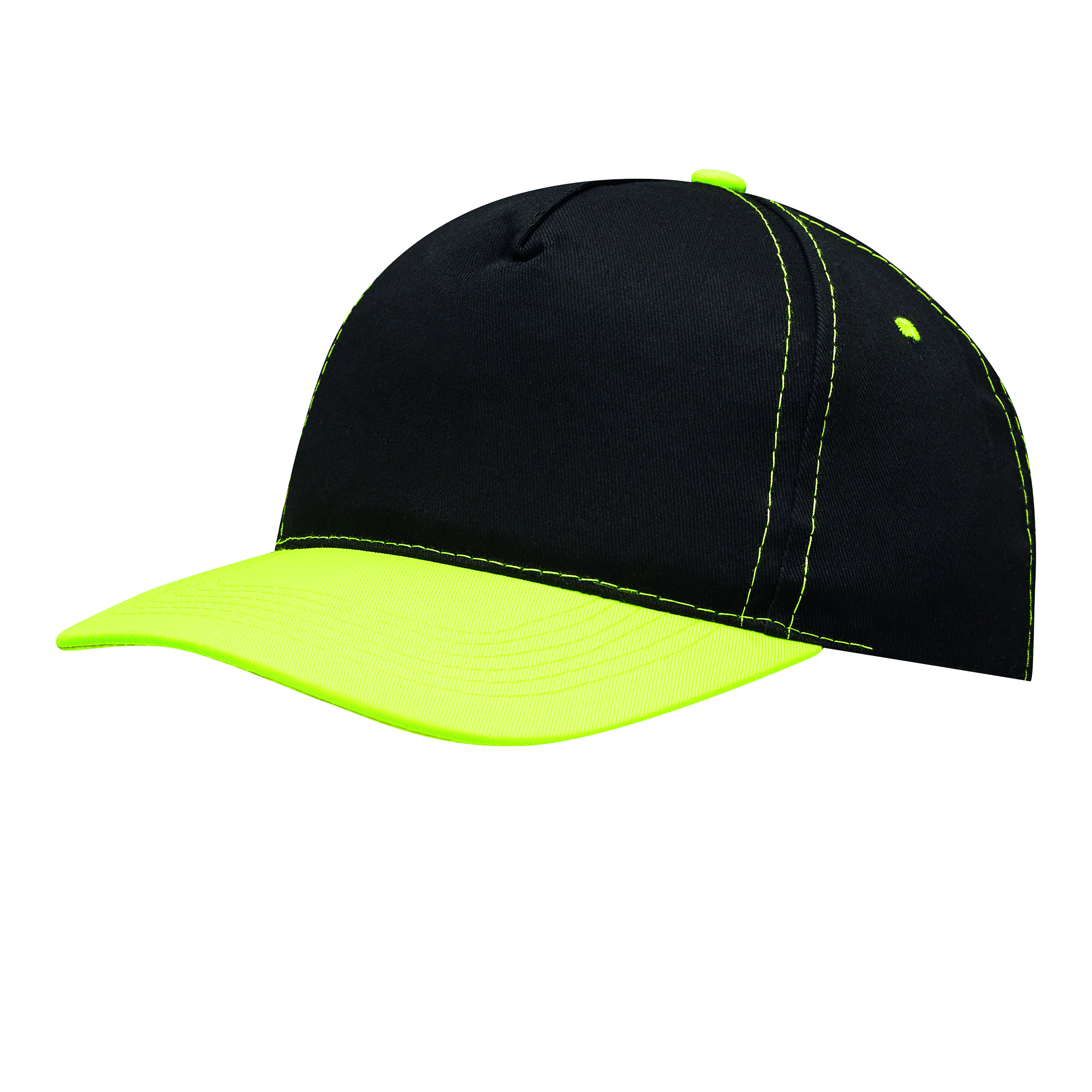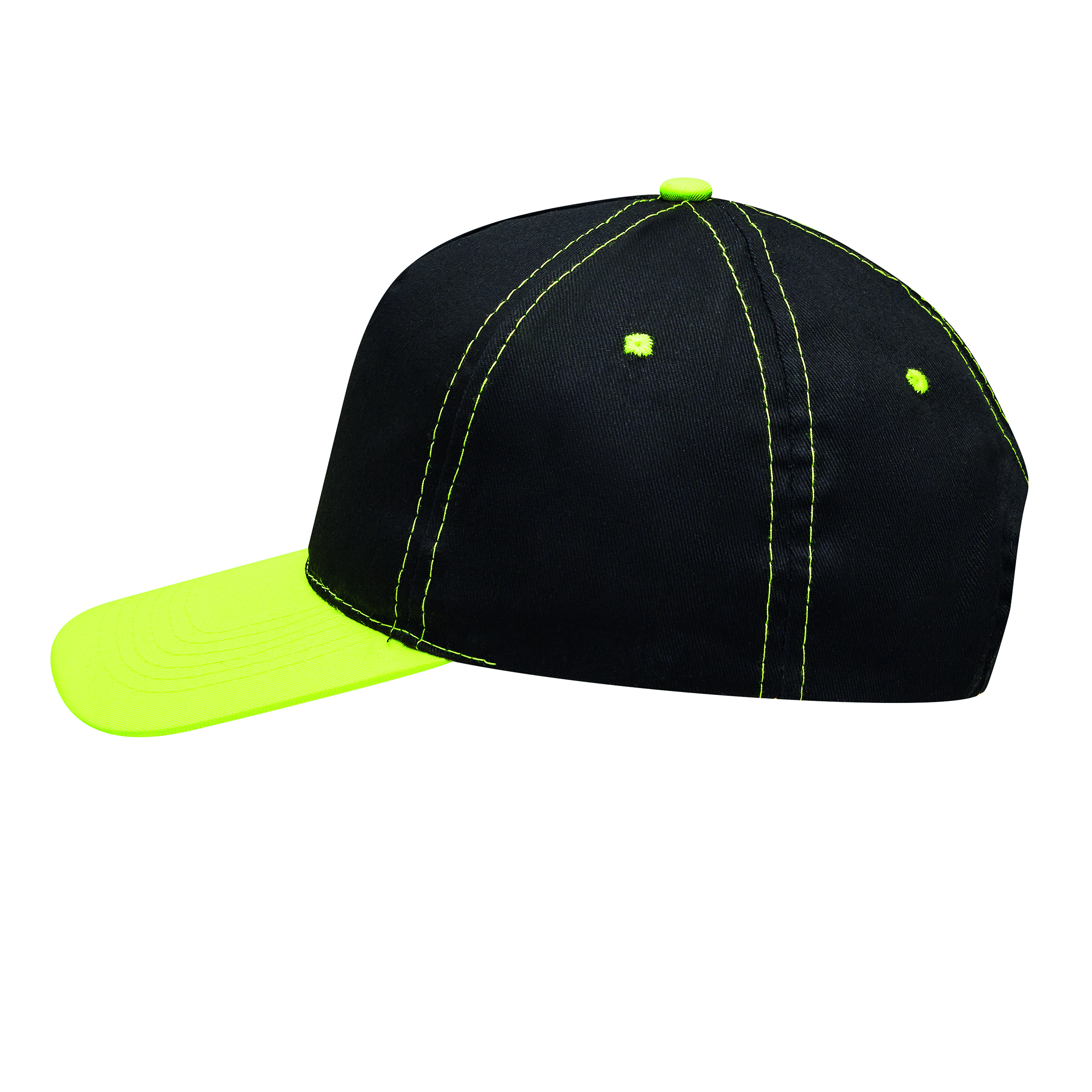 5 segmentowa czapka baseballowa SPORTSMAN. Wzmocniony przedni segment doskonały na nadruk, daszek, 4 haftowane otwory wentylacyjne, szwy i guzik w neonowych kolorach, rozmiar regulowany zapięciem na rzep z tyłu.