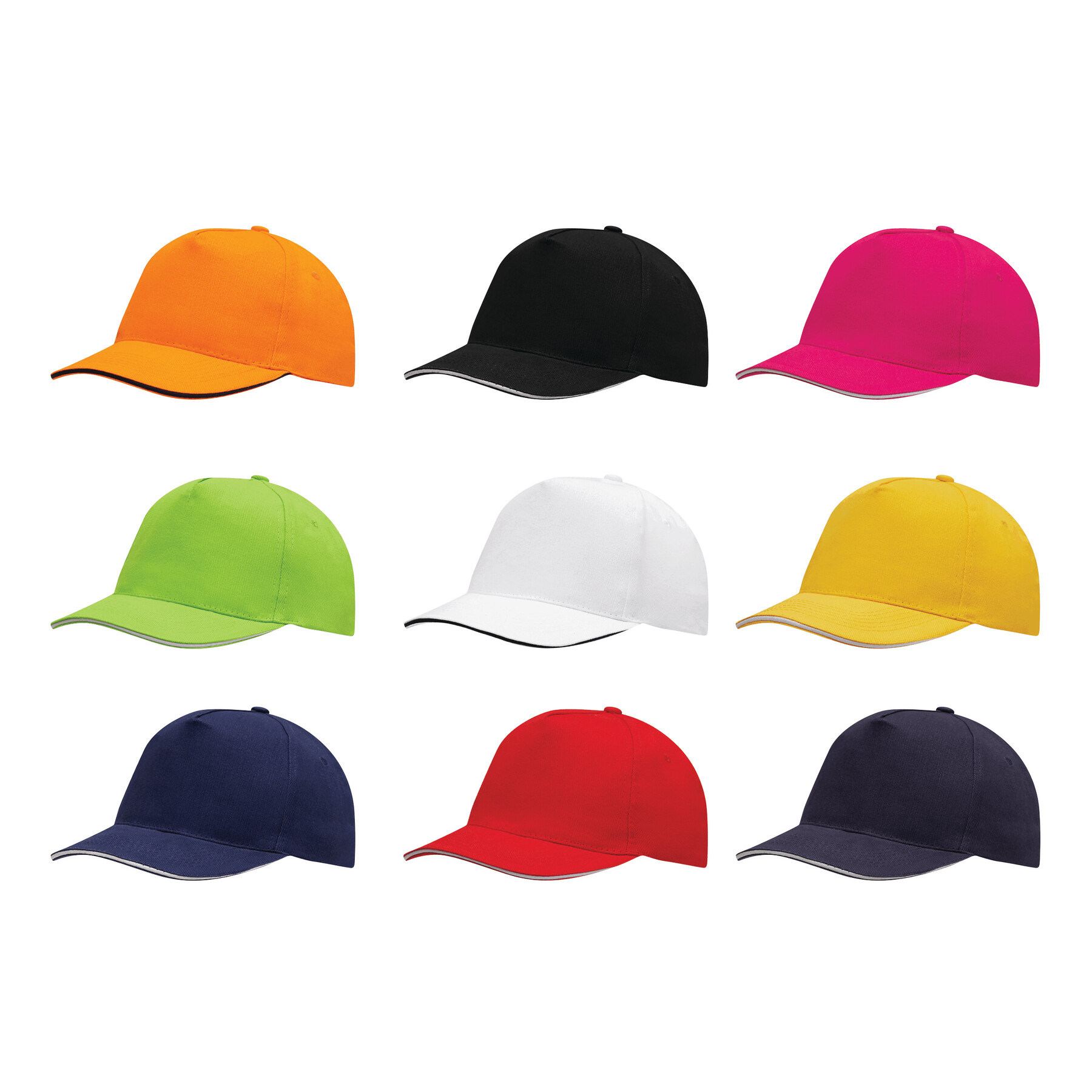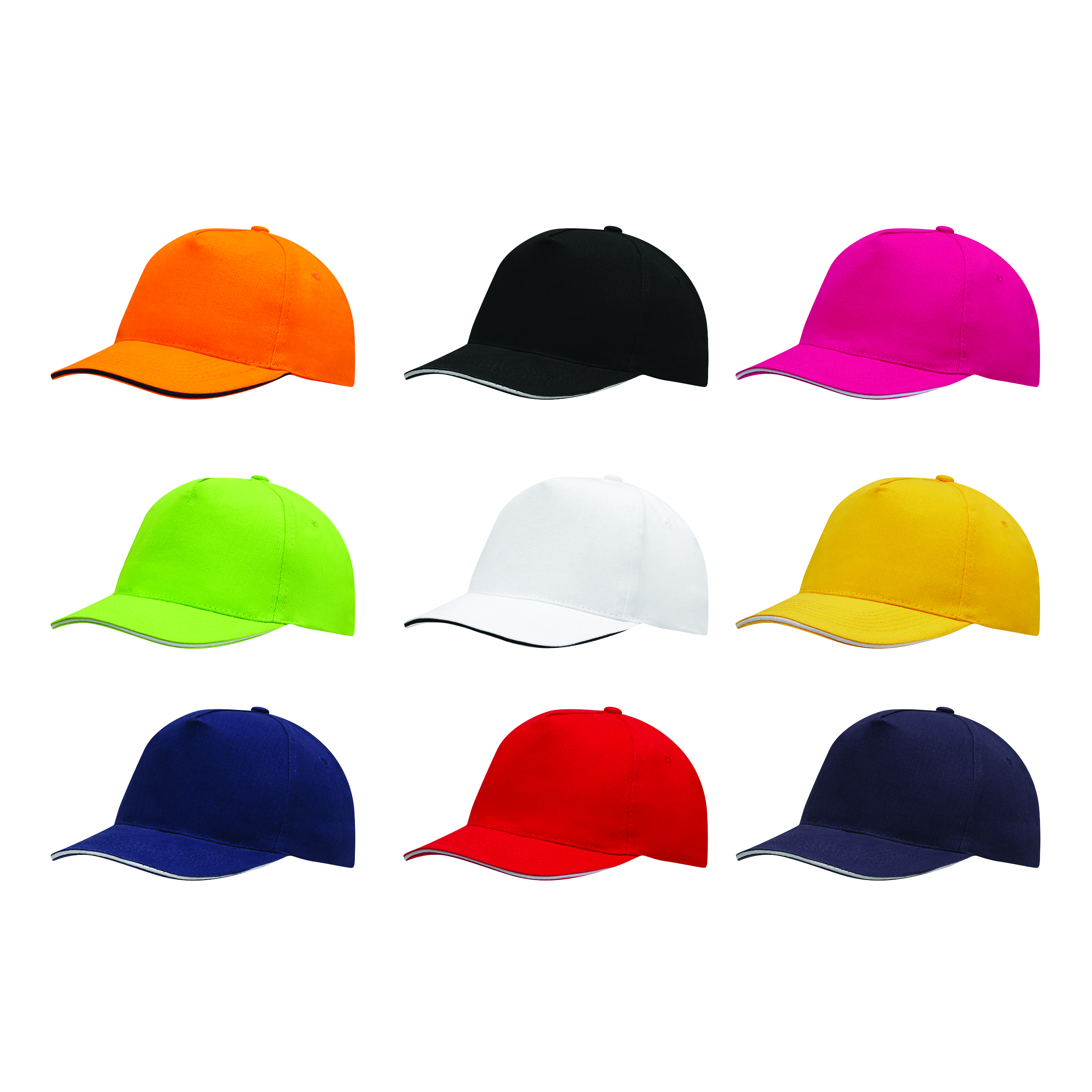 Czapka baseballowa WALK wykonana z grubej szczotkowanej bawełny. 5-segmentowa, wzmocniony przedni segment, 4 haftowane otwory wentylacyjne, regulowana paskiem na rzep z tyłu, 100% bawełna.
