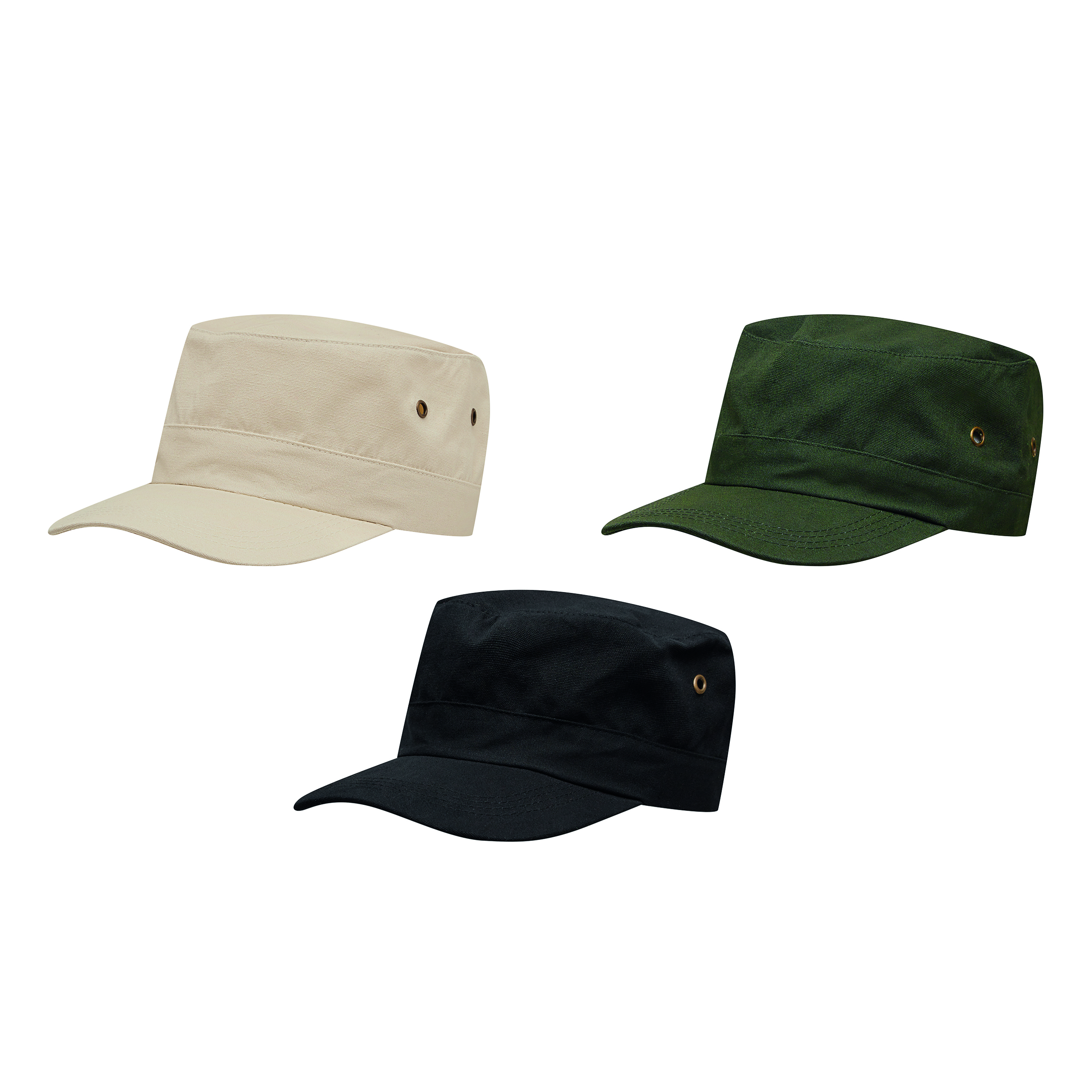Czapka wojskowa SOLDIER z mocnej bawełny. Z 4 metalowymi wywietrznikami po bokach i metalowym zapięciem. Gramatura ok 250 g/m².