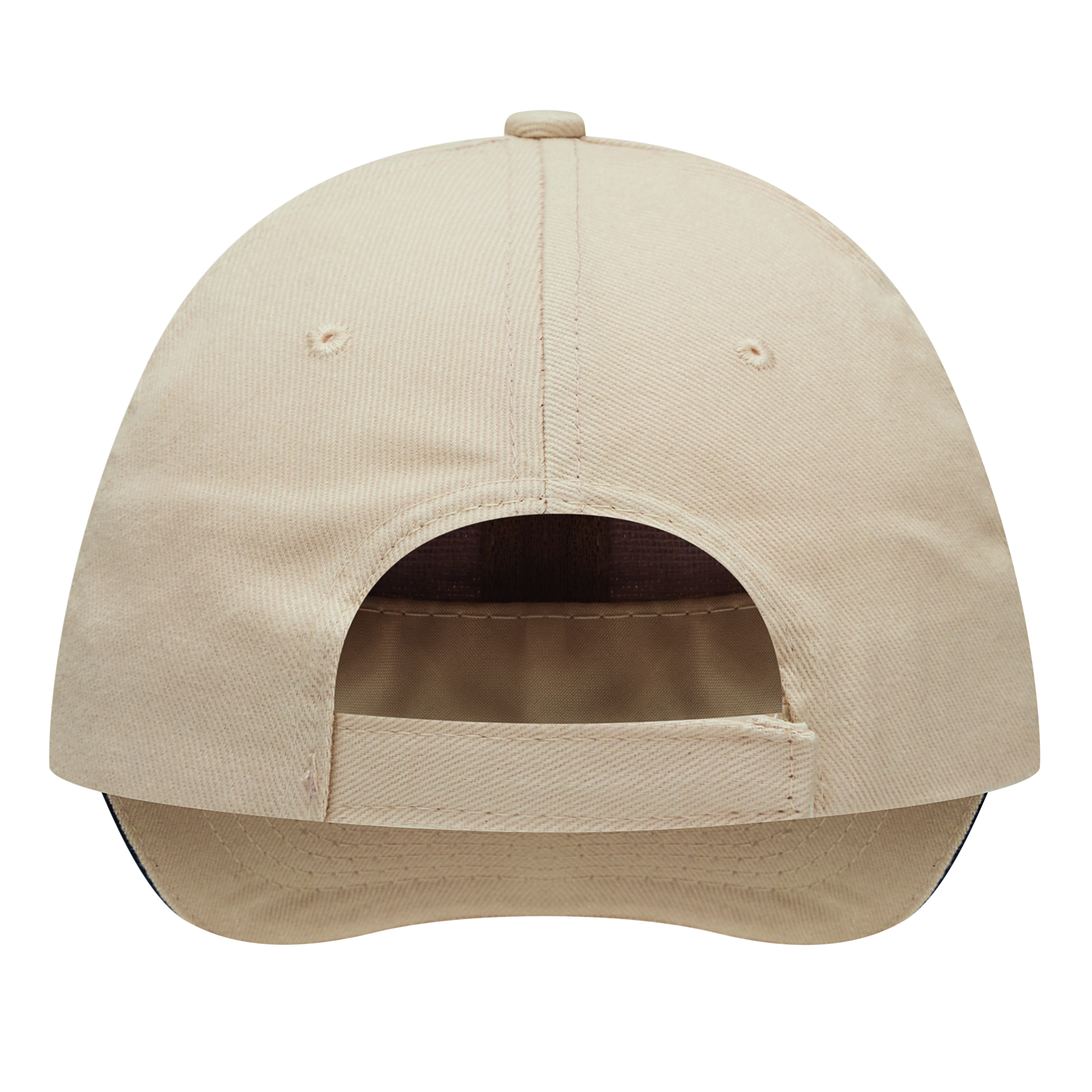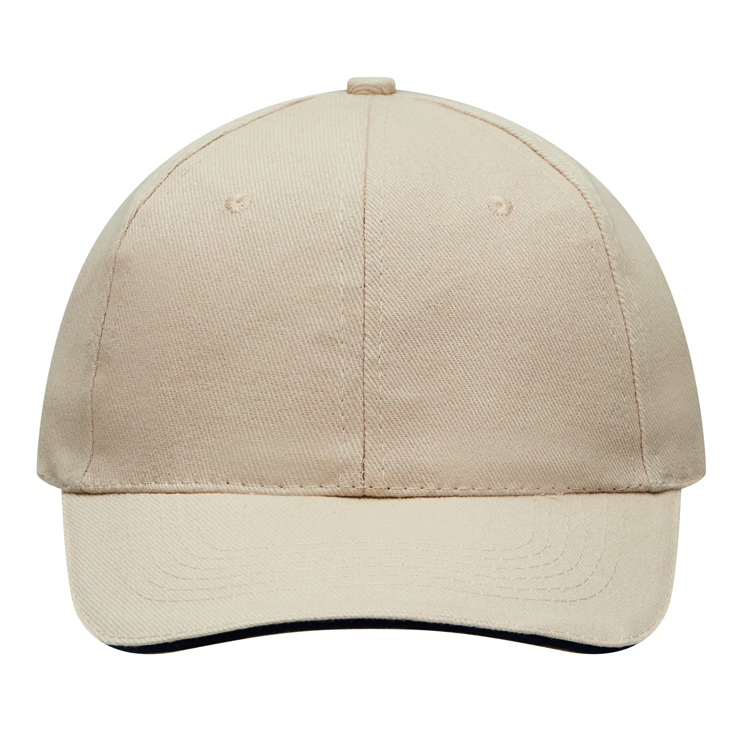 Czapka baseballowa LIBERTY. 6-segmentowa, wykonana z grubej szczotkowanej bawełny, z zapięciem na rzep i wyszywanymi wywietrznikami, wykończenia w kolorze trójwarstwowego daszka, wzmocniony segment przedni, 100% bawełna. Gramatura ok. 280 g/m².