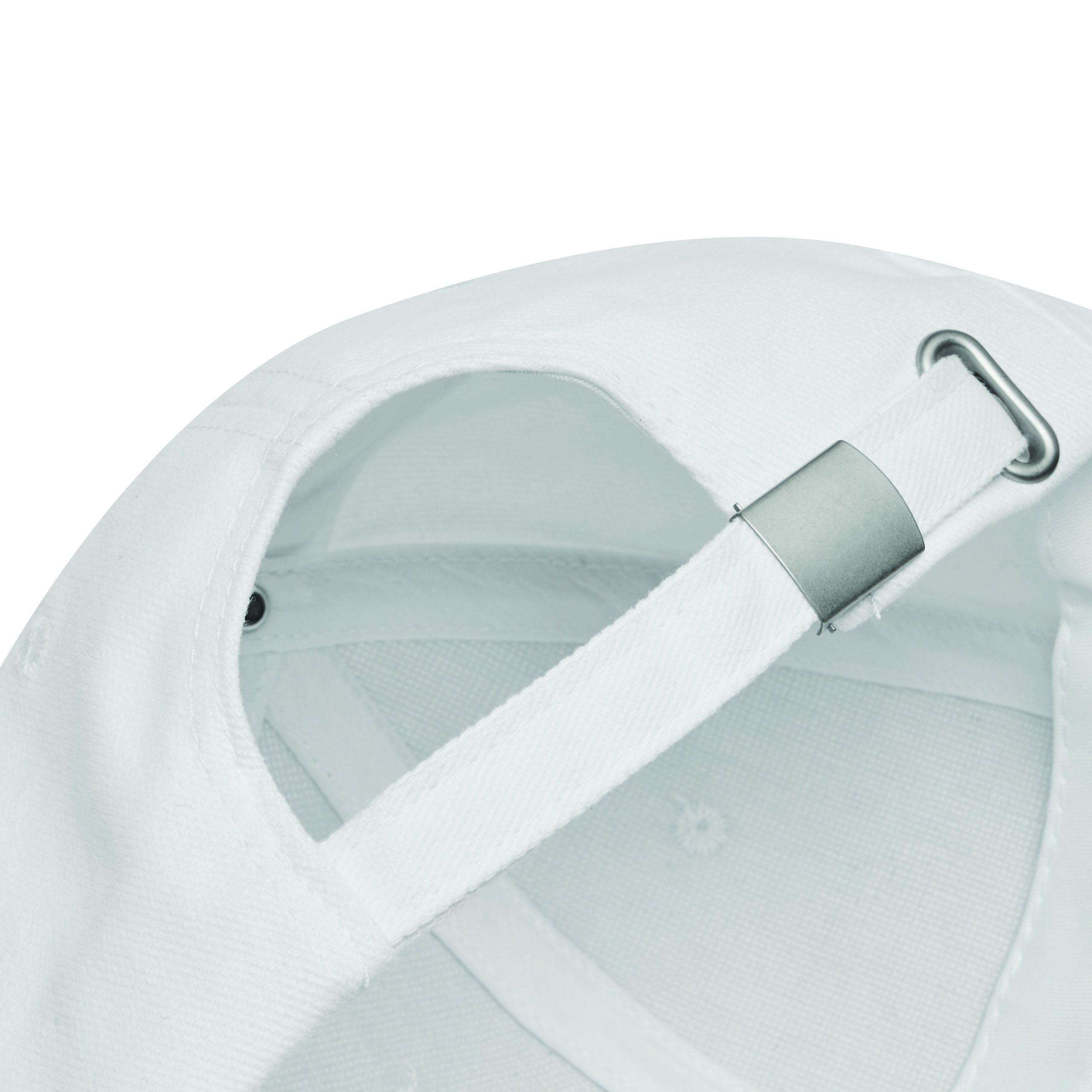 6-panelowa czapka baseballowa COTTURE. Ma wzmocniony panel przedni, 6 otworów wentylacyjnych, guzik na górze, regulowany pasek z metalową klamrą z tyłu. Wykonana w 100% z bawełny (mocno szczotkowana).