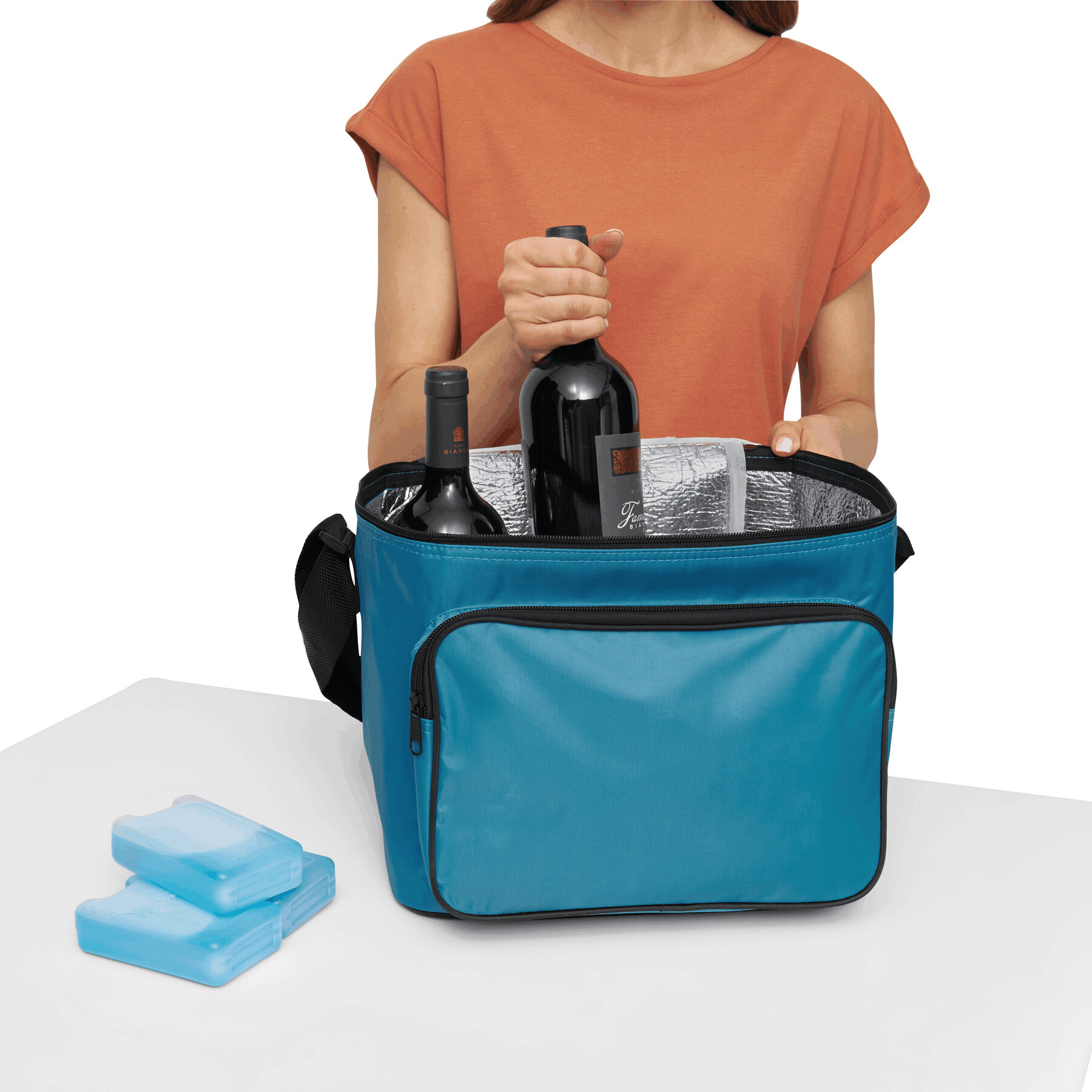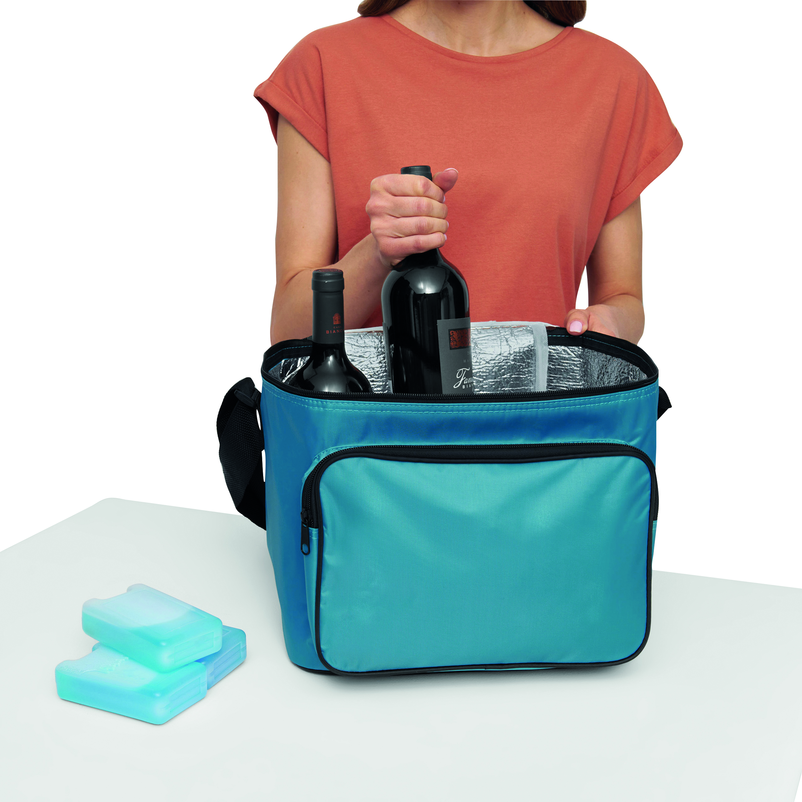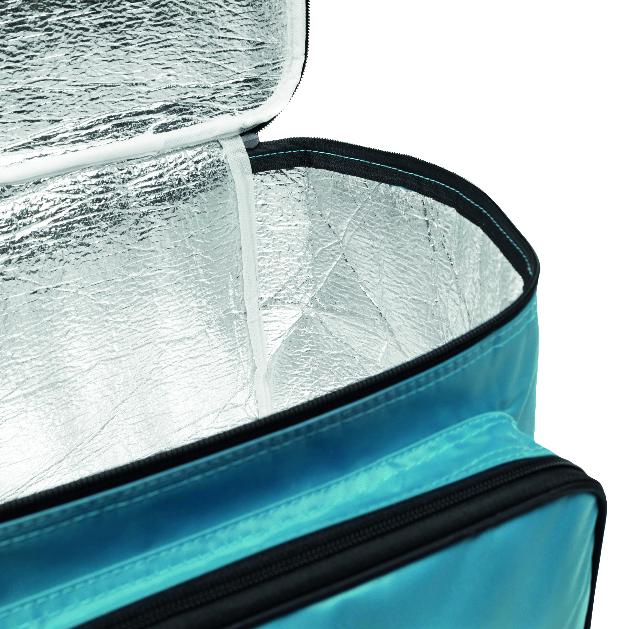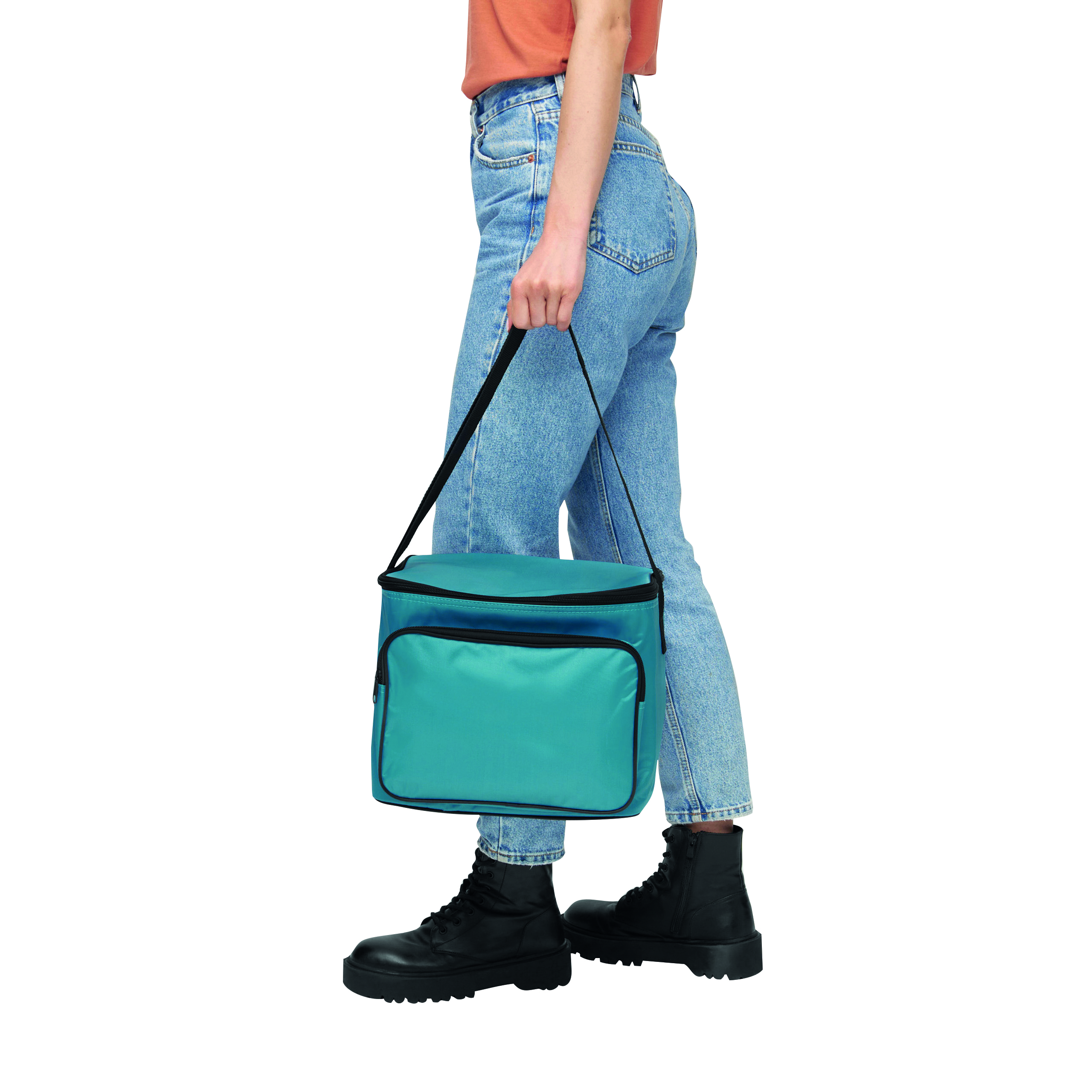 Torba izotermiczna ICE, kwadratowa, z główną komorą izolacyjną, zapinaną na zamek kieszenią z przodu, regulowanym paskiem na ramię.