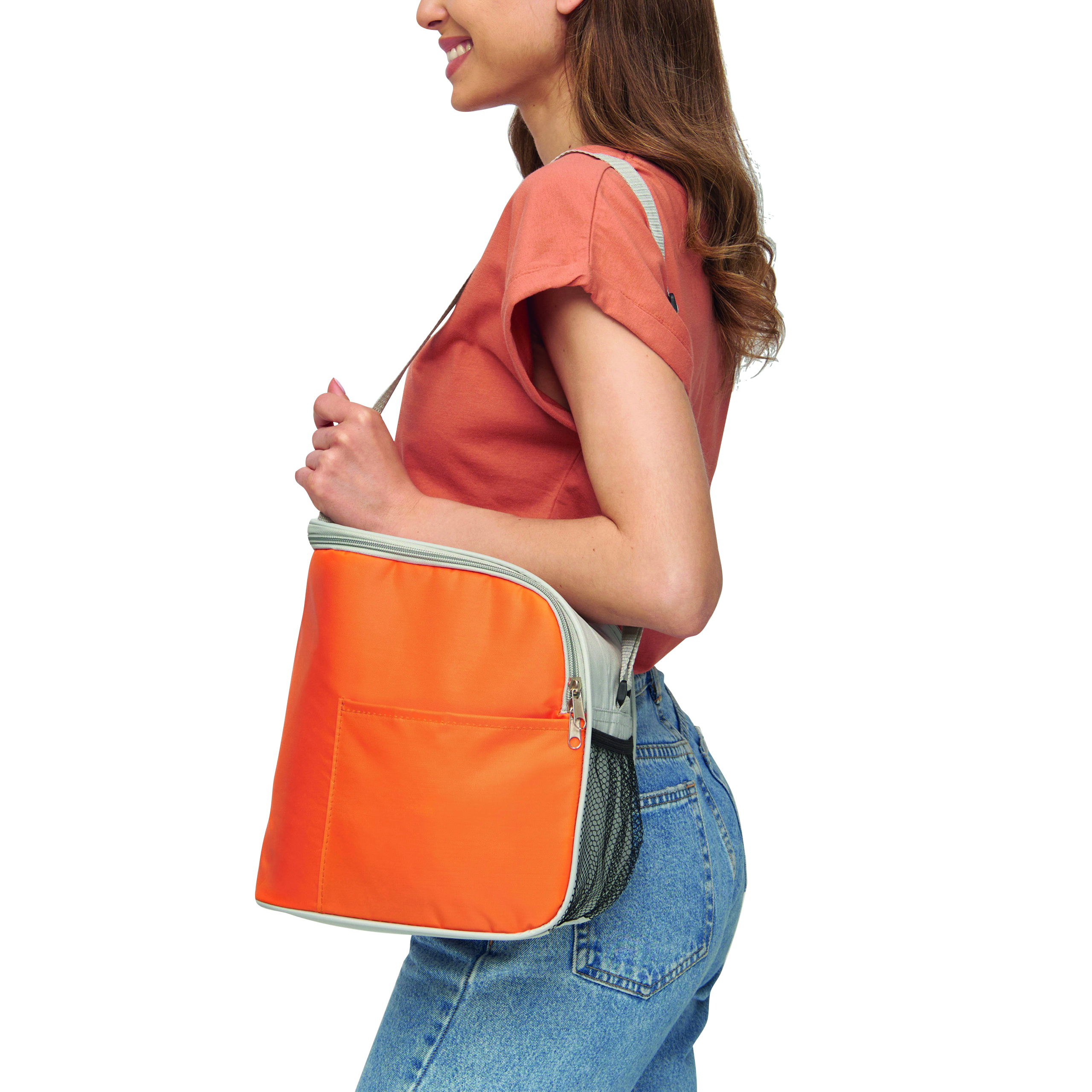Torba izotermiczna GLACIAL z izolowaną komorą główną na suwak, 1 wsuwaną kieszenią z przodu, 1 kieszenią z siatki z boku, regulowany pasek na ramię.