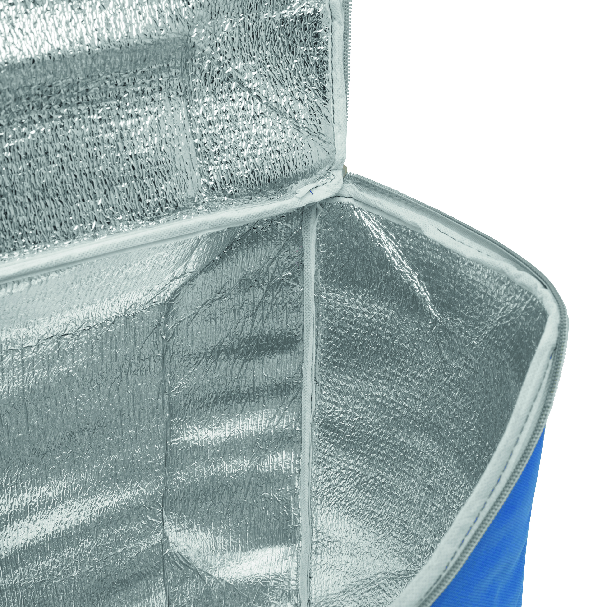 Torba izotermiczna FROSTY, 1 wsuwana kieszeń z przodu, izolowana komora główna zamykana na zamek, 2 siatkowe kieszonki po bokach, uchwyty do przenoszenia z paskiem wzmacniającym na rzep, regulowany, odpinany pasek na ramię – idealna na piknik, grill i podróże.
