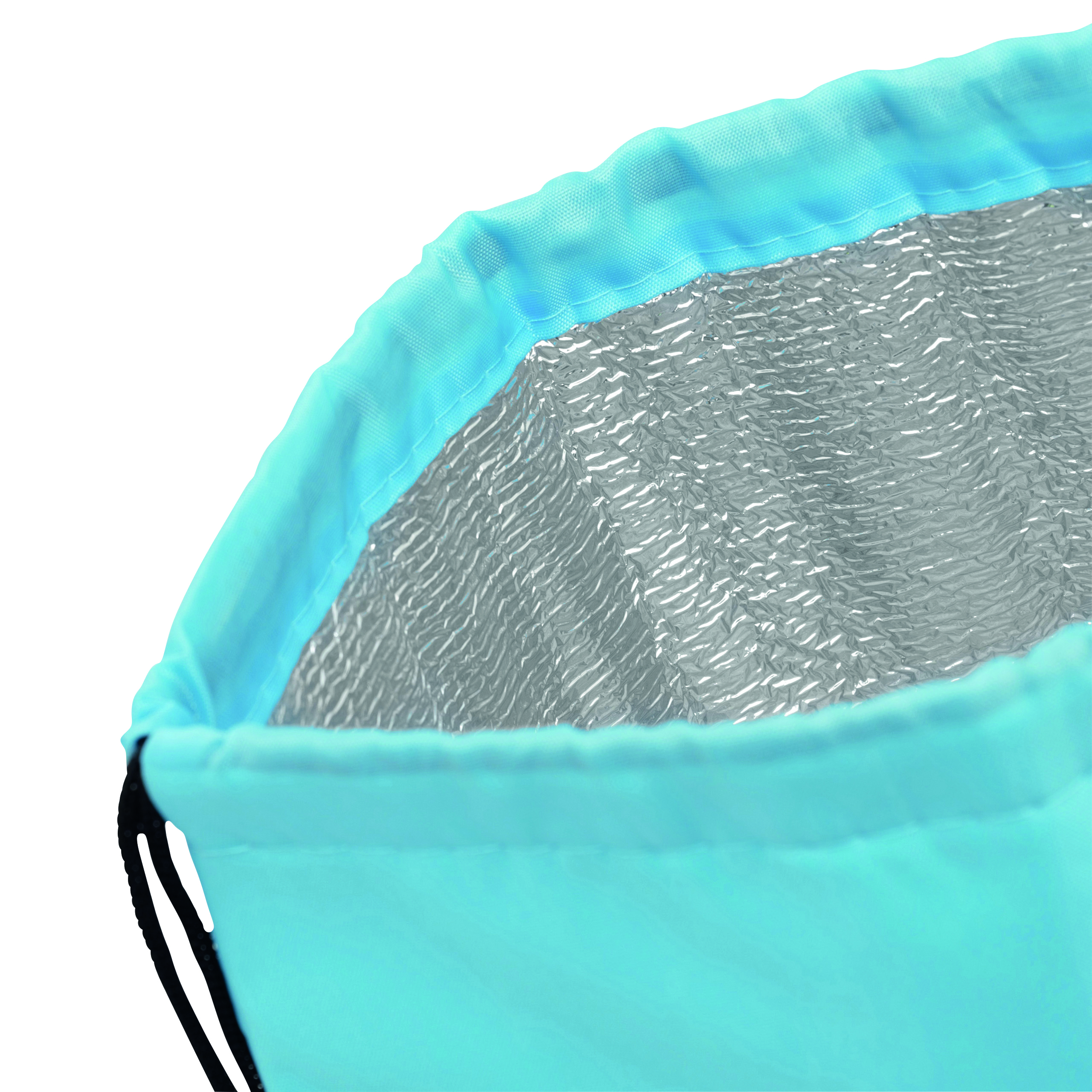 Plecak chłodzący ISO COOL w stylu torby gimnastycznej. Izolowana komora główna z zamkiem błyskawicznym, z 2 sznurkami do ściągania. Może być noszony na ramieniu lub na plecach.