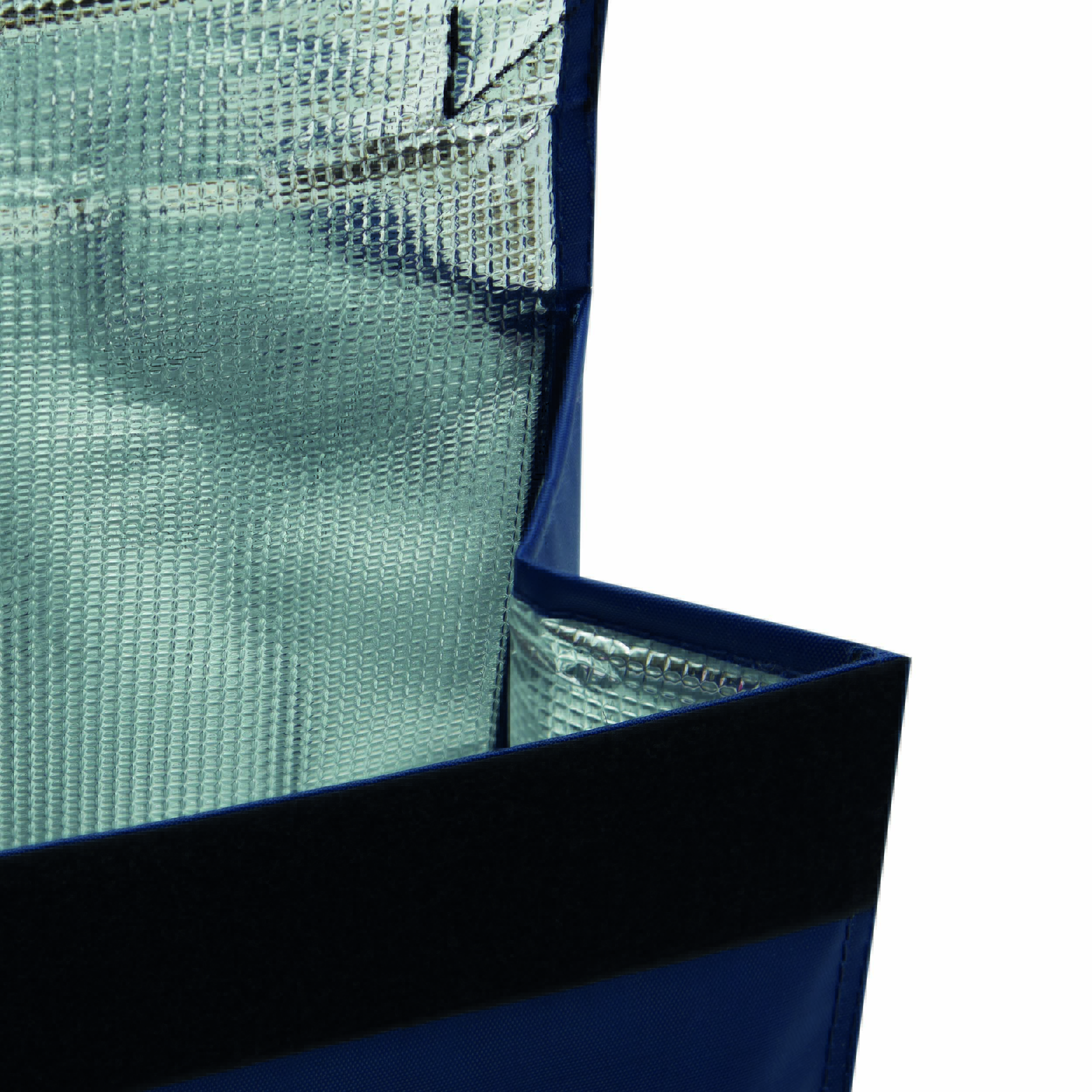 Torba termoizolacyjna KODIAK: z izolowaną kieszenią zapinaną na rzep i wzmocnioną rączką do przenoszenia.