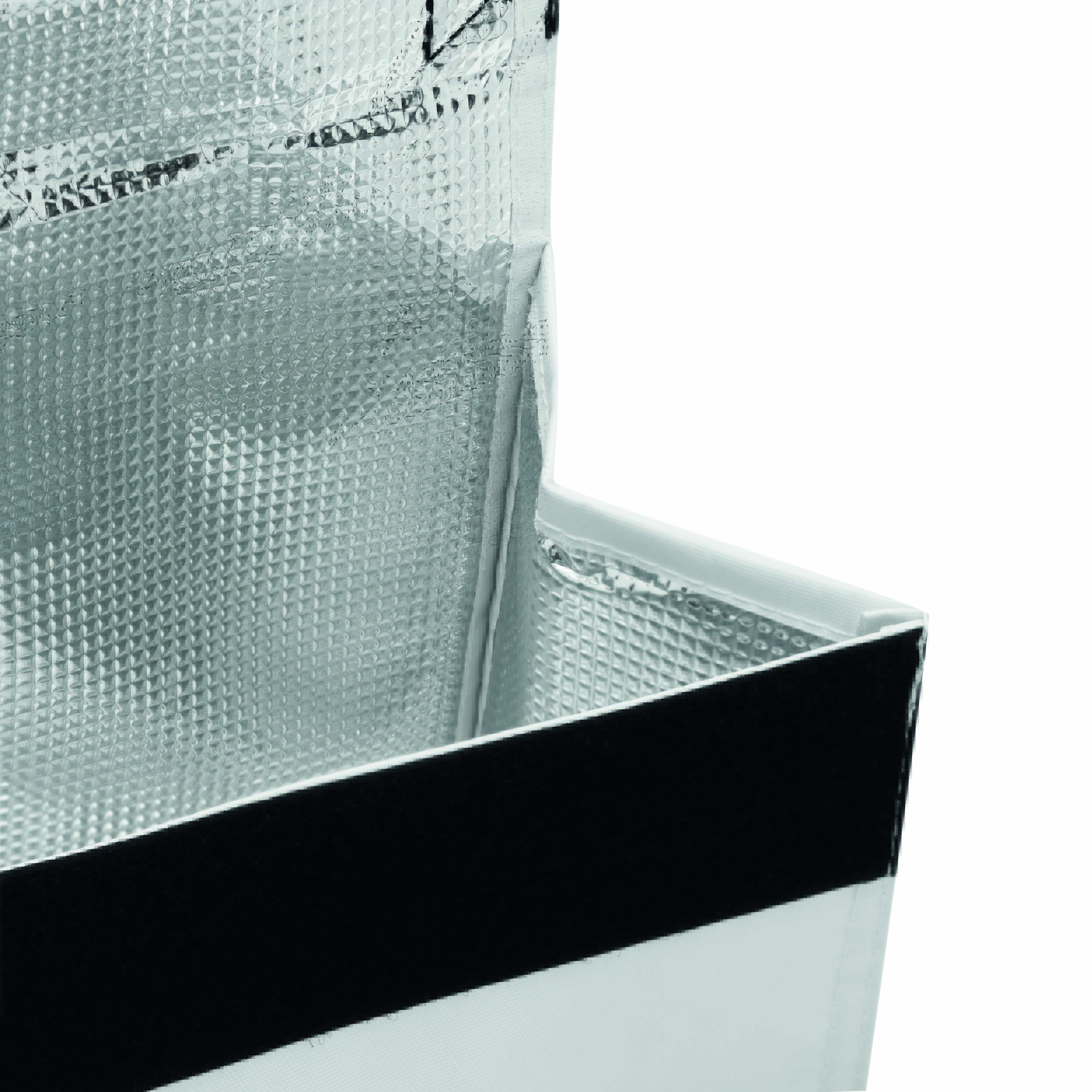 Torba termoizolacyjna KODIAK: z izolowaną kieszenią zapinaną na rzep i wzmocnioną rączką do przenoszenia.