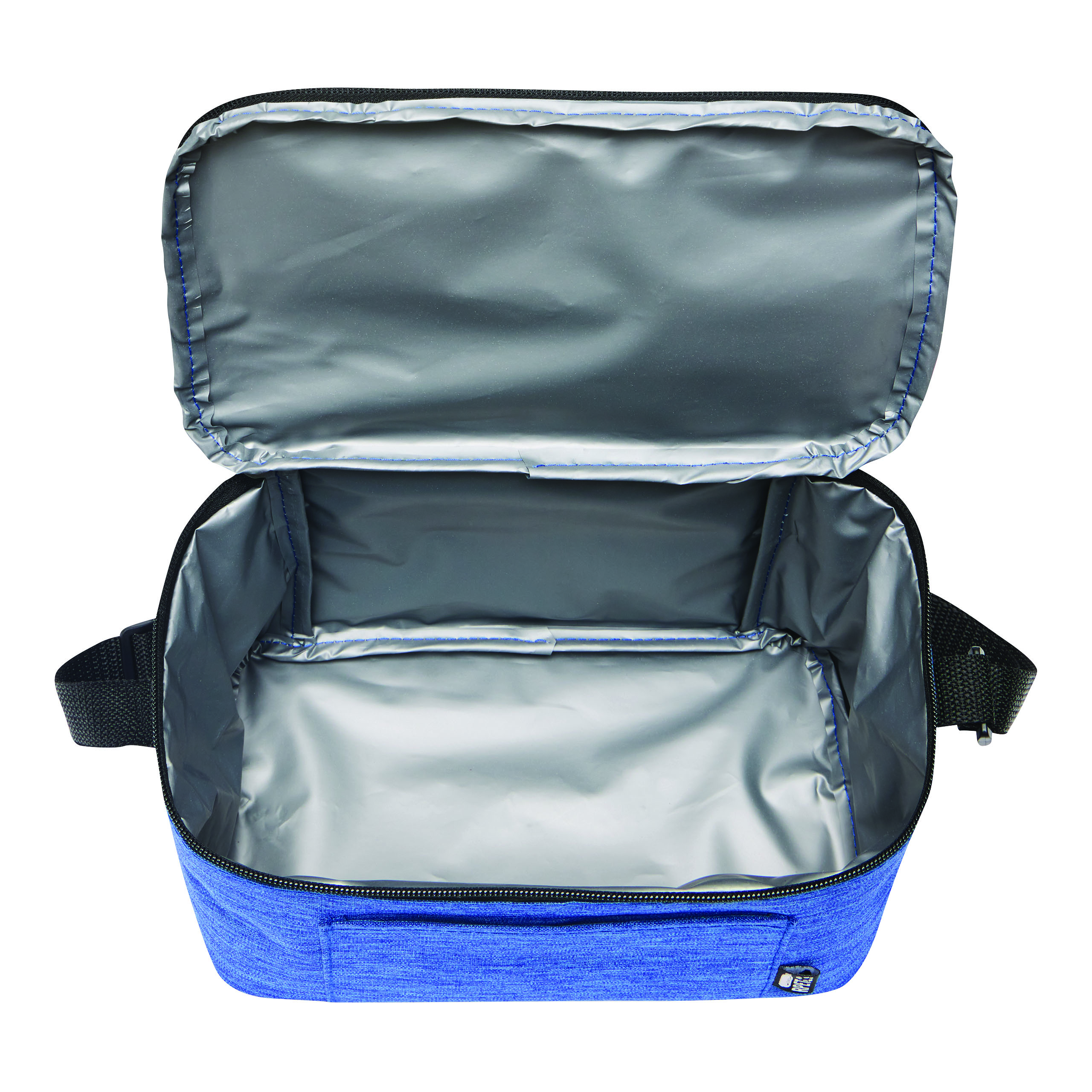 Torba termoizolacyjna KOBUK. Wykonana jest z poliestru pochodzącego z recyklingu (rPET). Ma dużą, zamykaną na zamek komorę termoizolacyjną wykonaną z poliuretanu (PEVA) i wsuwaną kieszeń z przodu oraz regulowany pasek na ramię.