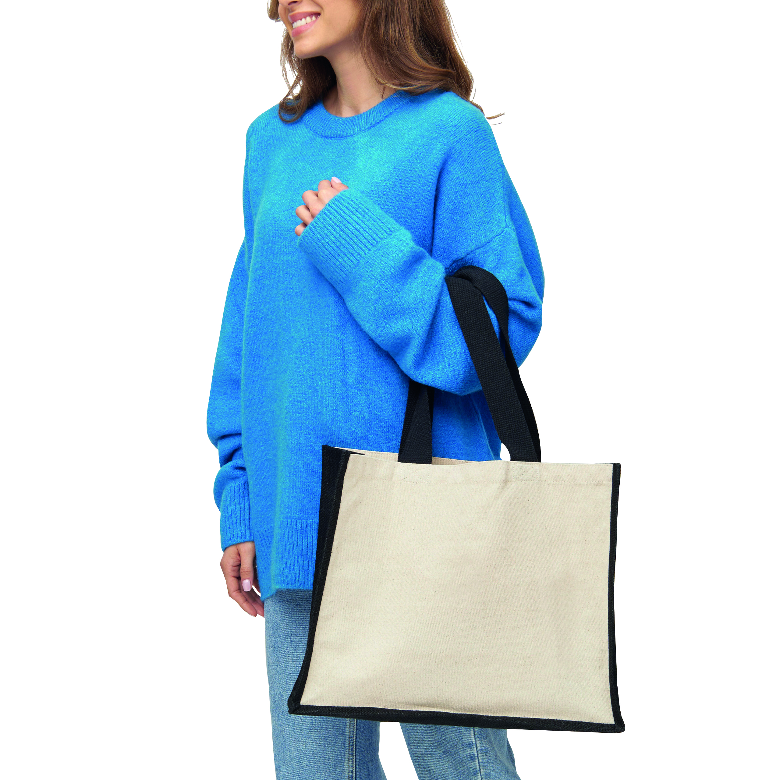 Torba na zakupy FUTURE wykonana z juty i płótna. Z długimi bawełnianymi uchwytami i kolorowym wykończeniem.