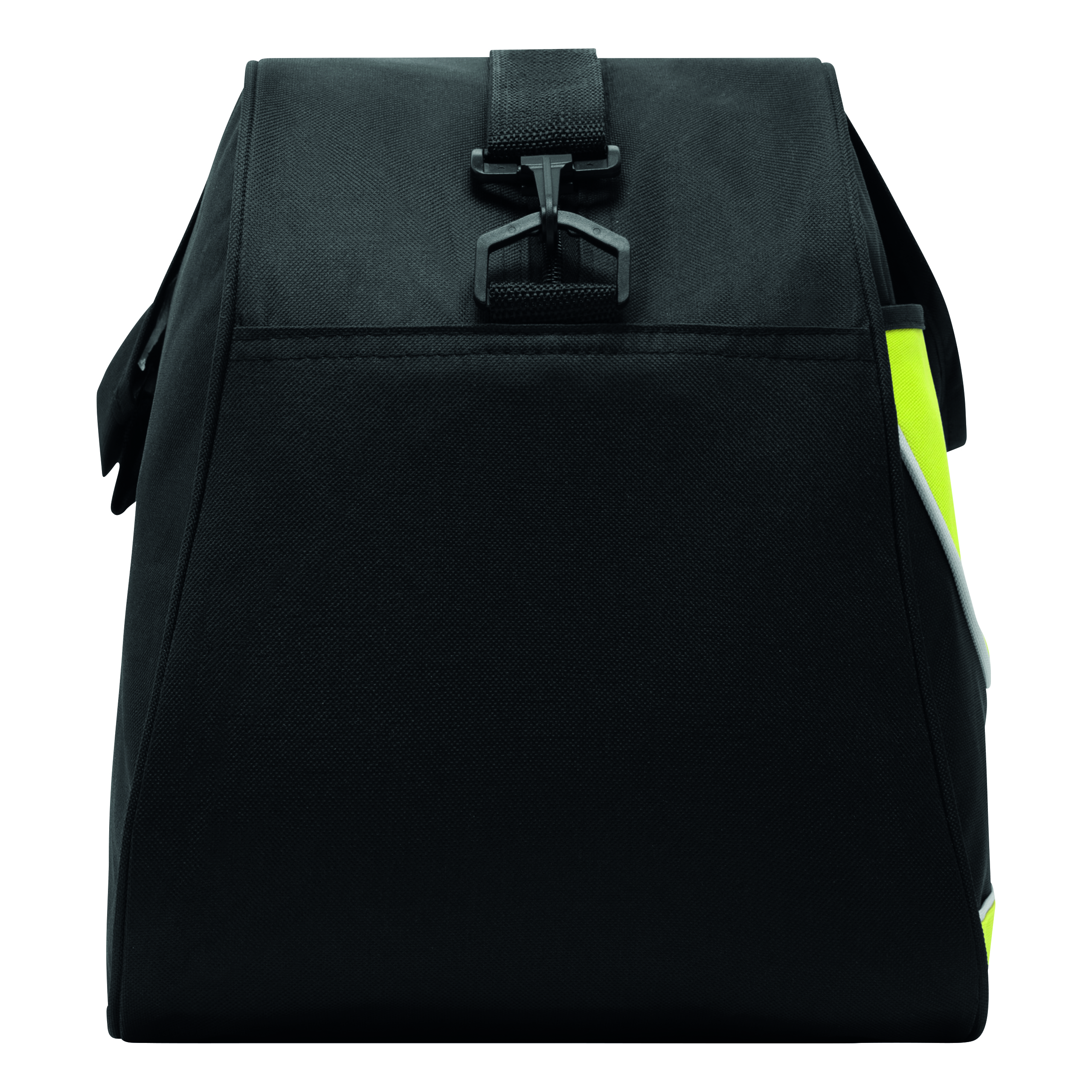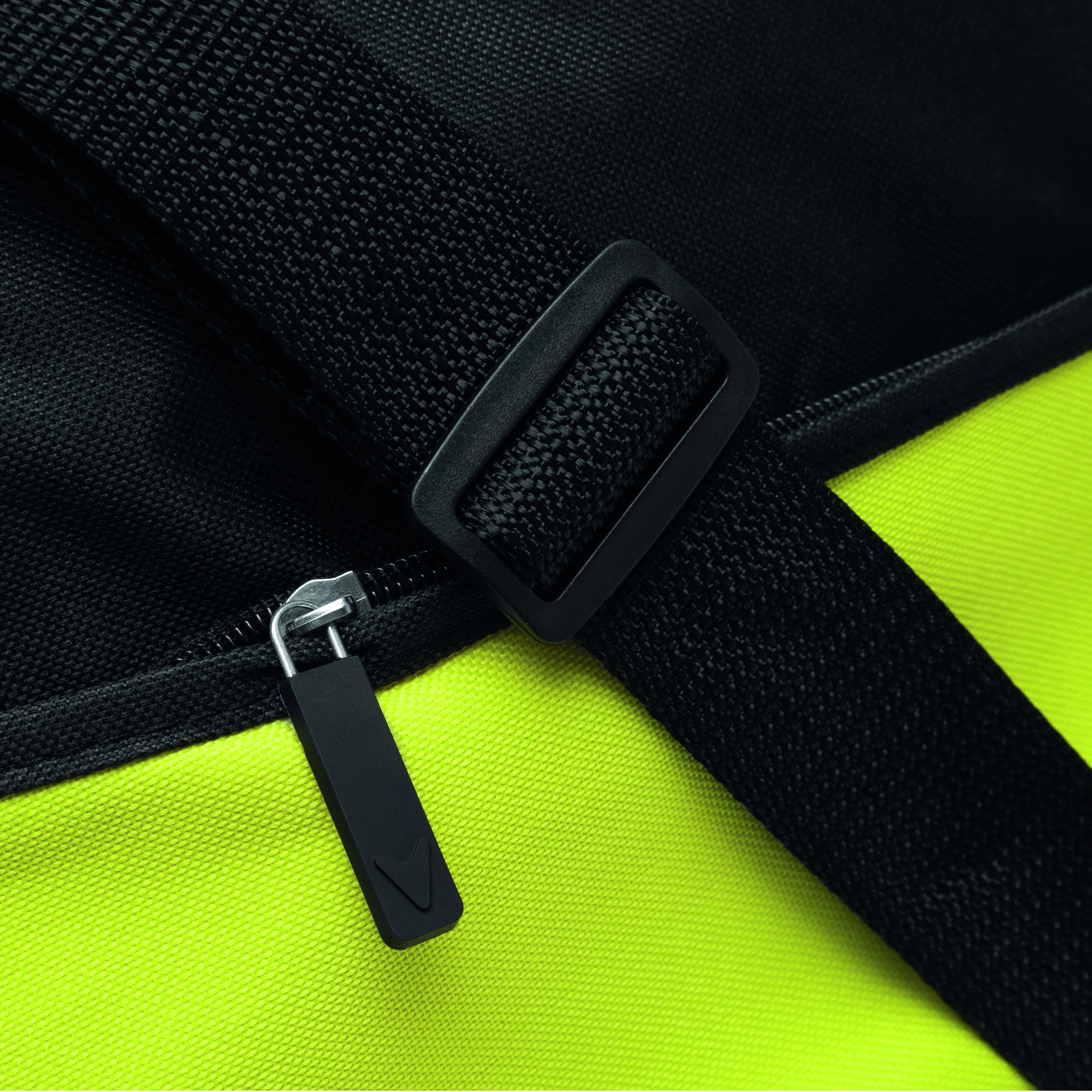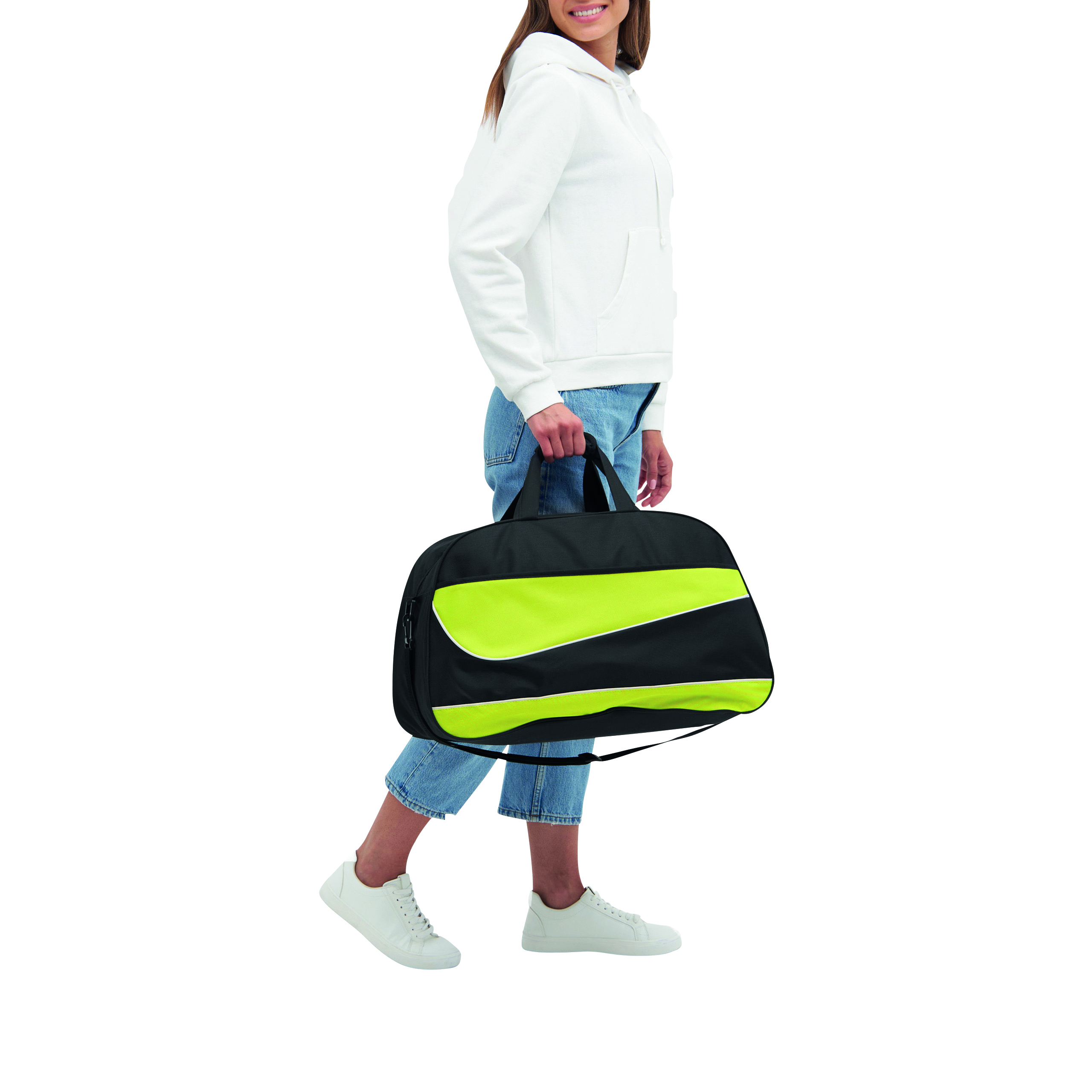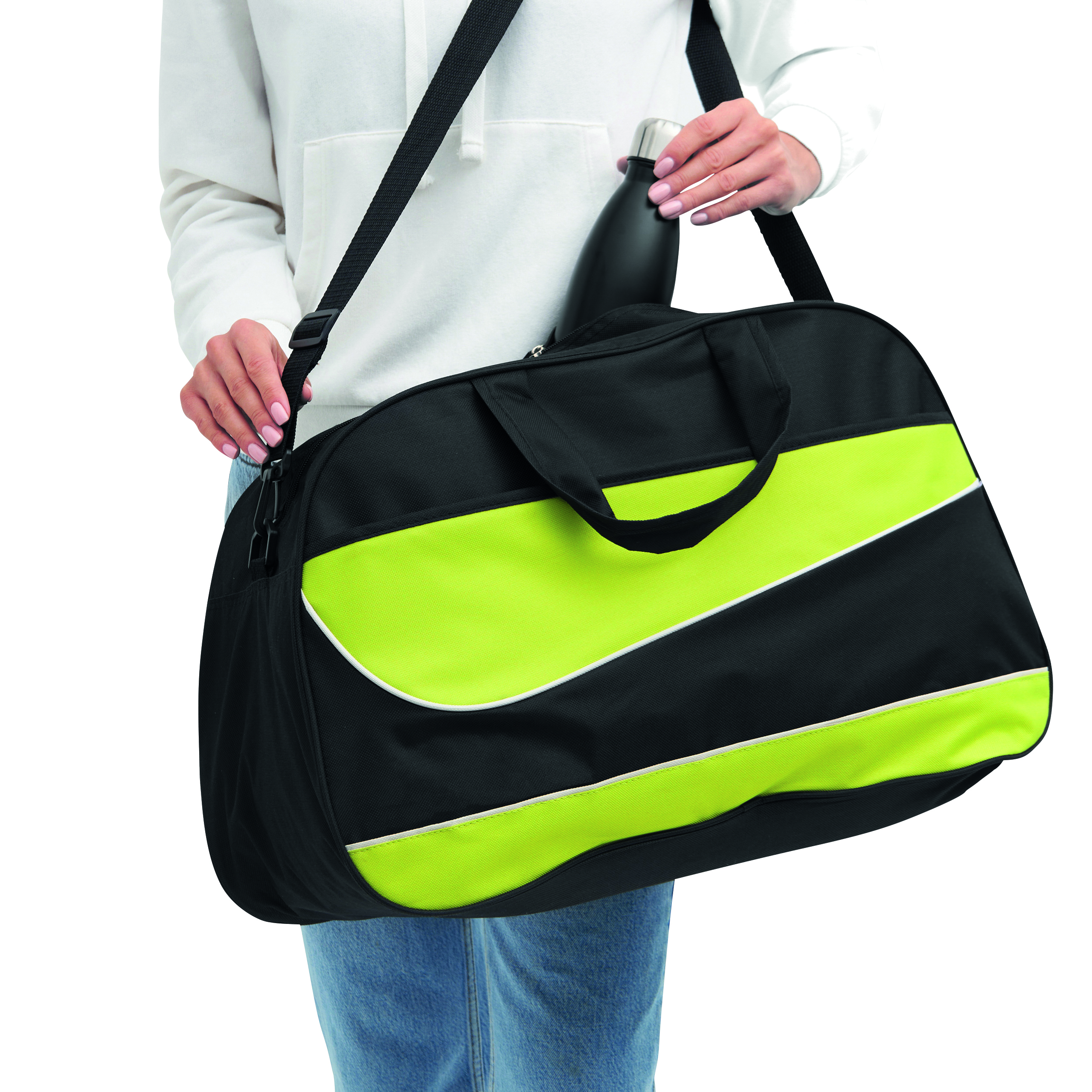 Torba sportowa PEP z boczną i główną kieszenią zapinanymi na zamek, mocnymi uchwytami do noszenia oraz regulowanym i odpinanym paskiem na ramię.