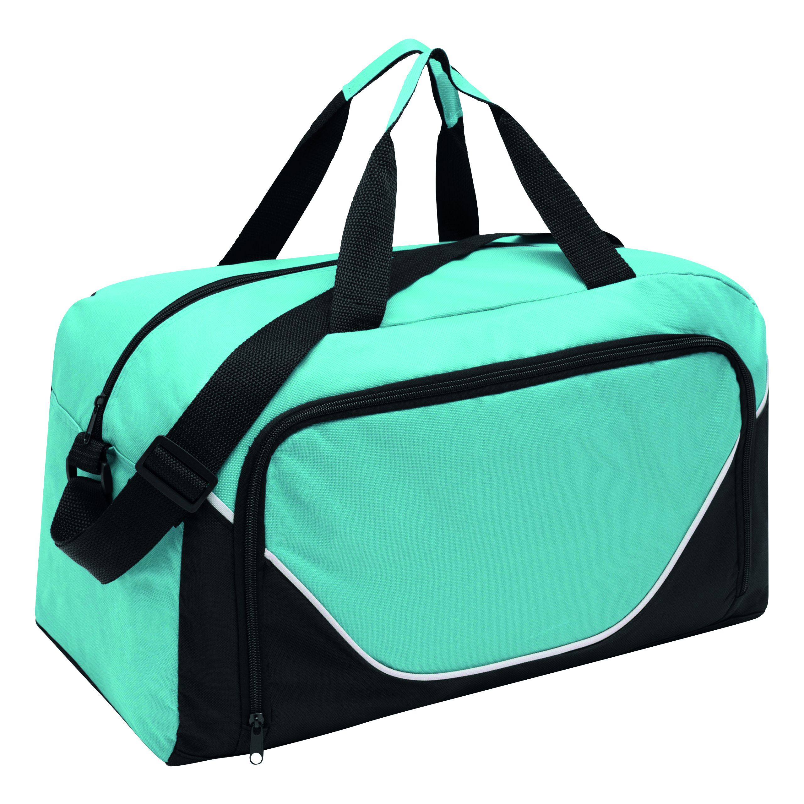Sportowa torba JORDAN z główną komorą na suwak, z przodu kieszeń na zamek, wzmocnione uchwyty do przenoszenia, regulowany pasek na ramię oraz wzmocnione dno.