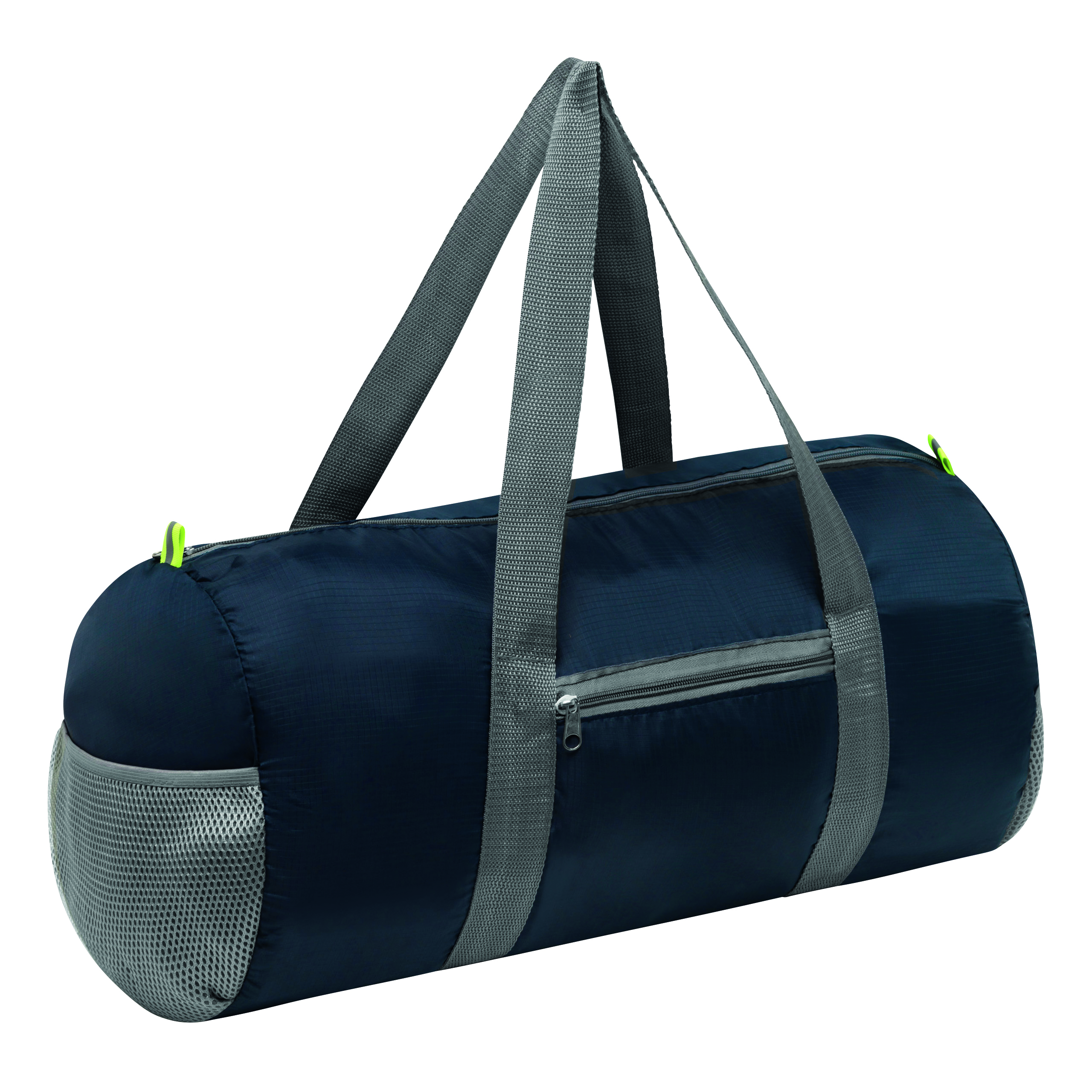 Torba sportowa VOLUNTEER GYM składana dzięki przedniej kieszeni na zamek, komora główna na zamek, 2 odblaskowe metki, 2 siatkowe kieszonki po bokach, 2 długie uchwyty do przenoszenia – po złożeniu do formatu małej torebki można mieć ją zawsze przy sobie.