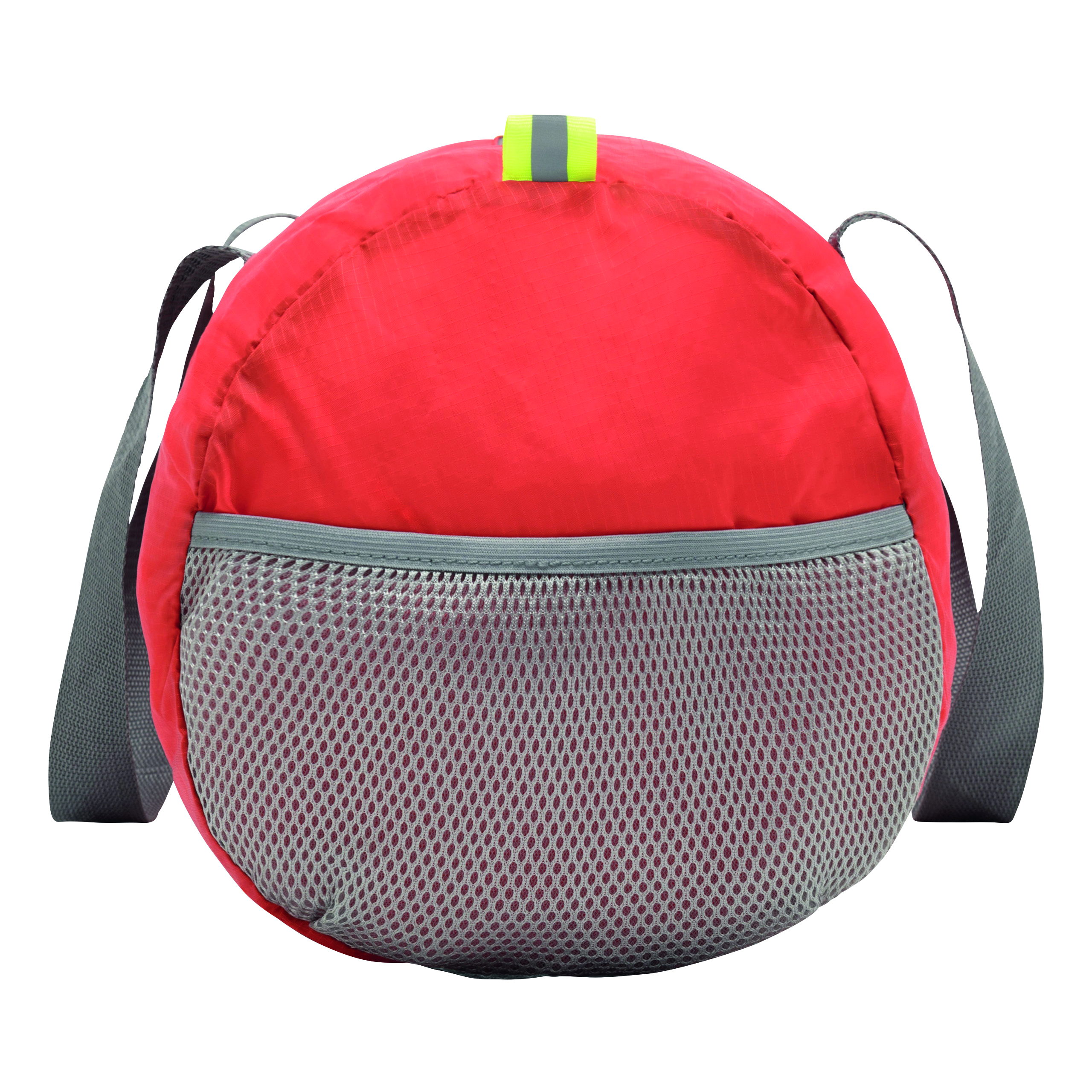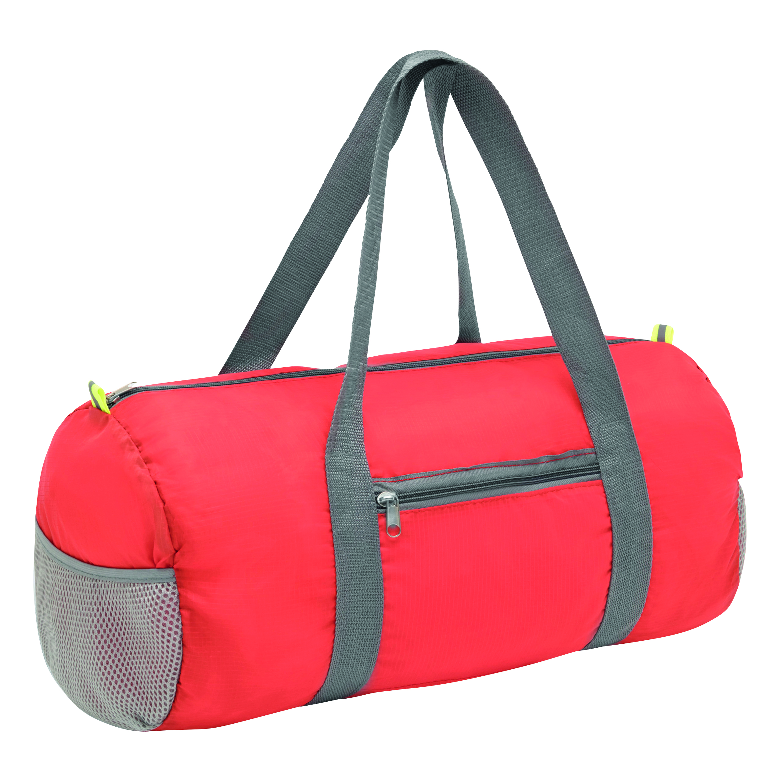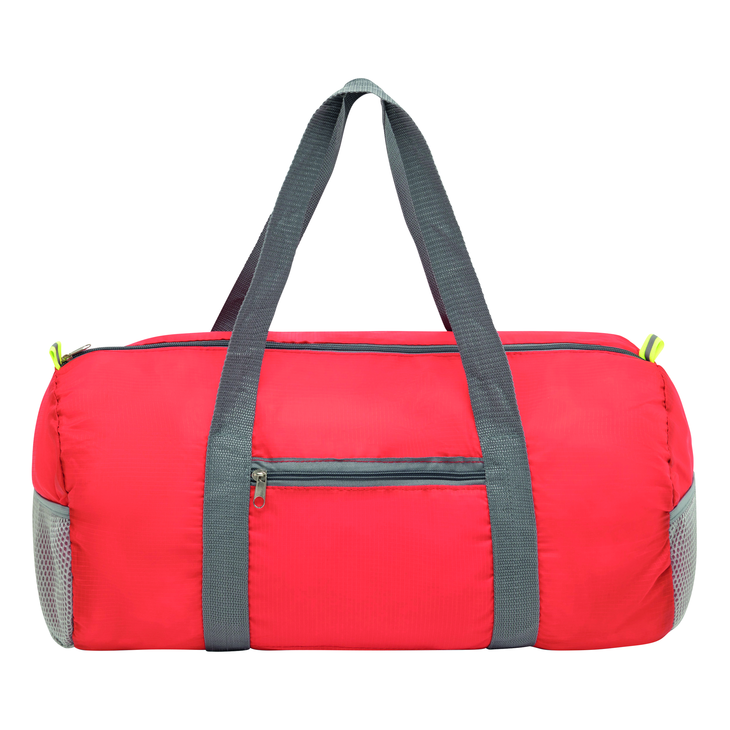 Torba sportowa VOLUNTEER GYM składana dzięki przedniej kieszeni na zamek, komora główna na zamek, 2 odblaskowe metki, 2 siatkowe kieszonki po bokach, 2 długie uchwyty do przenoszenia – po złożeniu do formatu małej torebki można mieć ją zawsze przy sobie.