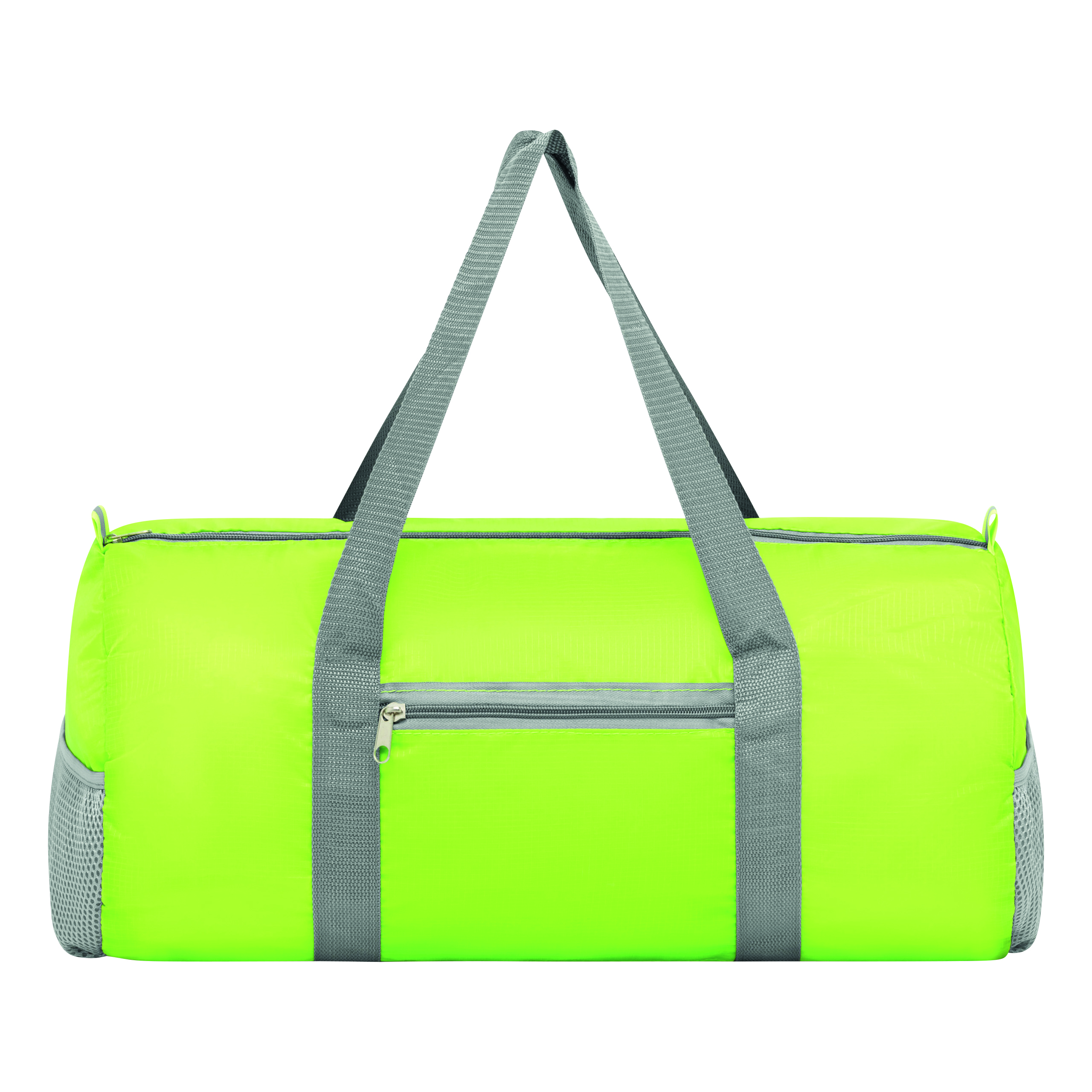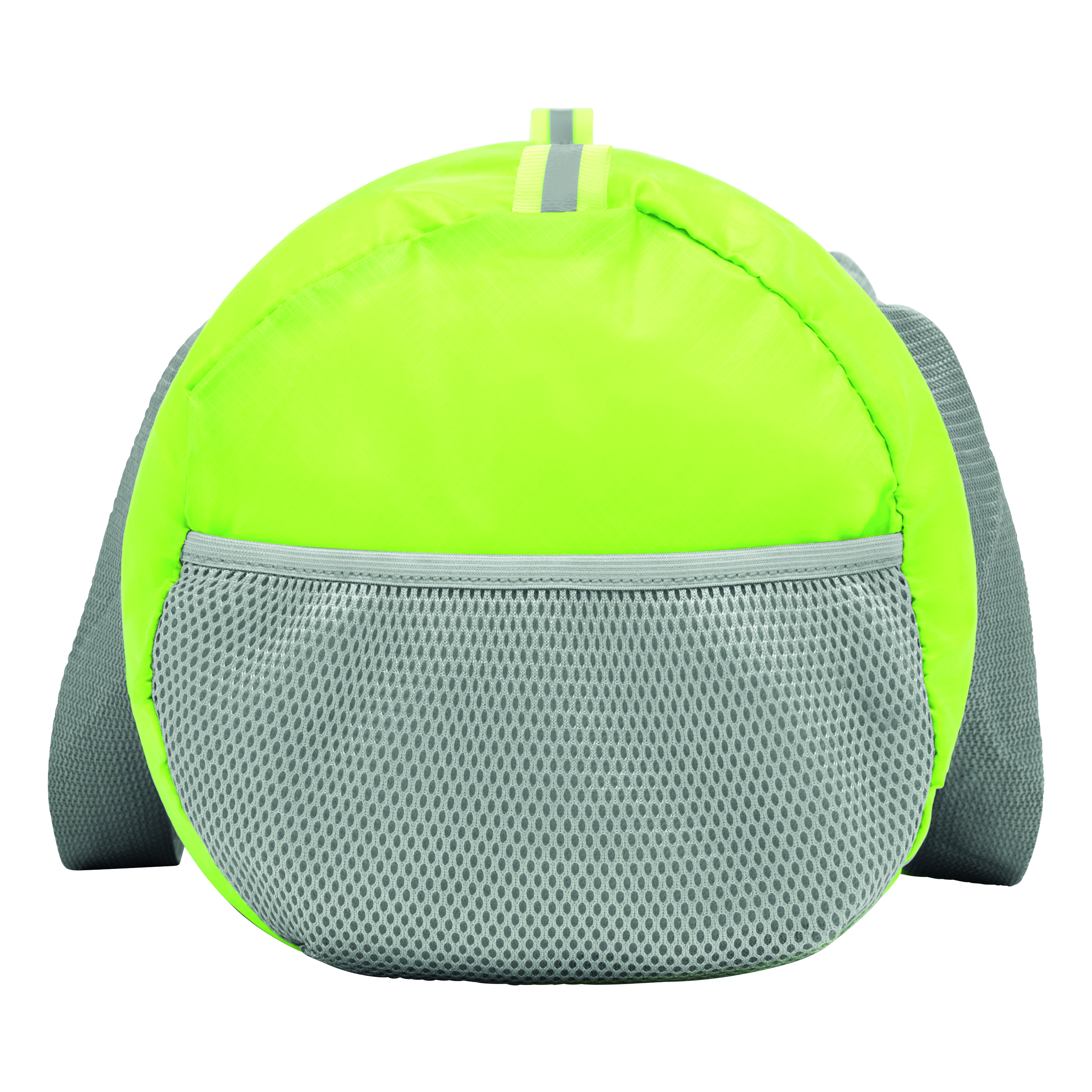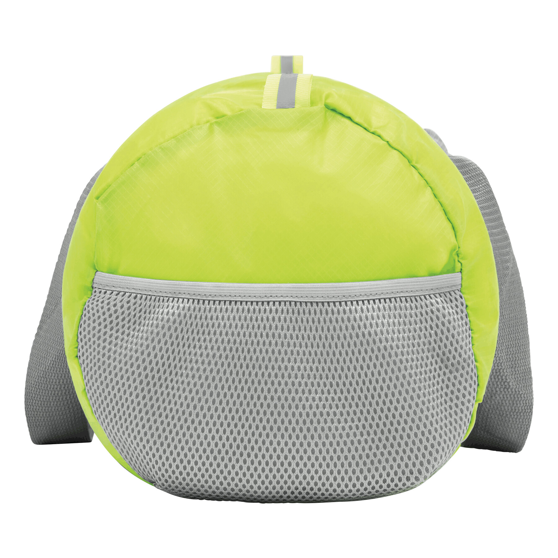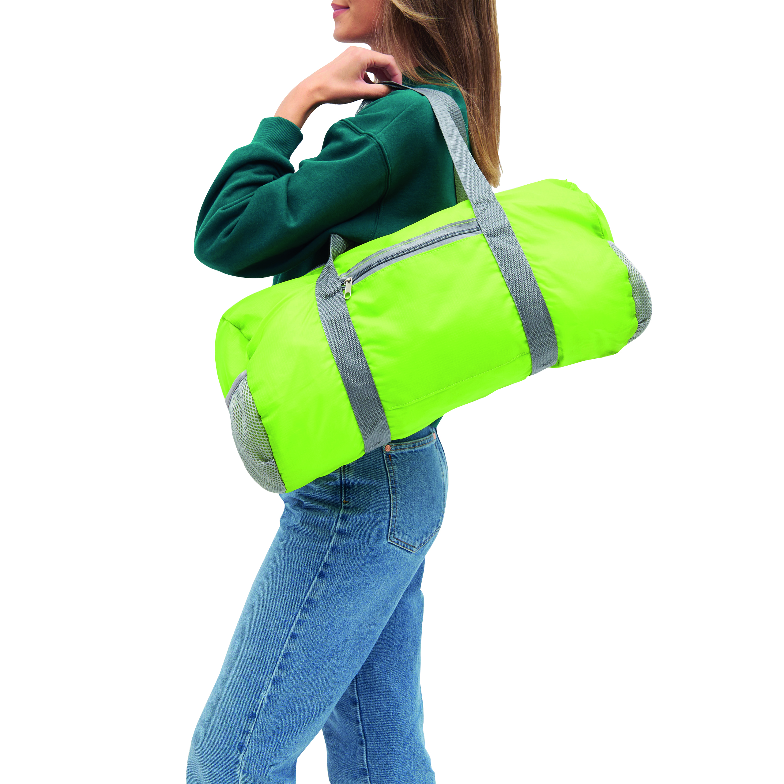 Torba sportowa VOLUNTEER GYM składana dzięki przedniej kieszeni na zamek, komora główna na zamek, 2 odblaskowe metki, 2 siatkowe kieszonki po bokach, 2 długie uchwyty do przenoszenia – po złożeniu do formatu małej torebki można mieć ją zawsze przy sobie.