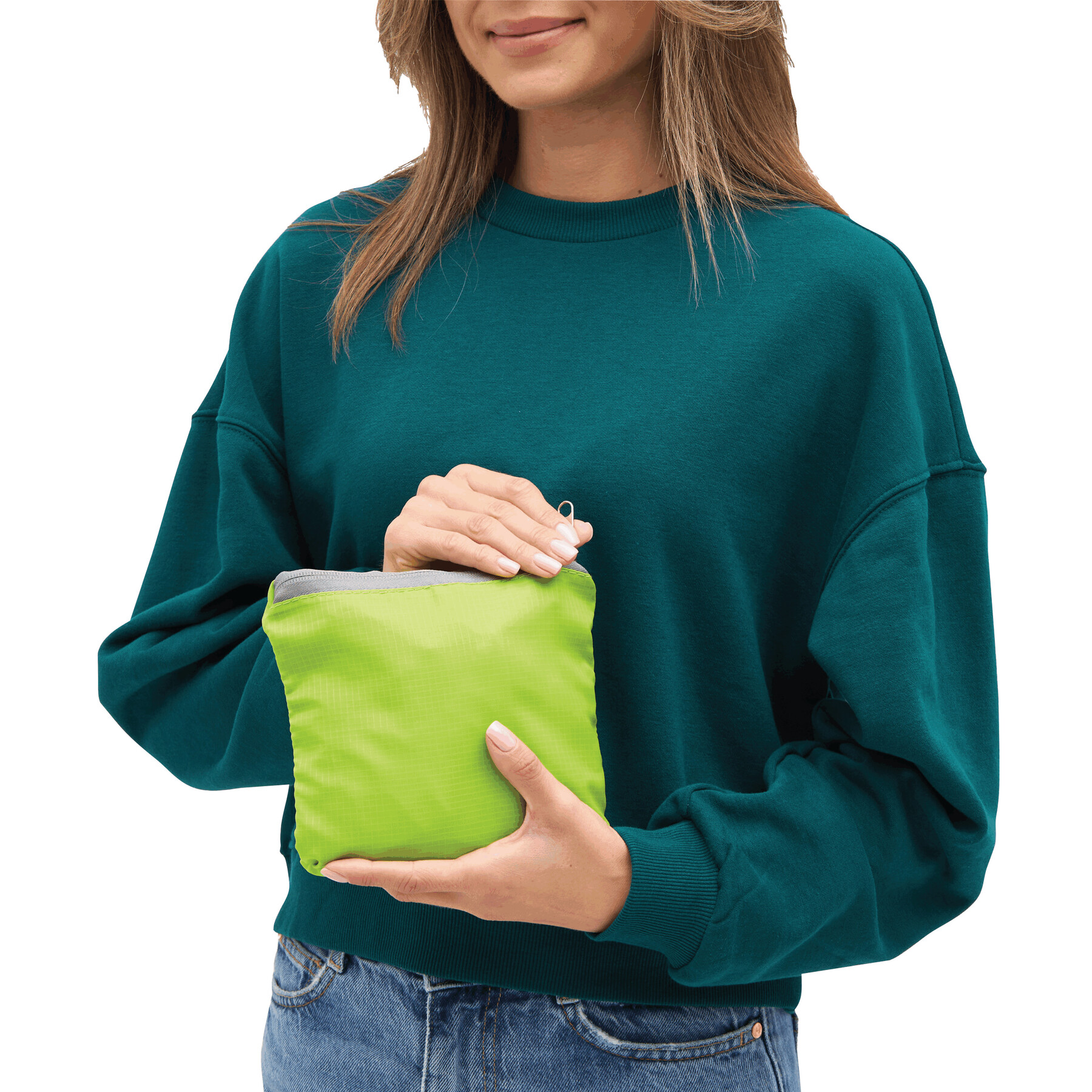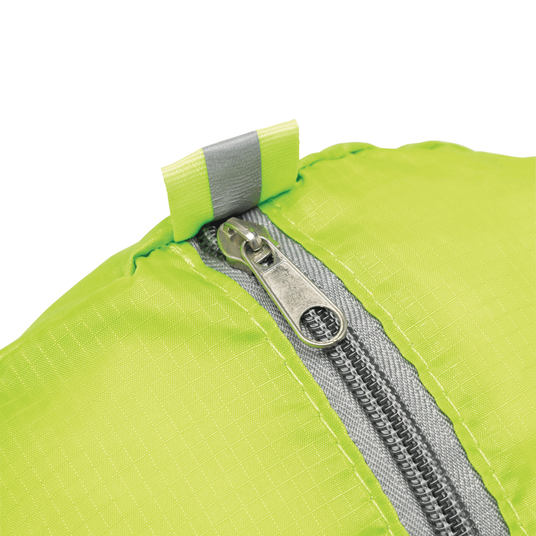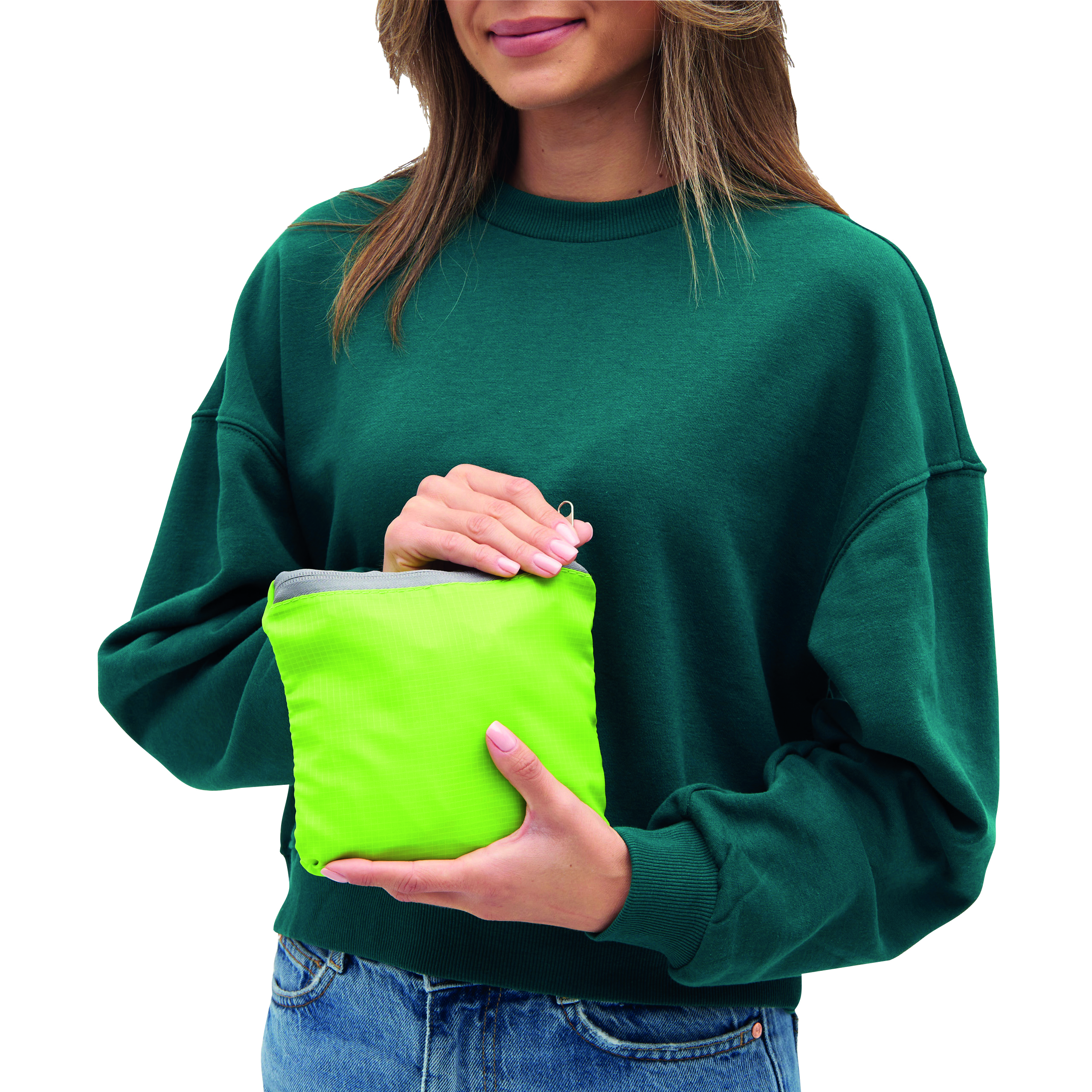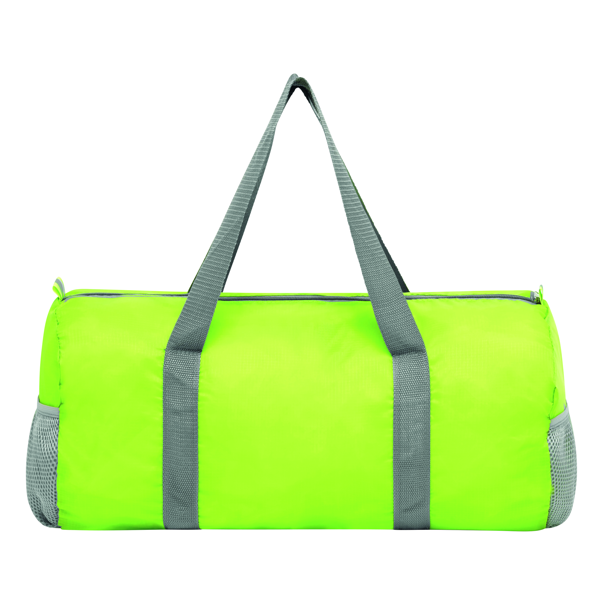 Torba sportowa VOLUNTEER GYM składana dzięki przedniej kieszeni na zamek, komora główna na zamek, 2 odblaskowe metki, 2 siatkowe kieszonki po bokach, 2 długie uchwyty do przenoszenia – po złożeniu do formatu małej torebki można mieć ją zawsze przy sobie.