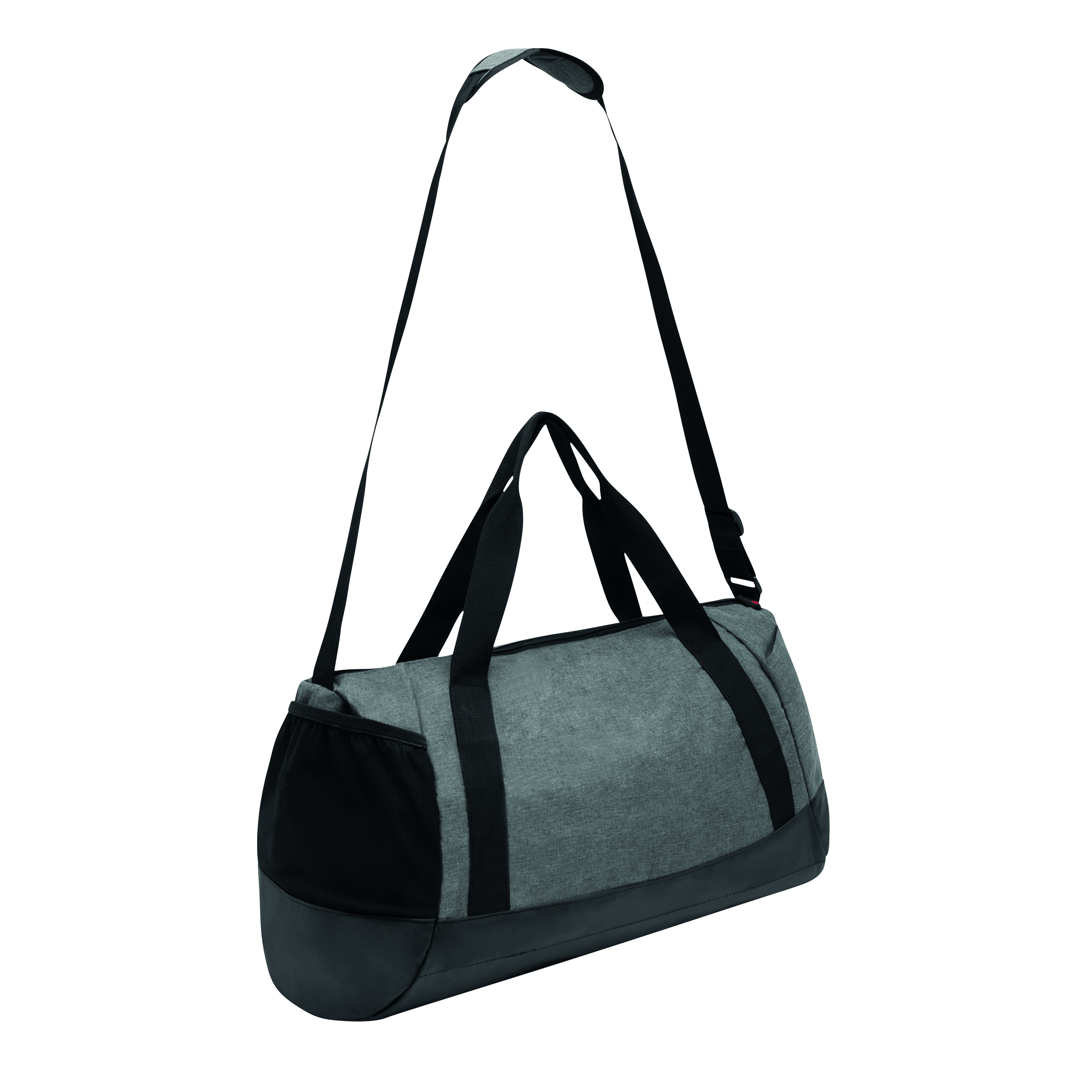 Torba sportowa SPLIT GYM z przestronną komorą główną i wewnętrzną kieszenią z zamkiem błyskawicznym. Przednia kieszeń na zamek błyskawiczny, kieszeń z siatki po jednej stronie, kieszeń wsuwana po drugiej stronie, regulowany pasek na ramię z poduszką.
