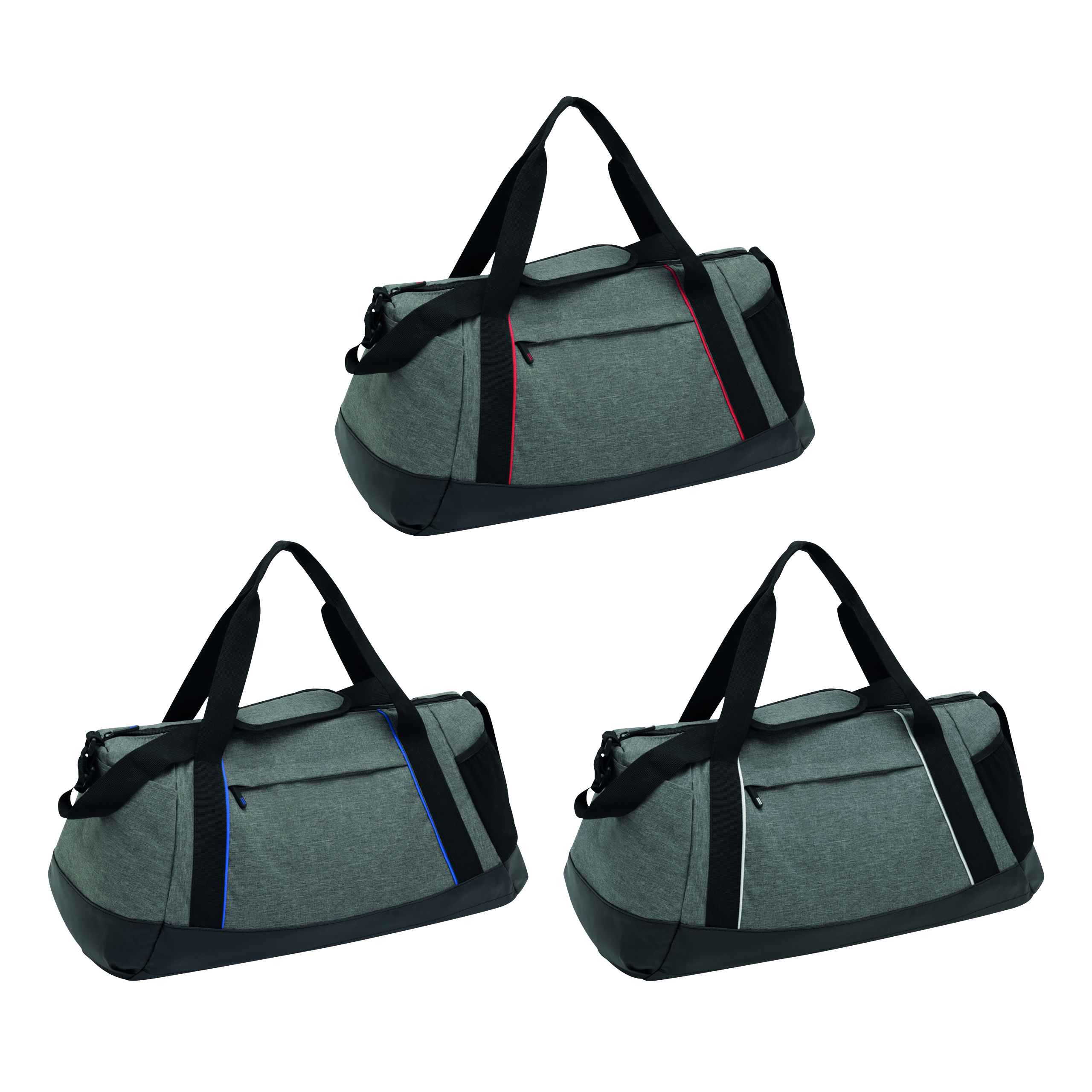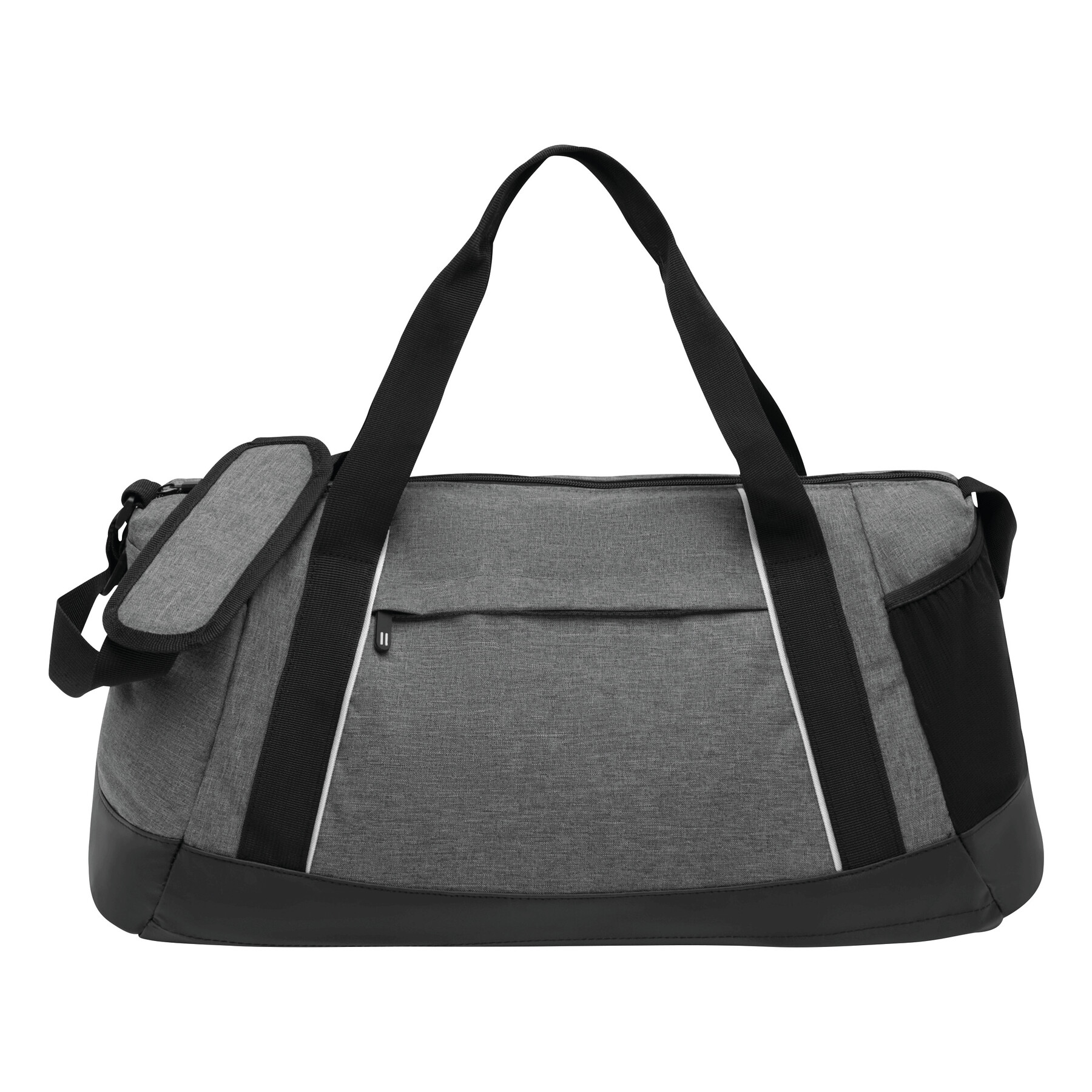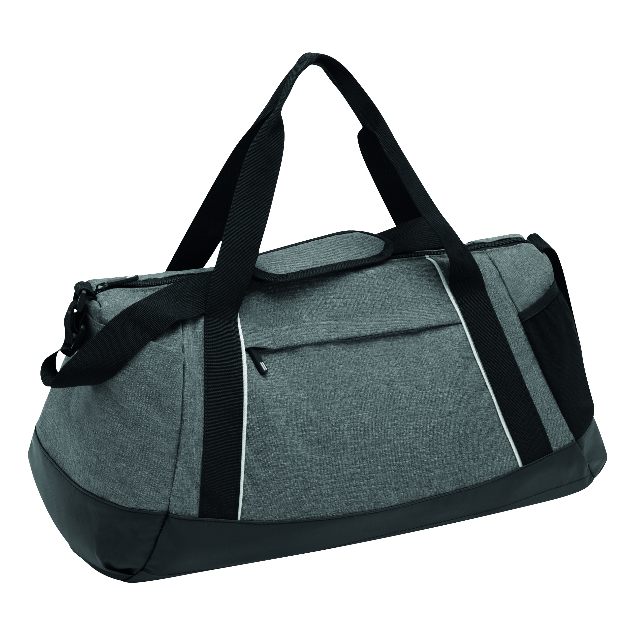 Torba sportowa SPLIT GYM z przestronną komorą główną i wewnętrzną kieszenią z zamkiem błyskawicznym. Przednia kieszeń na zamek błyskawiczny, kieszeń z siatki po jednej stronie, kieszeń wsuwana po drugiej stronie, regulowany pasek na ramię z poduszką.