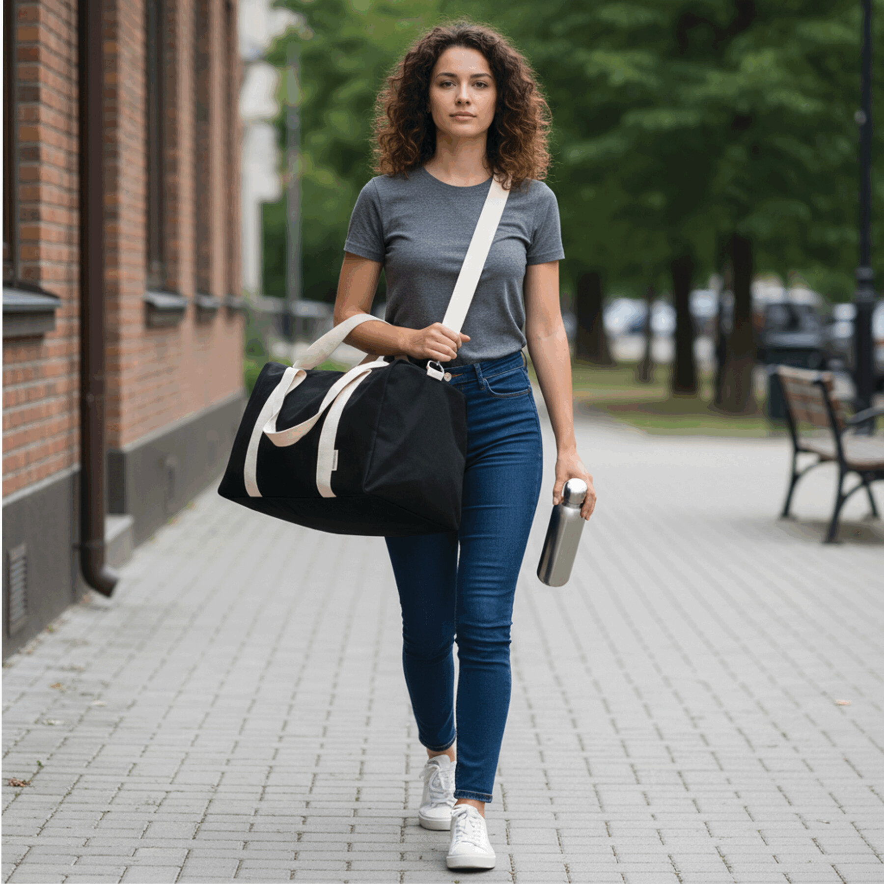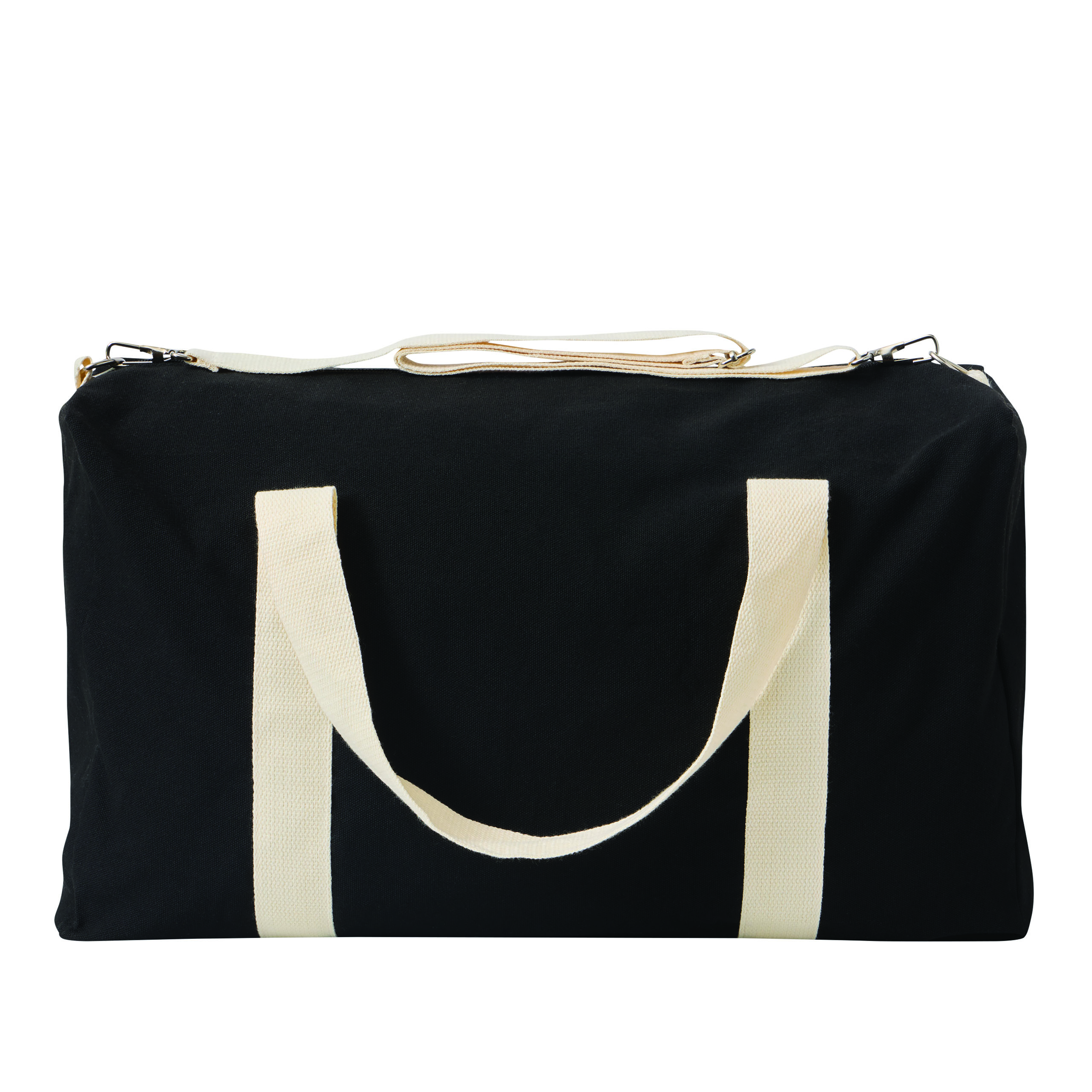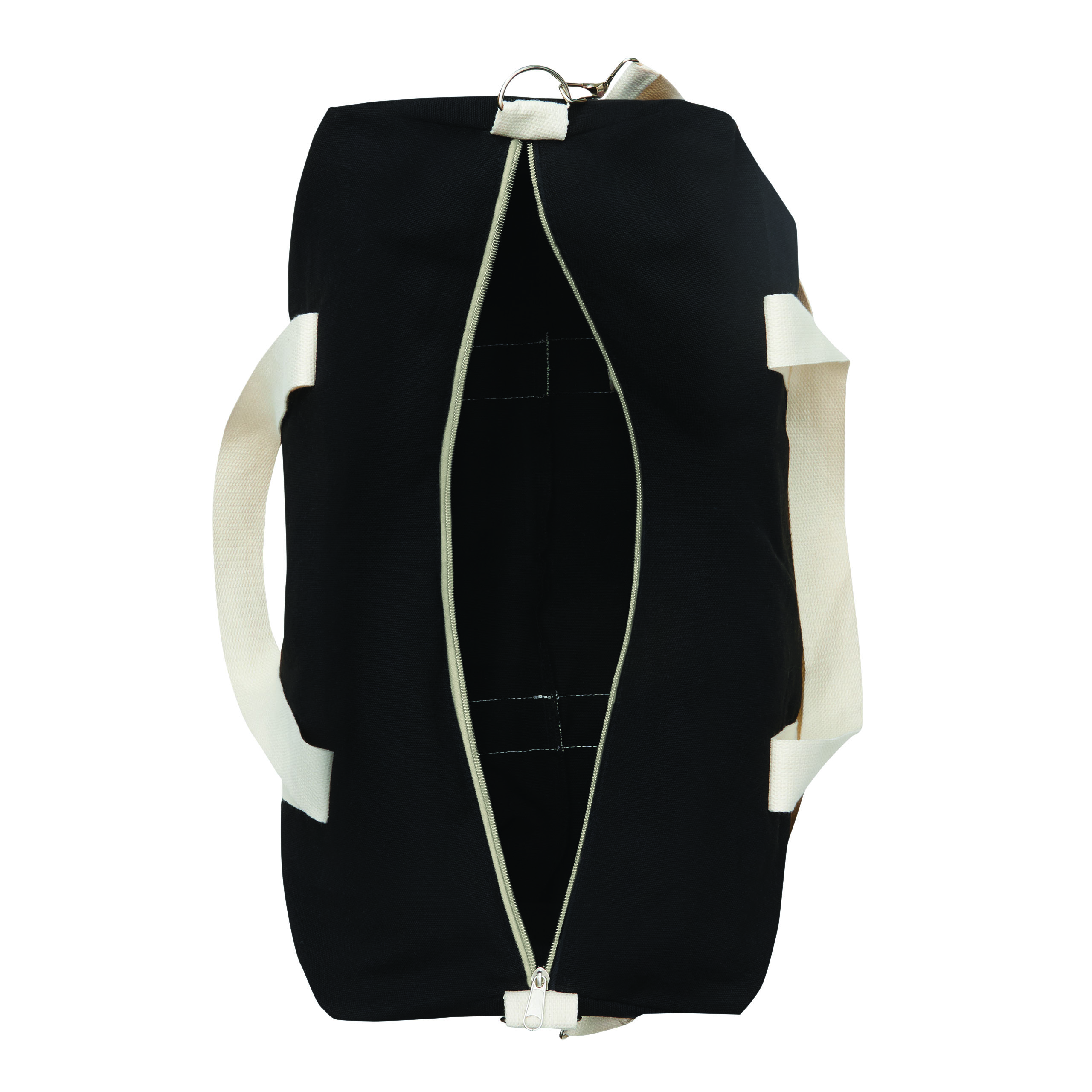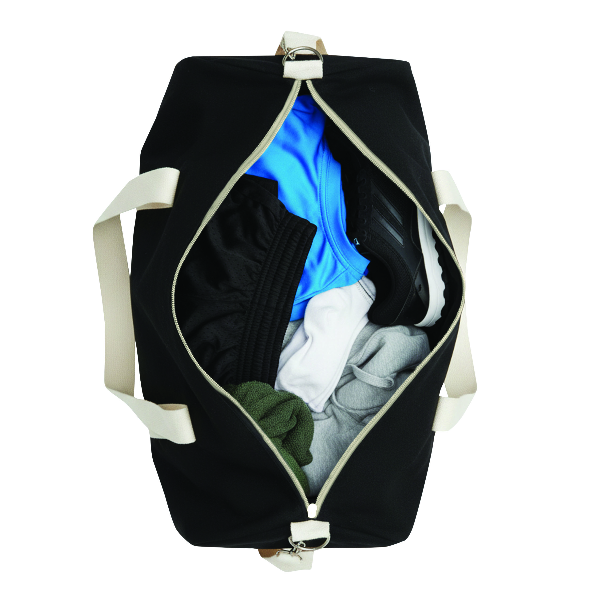 Torba sportowa BANKURA. Wykonana jest z bawełny pochodzącej z recyklingu i poliestru. Ma przestronną komorę główną zapinaną na zamek błyskawiczny, 2 uchwyty do przenoszenia oraz regulowany i odpinany pasek na ramię.