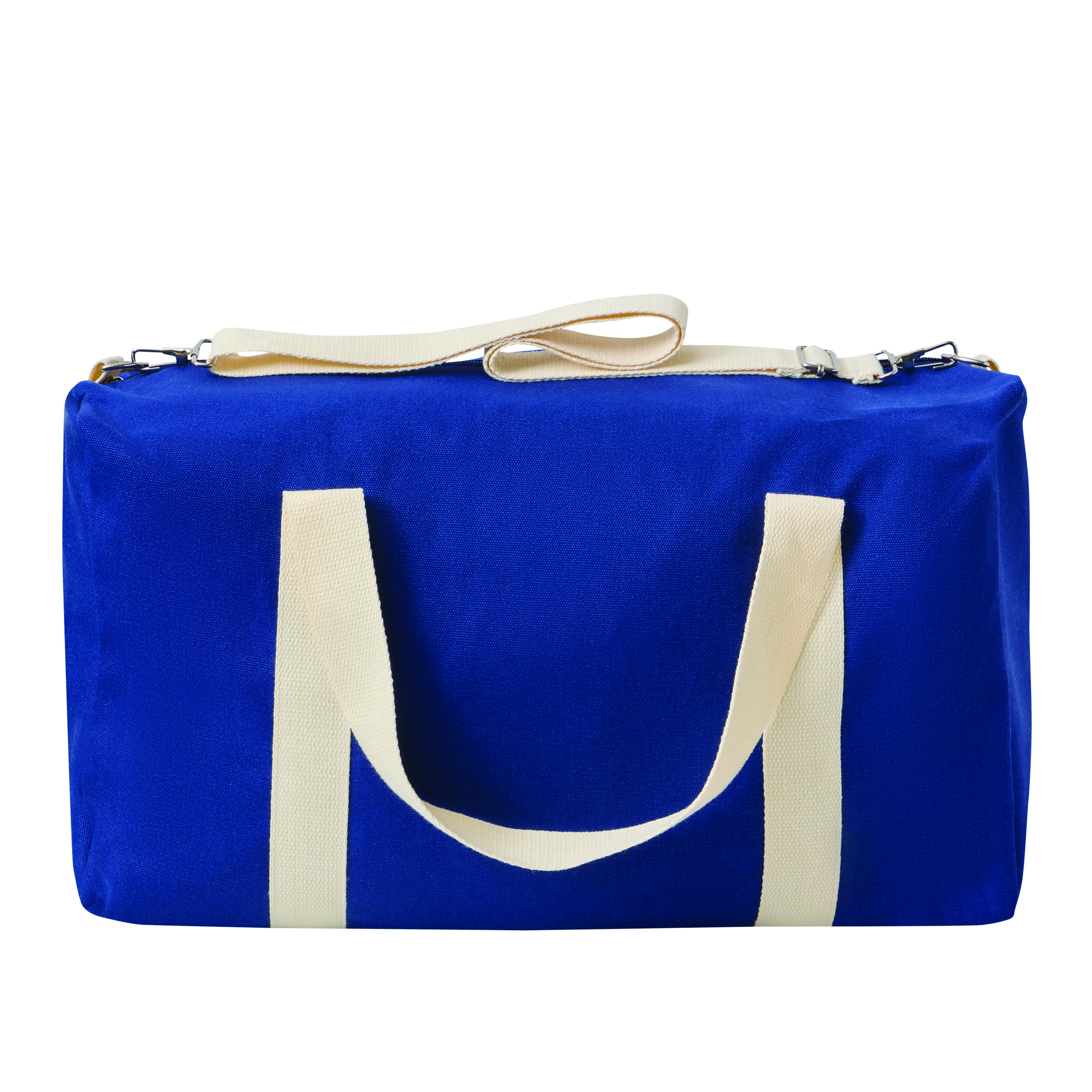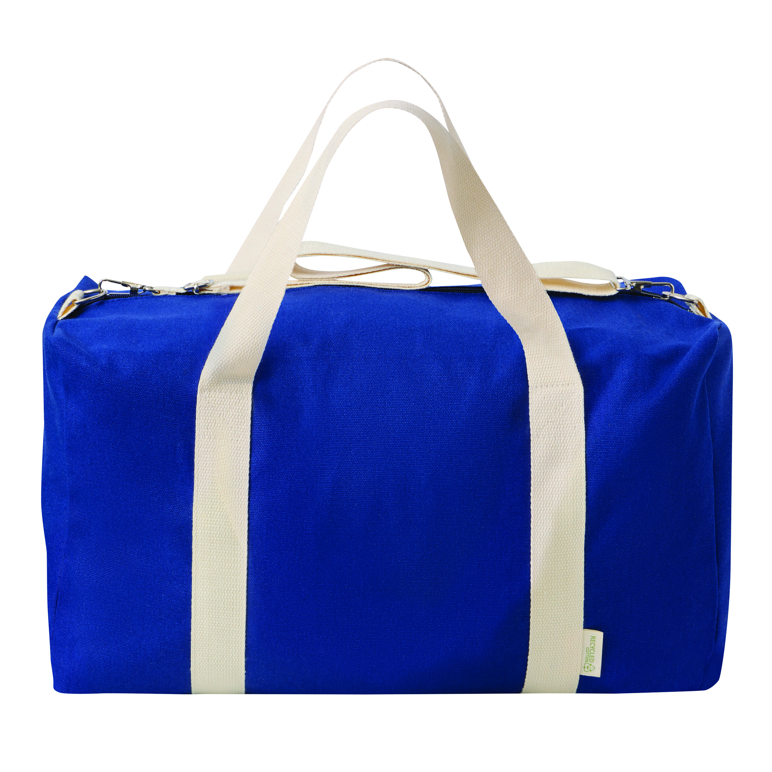 Torba sportowa BANKURA. Wykonana jest z bawełny pochodzącej z recyklingu i poliestru. Ma przestronną komorę główną zapinaną na zamek błyskawiczny, 2 uchwyty do przenoszenia oraz regulowany i odpinany pasek na ramię.