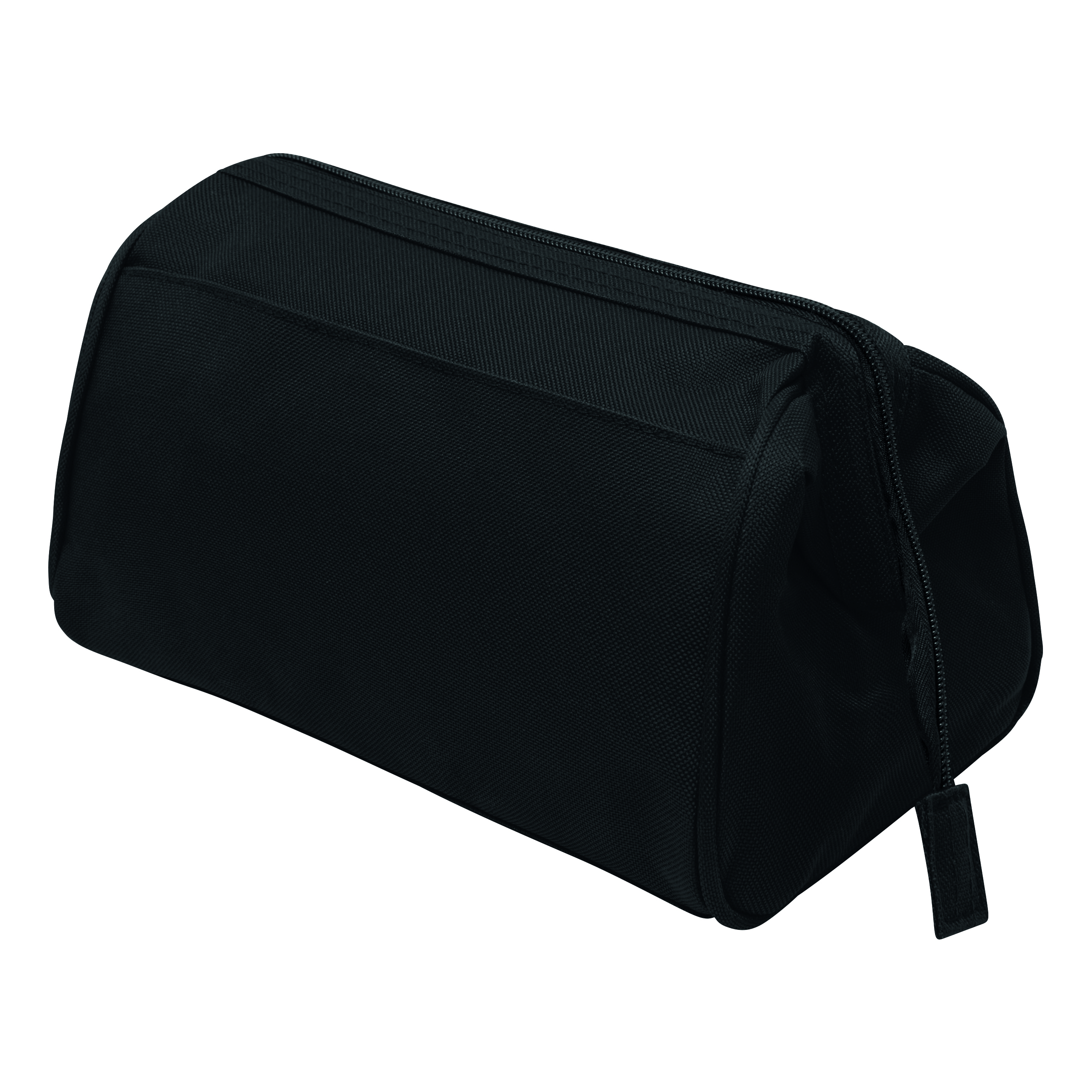 Kosmetyczka DAYBREAK, główna komora zaciskana metalową obejmą i zamkiem, wewnątrz kieszeń na rzep i zamykana na zamek, na zewnątrz jedna kieszeń na rzep.