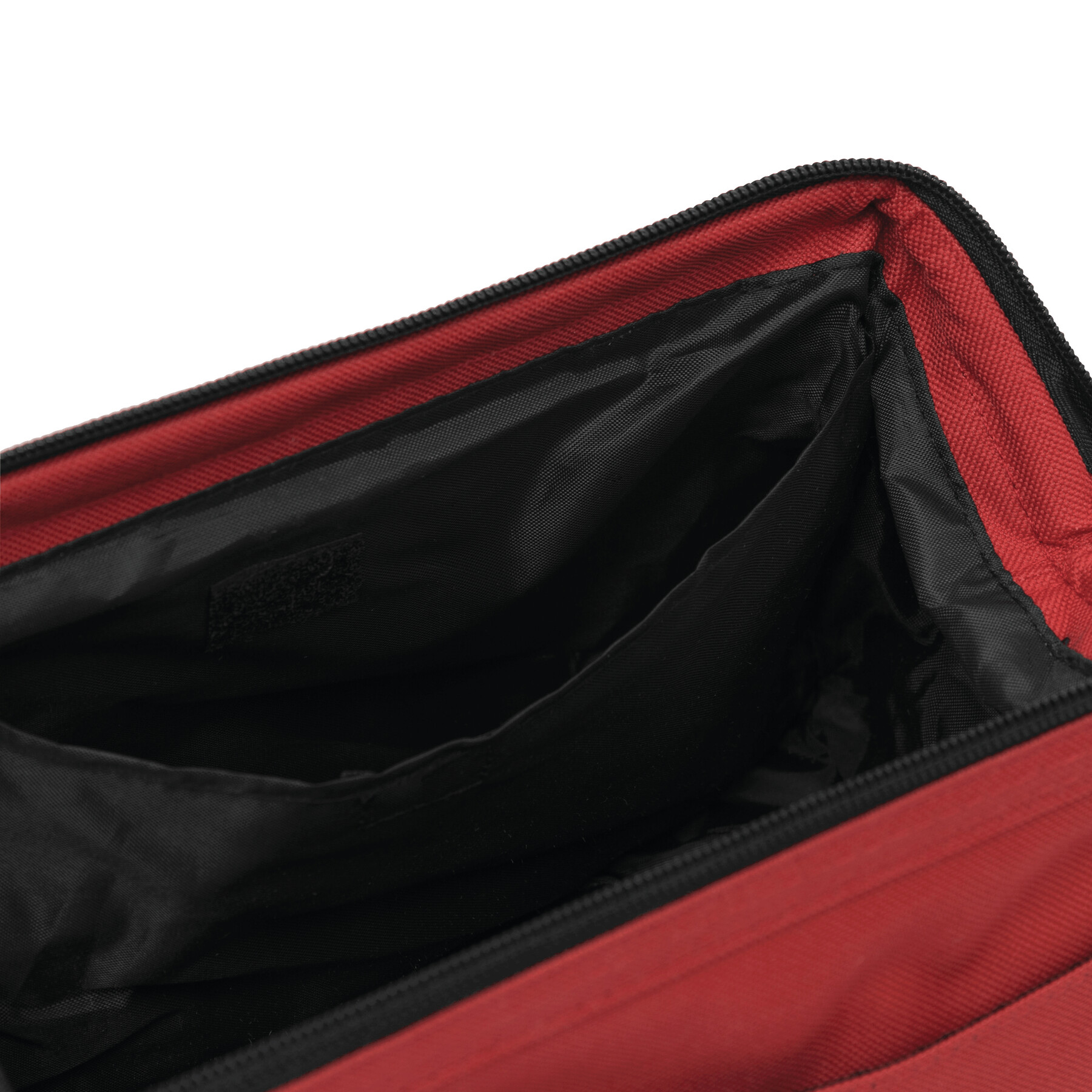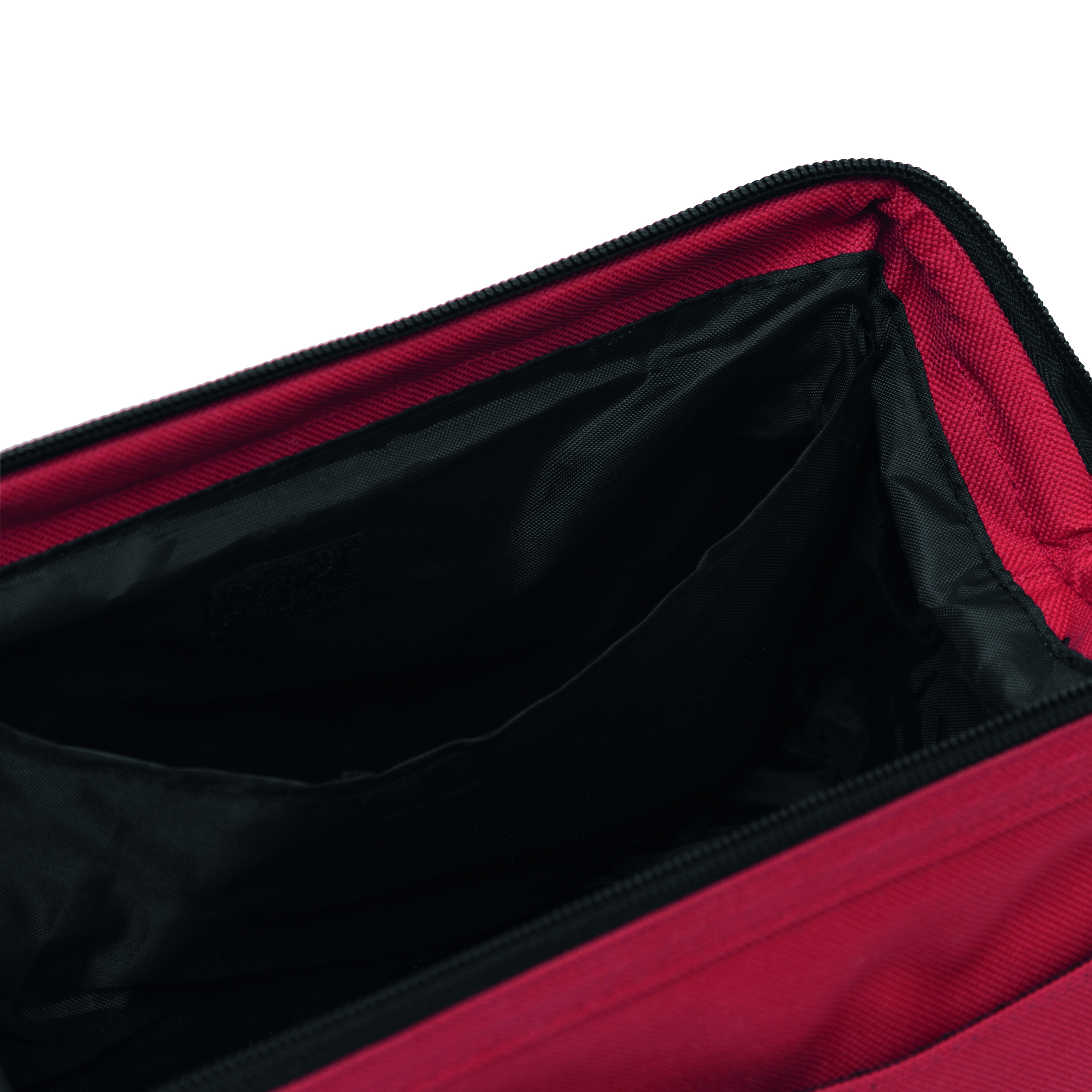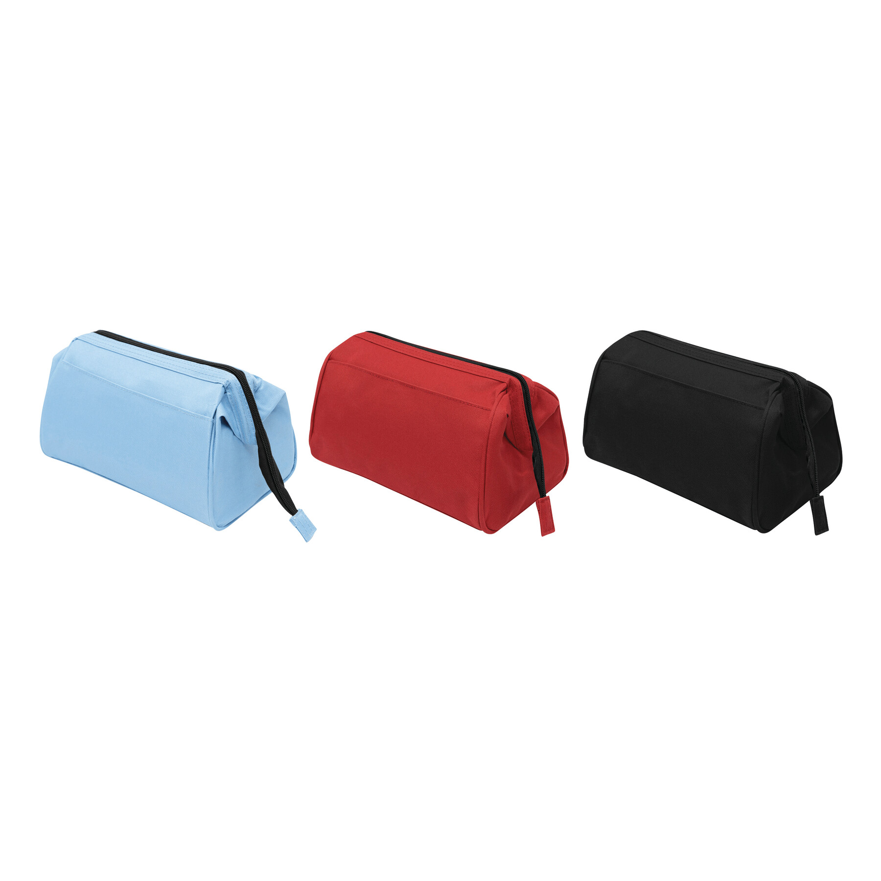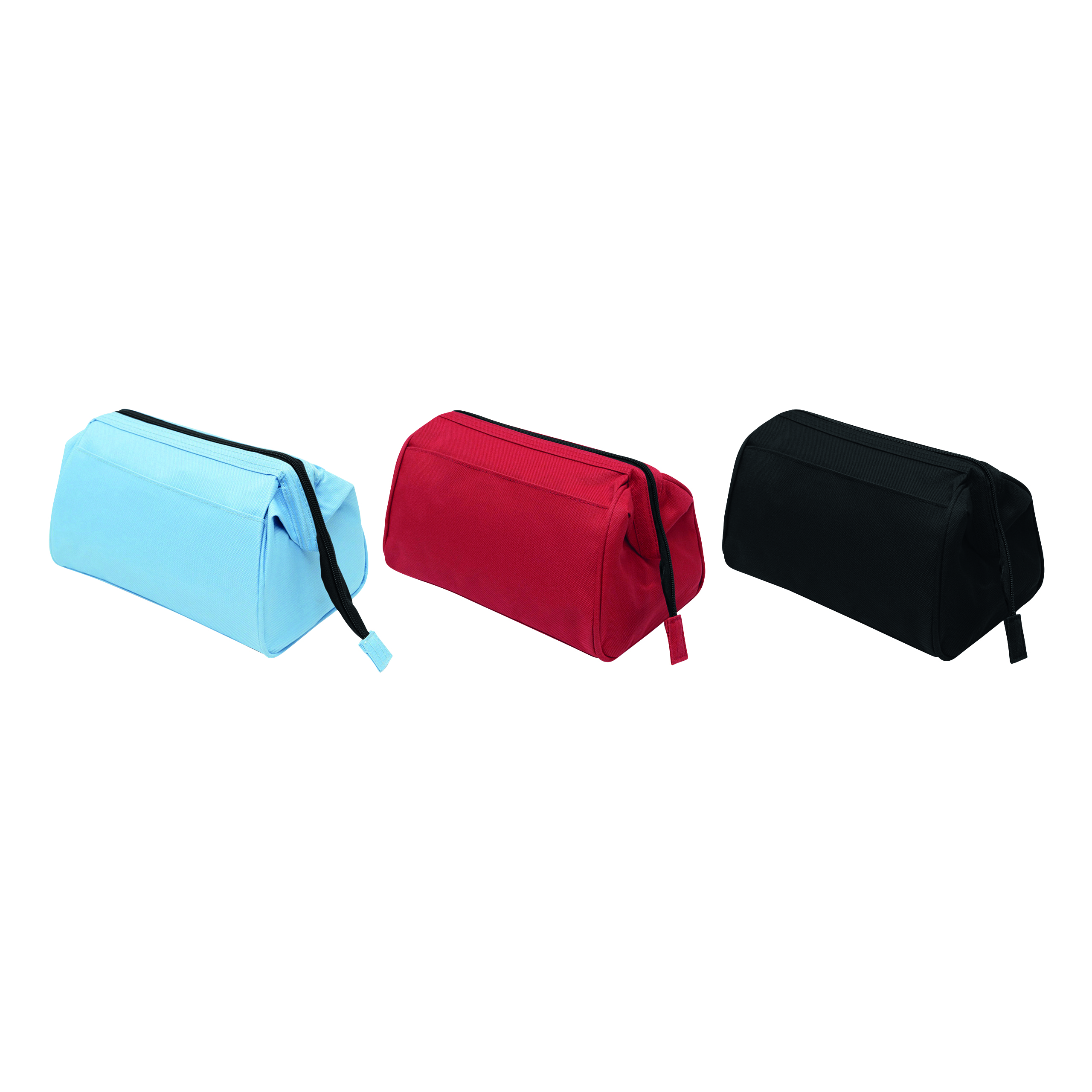 Kosmetyczka DAYBREAK, główna komora zaciskana metalową obejmą i zamkiem, wewnątrz kieszeń na rzep i zamykana na zamek, na zewnątrz jedna kieszeń na rzep.