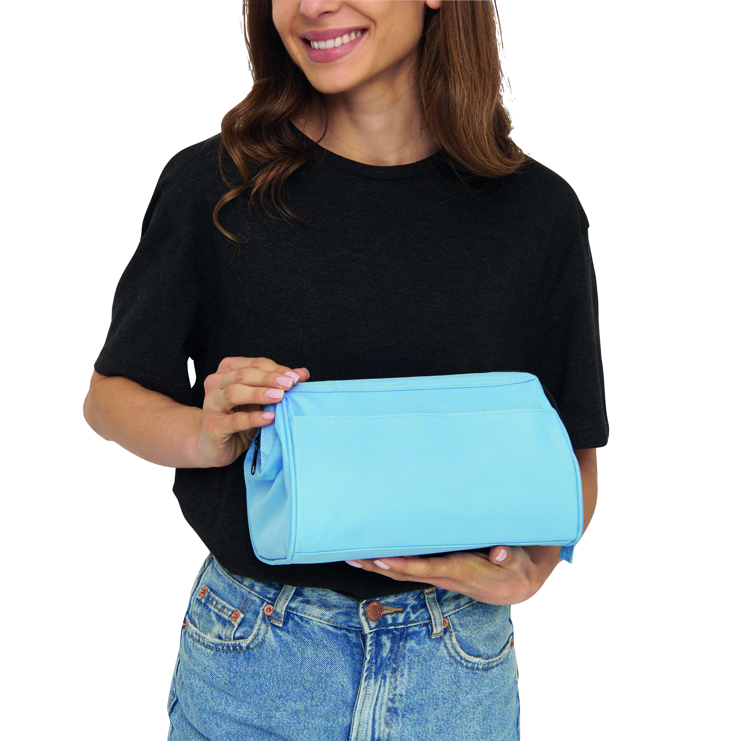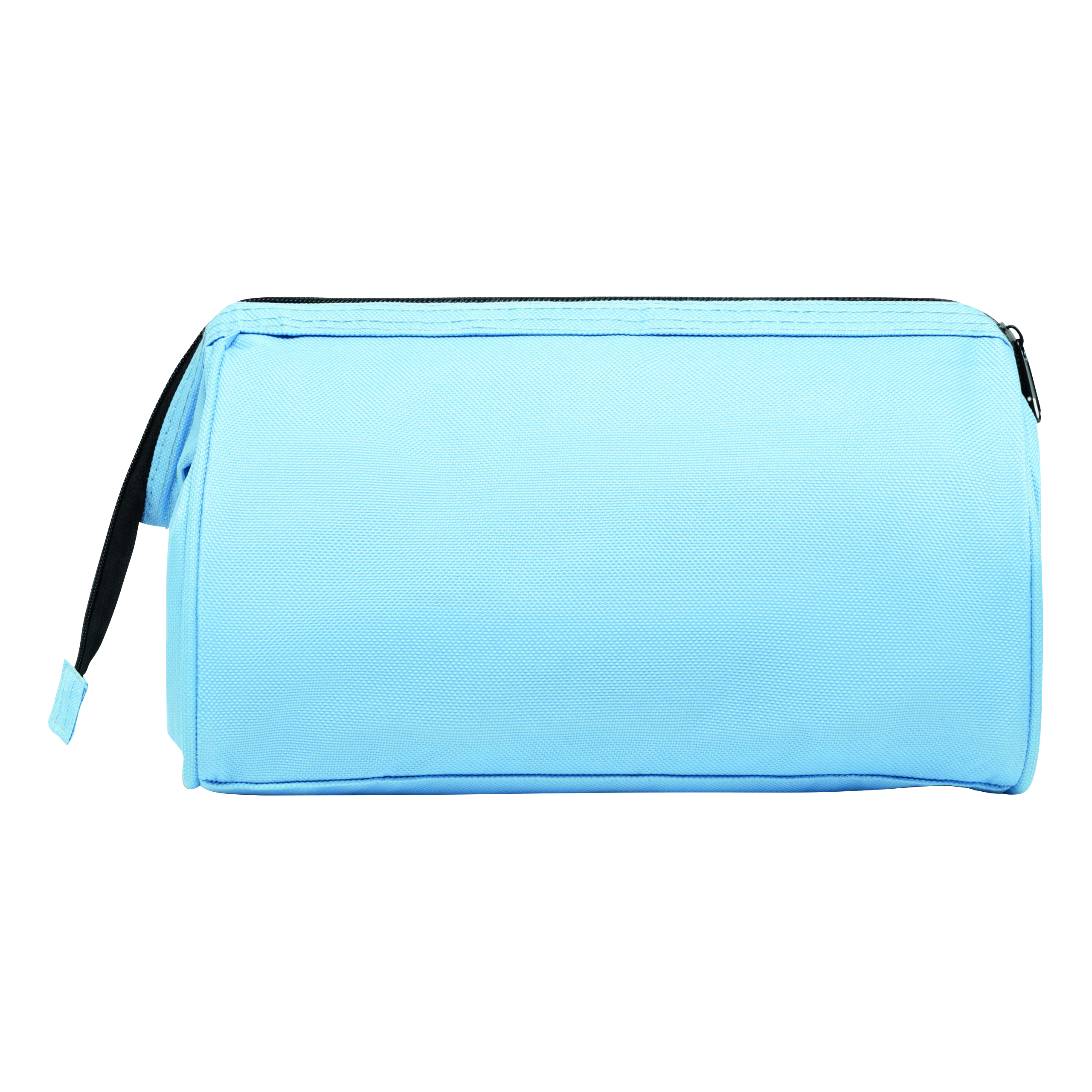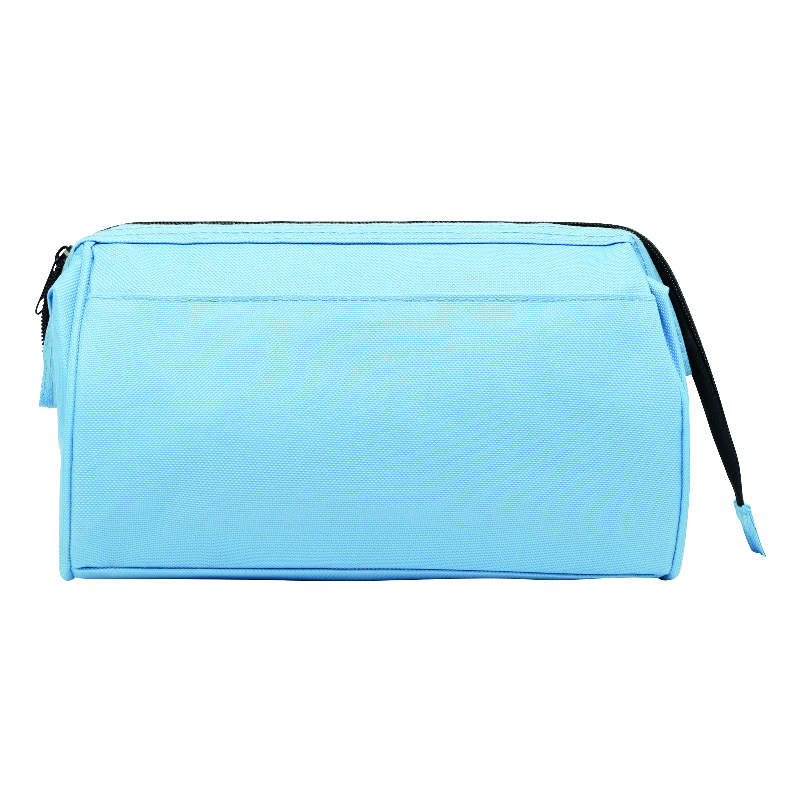 Kosmetyczka DAYBREAK, główna komora zaciskana metalową obejmą i zamkiem, wewnątrz kieszeń na rzep i zamykana na zamek, na zewnątrz jedna kieszeń na rzep.