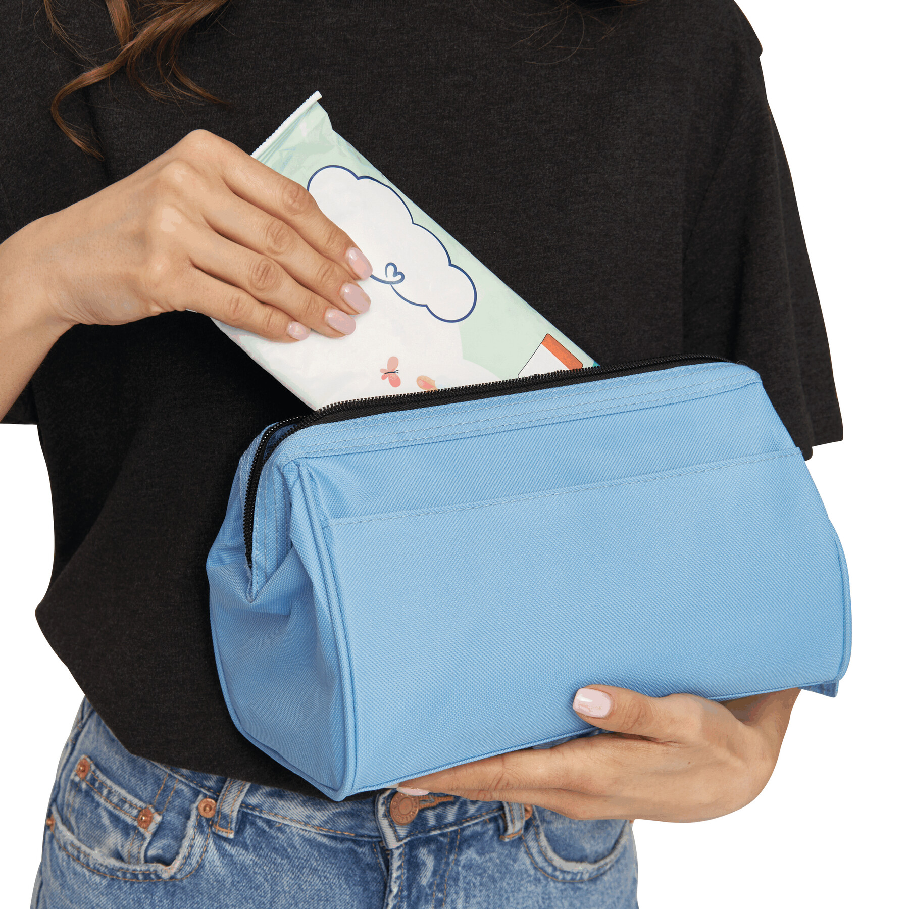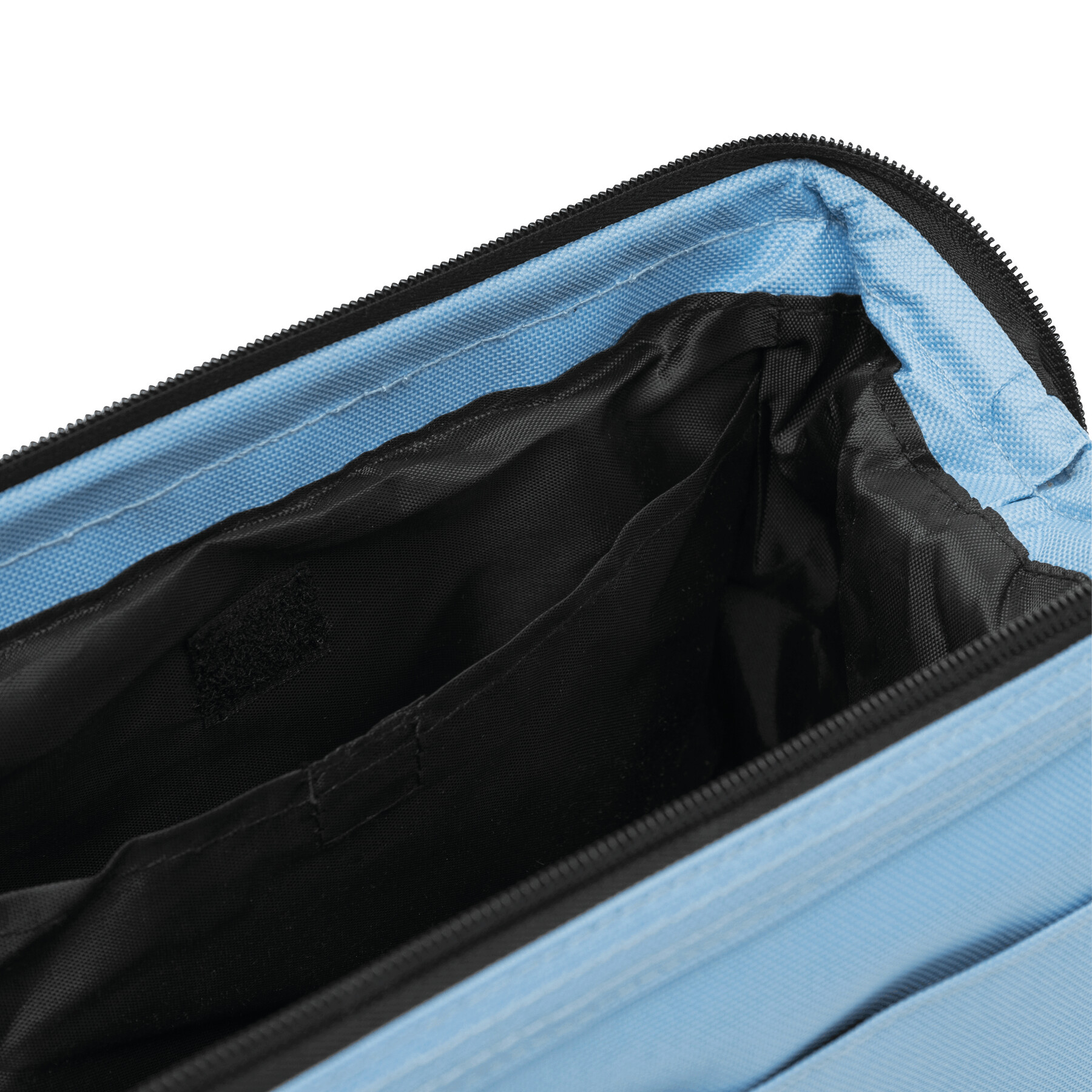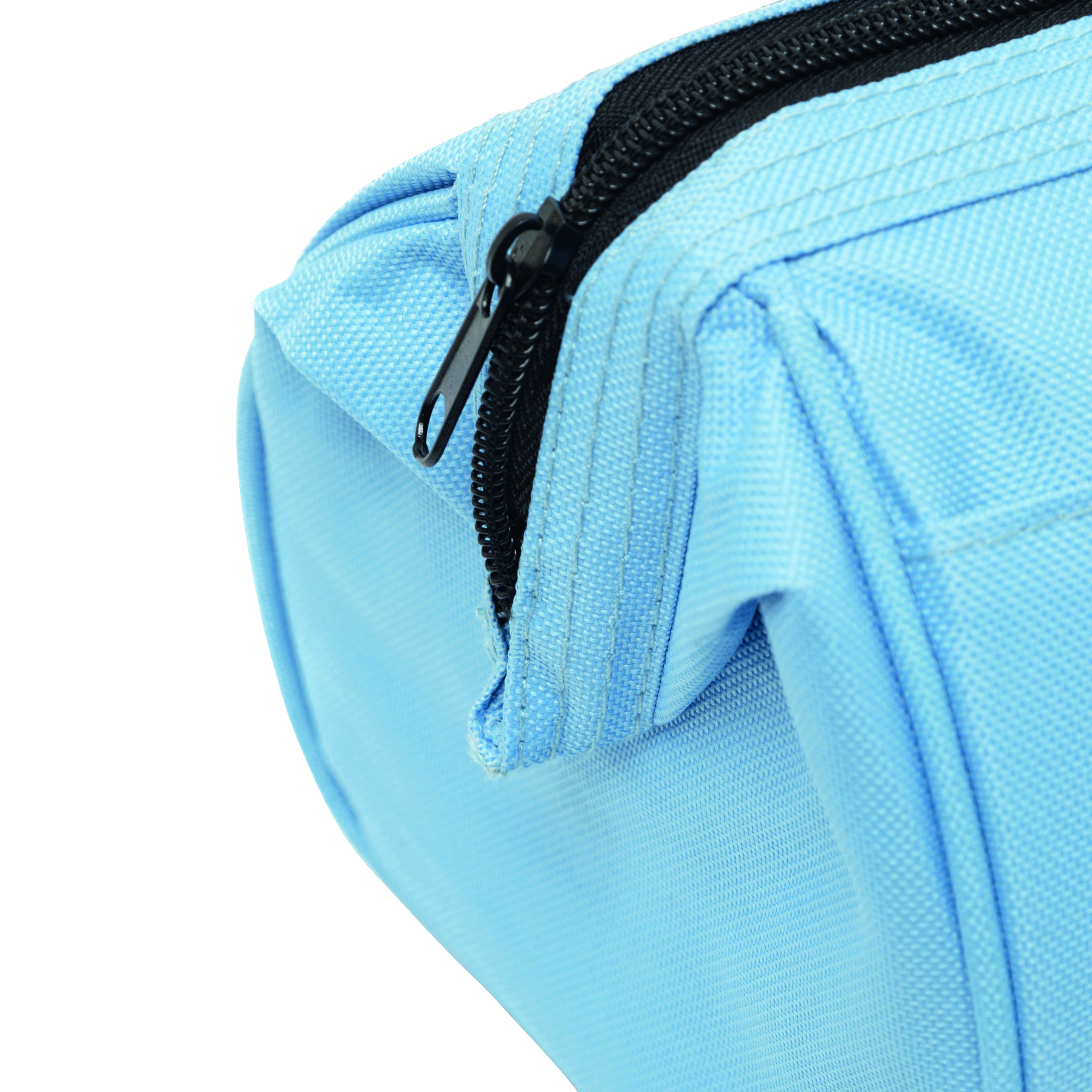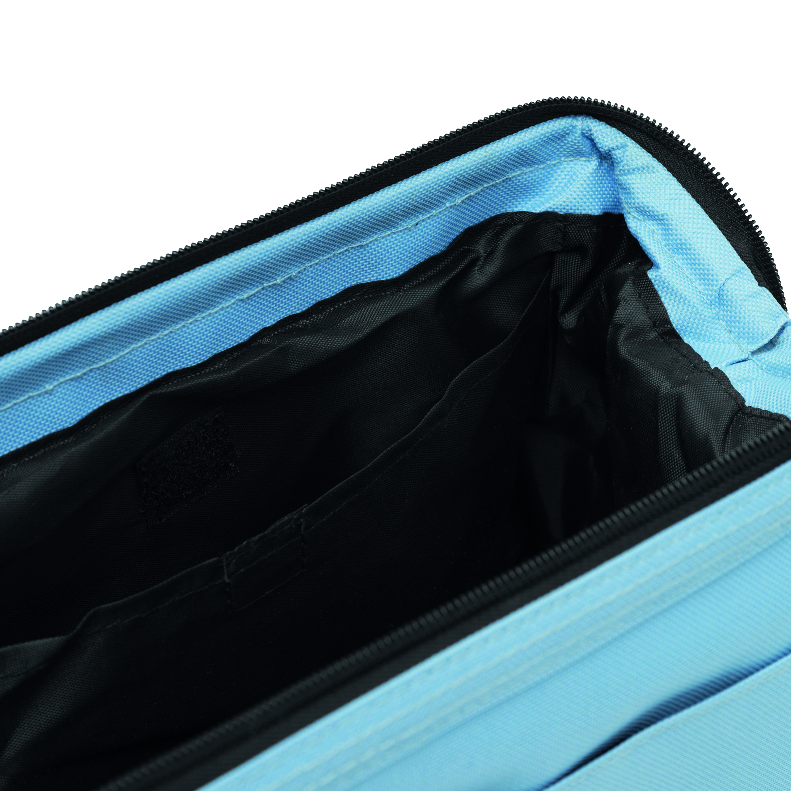 Kosmetyczka DAYBREAK, główna komora zaciskana metalową obejmą i zamkiem, wewnątrz kieszeń na rzep i zamykana na zamek, na zewnątrz jedna kieszeń na rzep.
