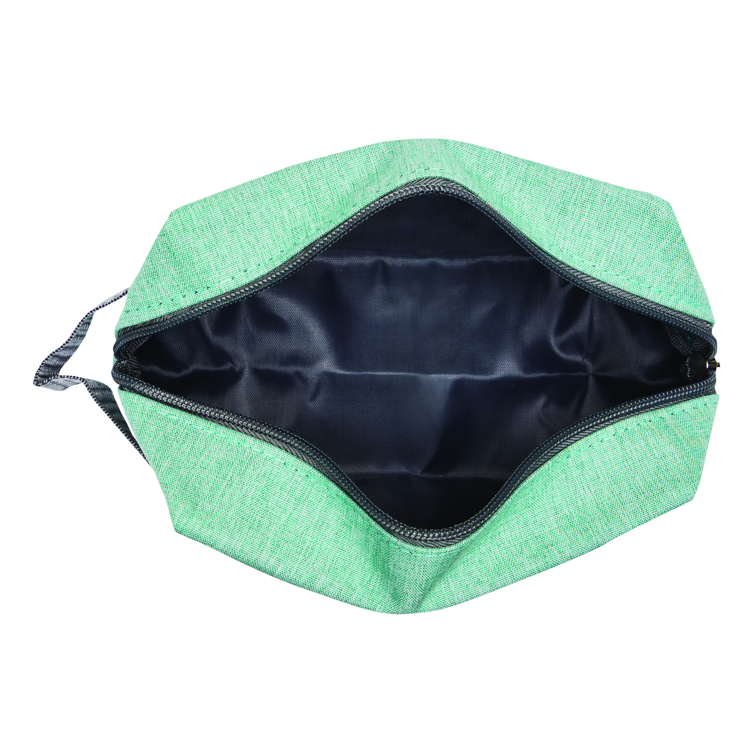 Kosmetyczka CANNES. Wykonana jest z poliestru pochodzącego z recyklingu (rPET). Główna komora zapinana jest na zamek błyskawiczny i ma uchwyt z boku do przenoszenia – idealna na kosmetyki i produkty do higieny osobistej.