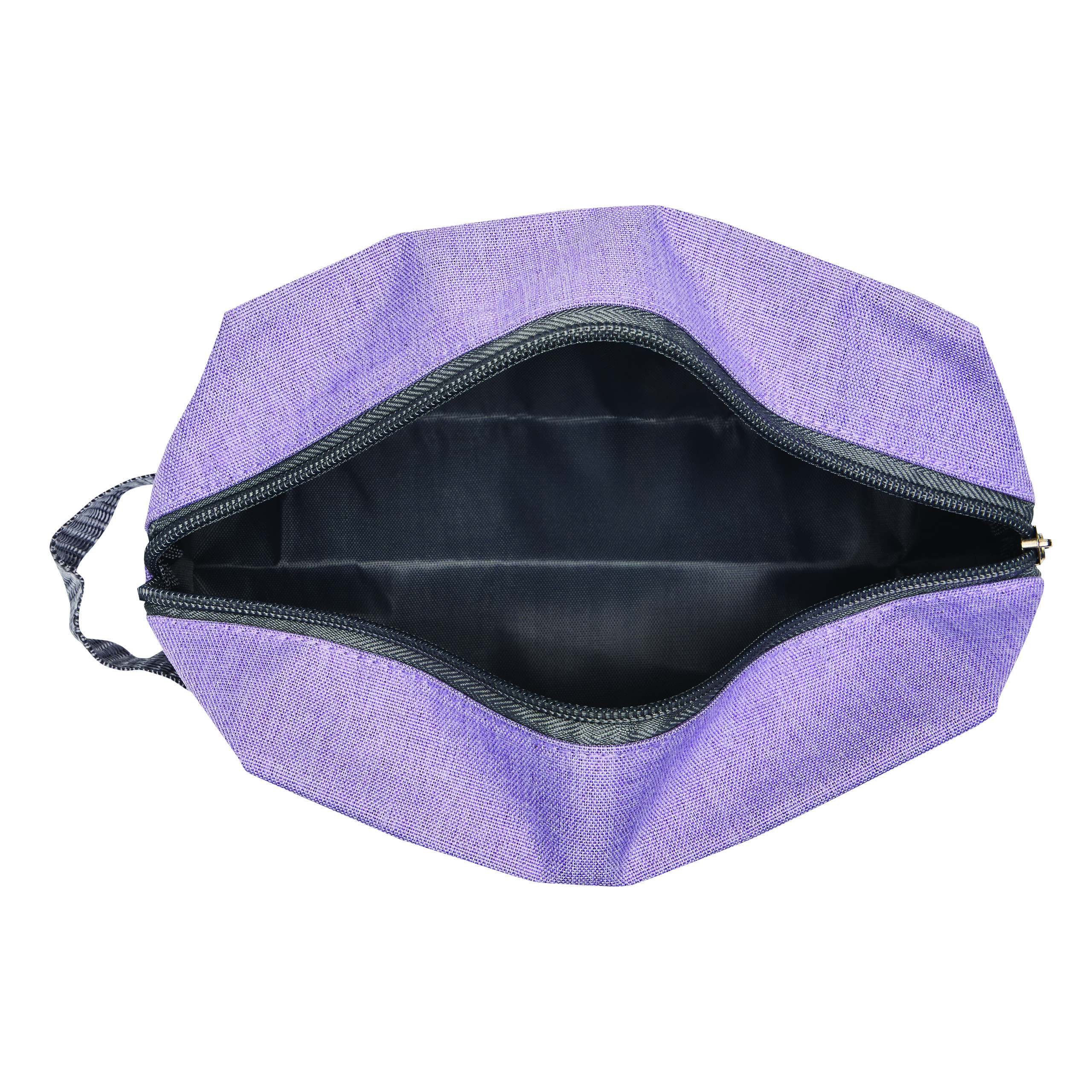 Kosmetyczka CANNES. Wykonana jest z poliestru pochodzącego z recyklingu (rPET). Główna komora zapinana jest na zamek błyskawiczny i ma uchwyt z boku do przenoszenia – idealna na kosmetyki i produkty do higieny osobistej.