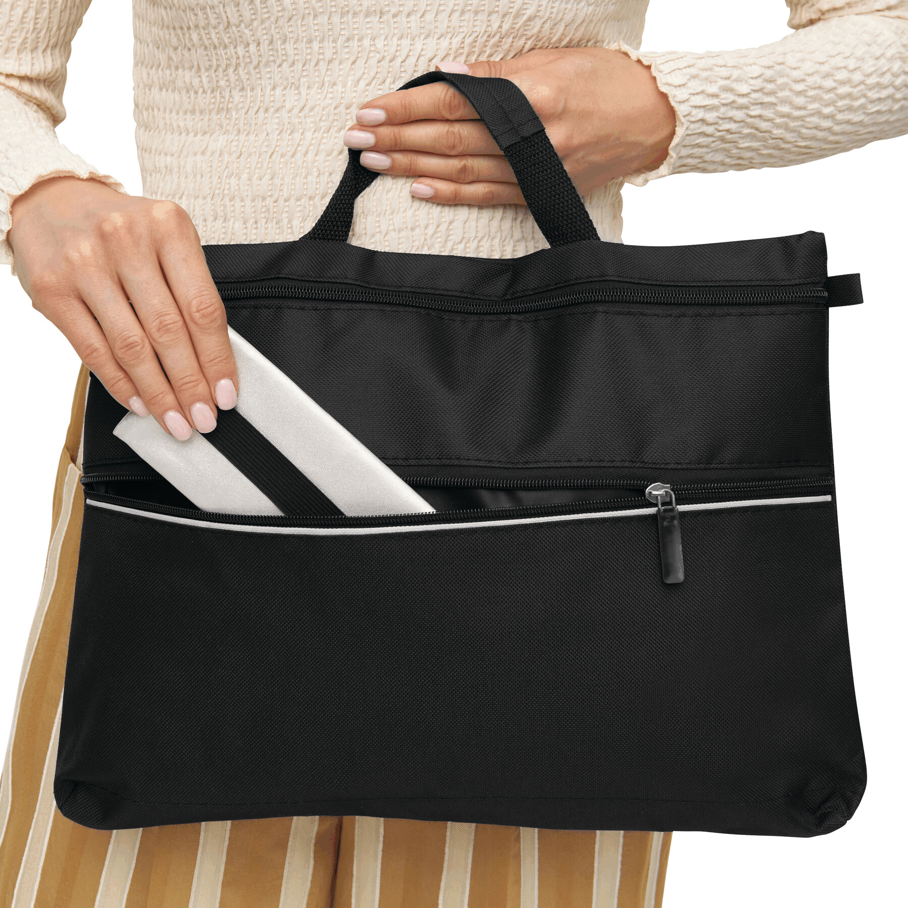 Torba na dokumenty FILE z kieszenią główną oraz dodatkową na przodzie zapinanymi na zamek oraz mocnym uchwytem do noszenia.