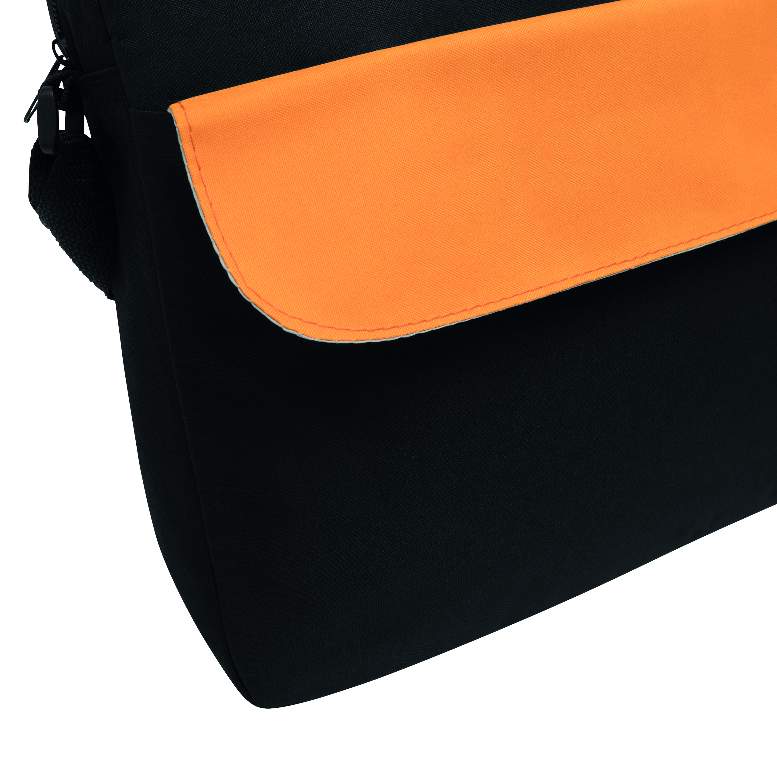 Teczka na dokumenty BRISTOL, kolorowa klapa zapinana na rzep, przestronna komora główna na zamek błyskawiczny, 2 wzmacniane kolorowe uchwyty do przenoszenia, regulowany pasek na ramię.