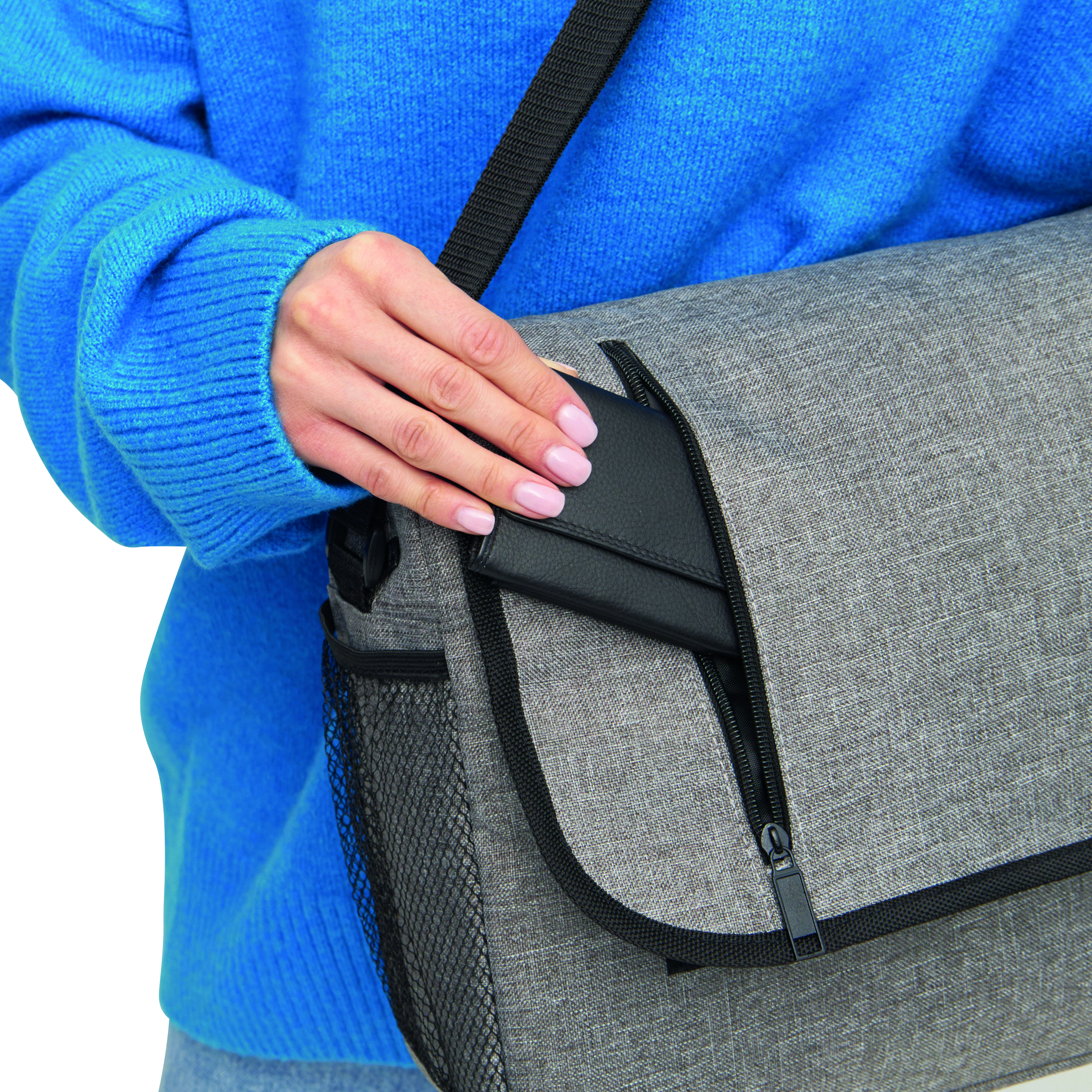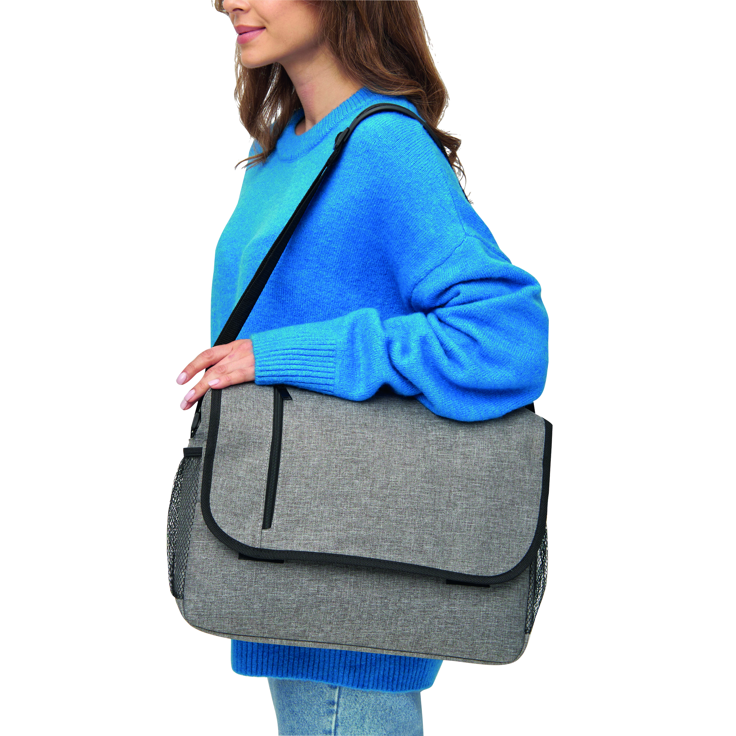 Torba na ramię DONEGAL DOC z klapą zamykaną na rzep, przestronna komora główna i jedna wyściełana przegroda na laptopa, dwie boczne kieszenie z boku, organizer, regulowany pasek na ramię.