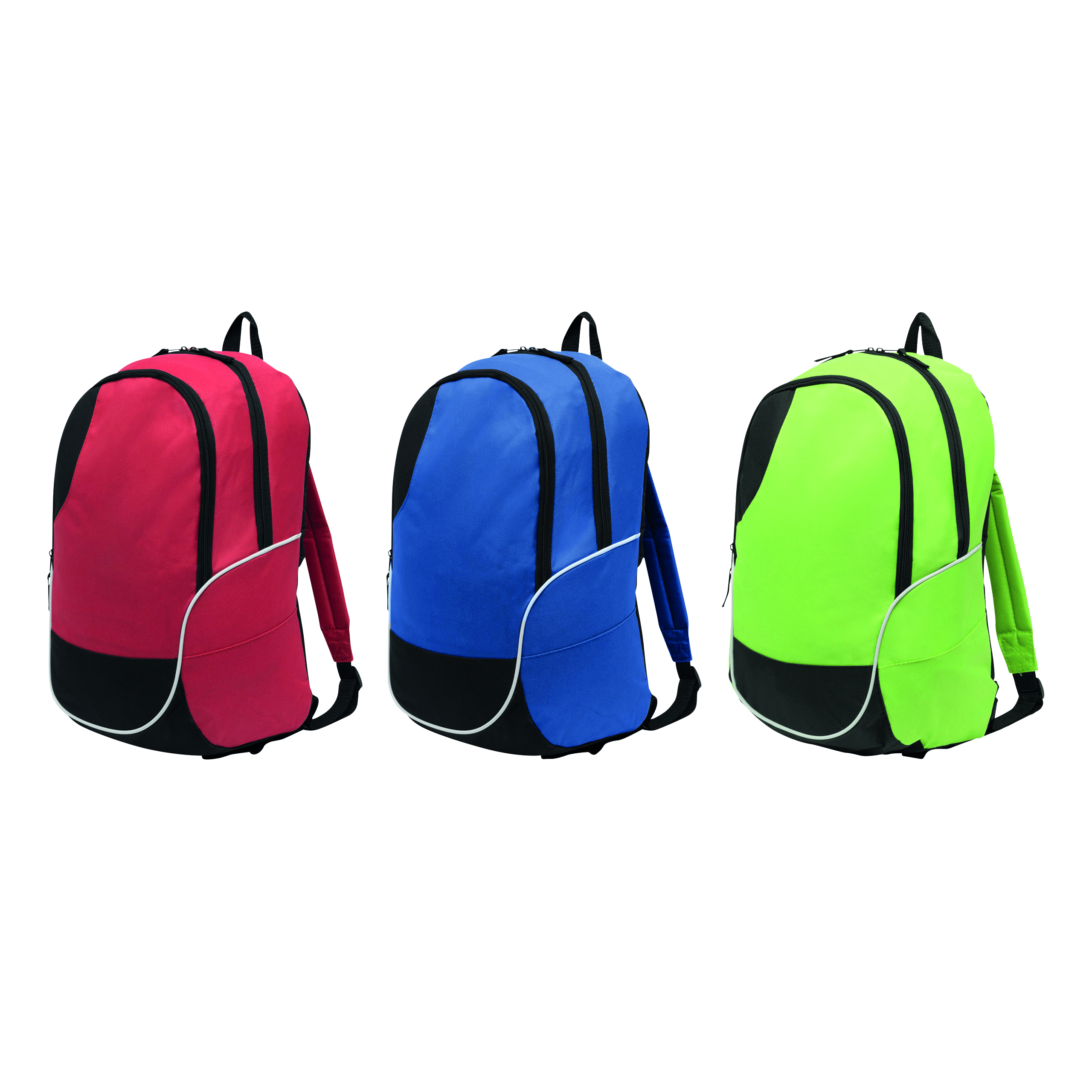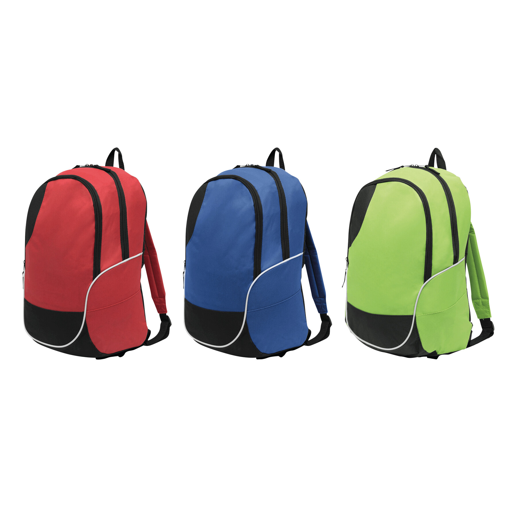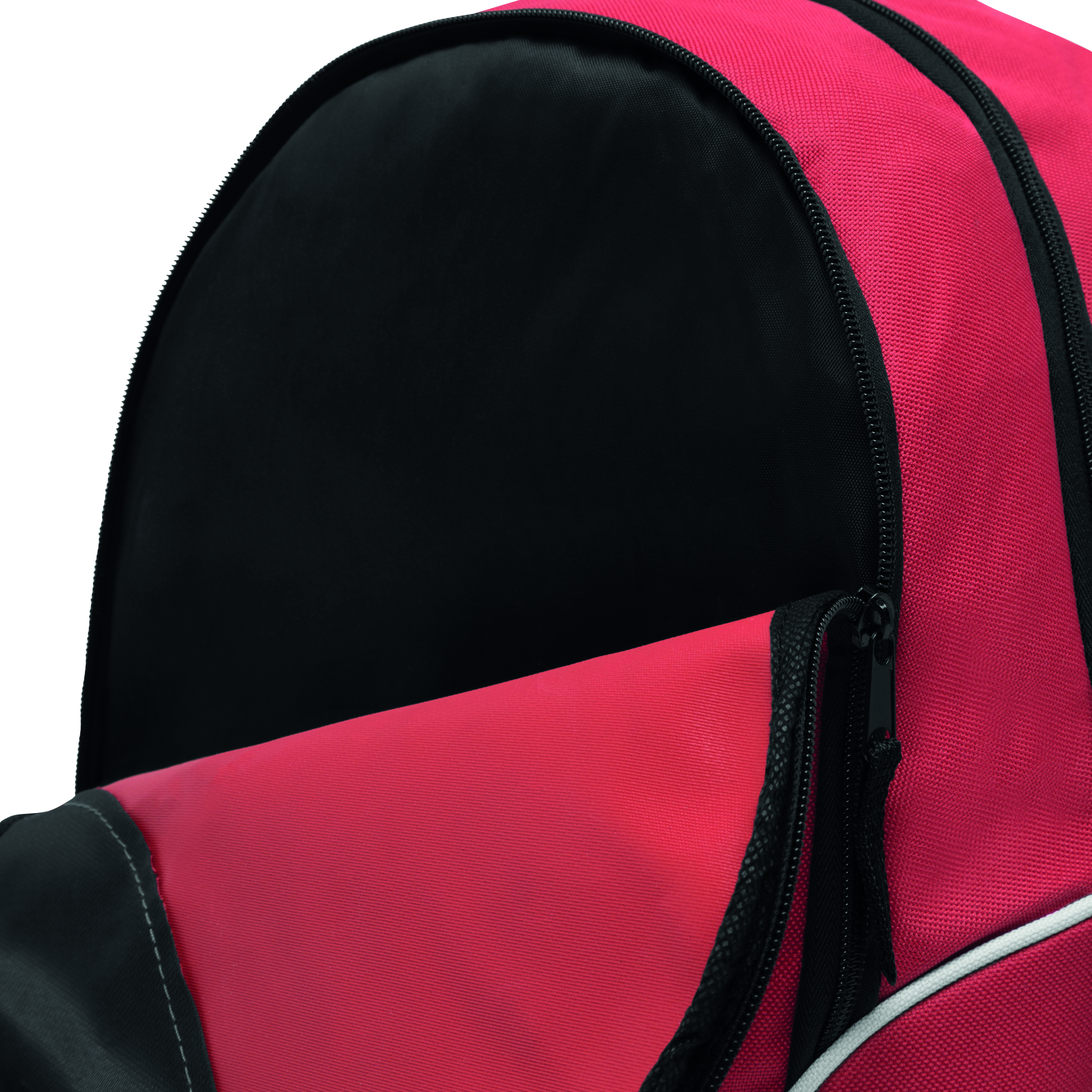 Plecak CURVE z zapinanymi na zamek kieszeniami główną i przednią, uchwytem do noszenia oraz wzmocnionymi paskami na ramiona i wykładanymi plecami.
