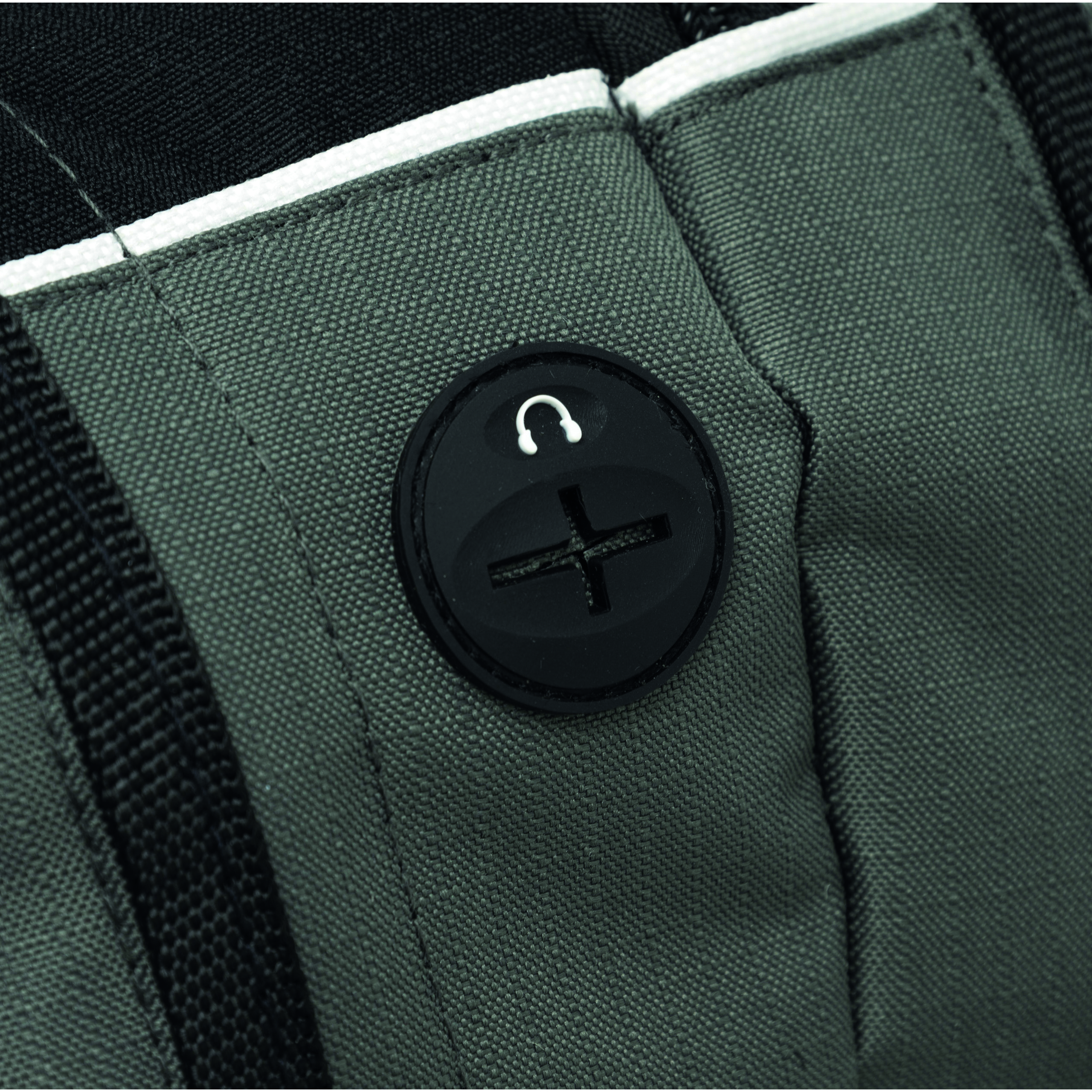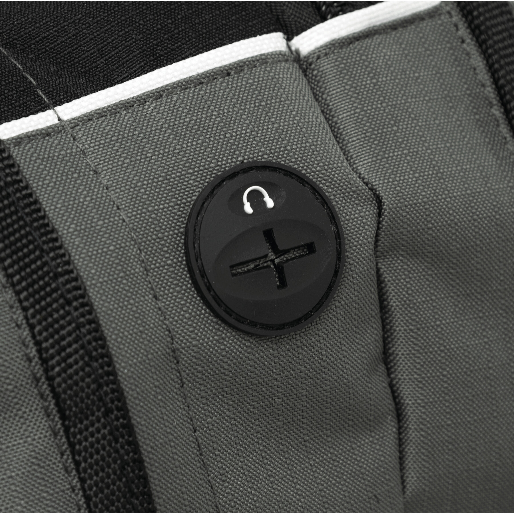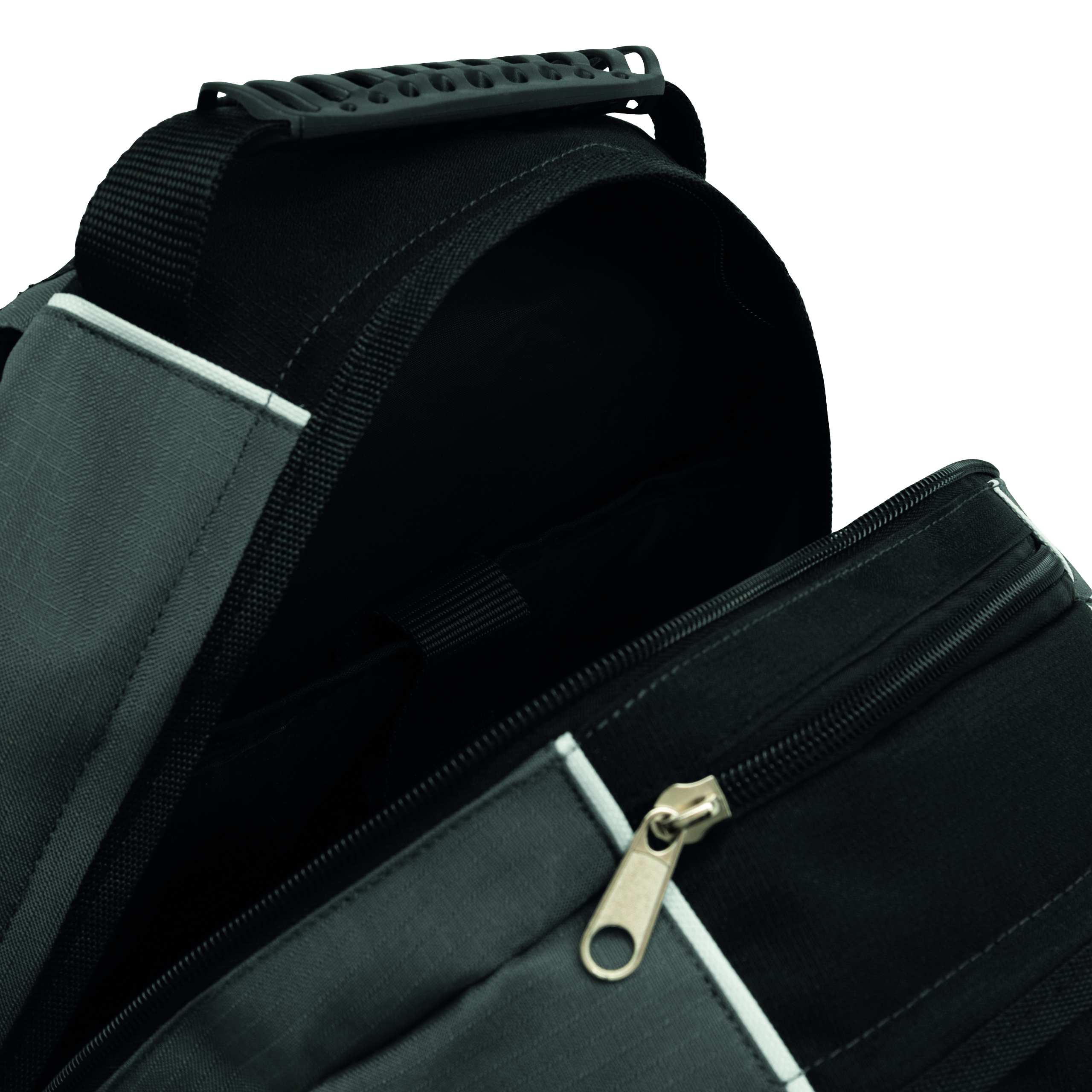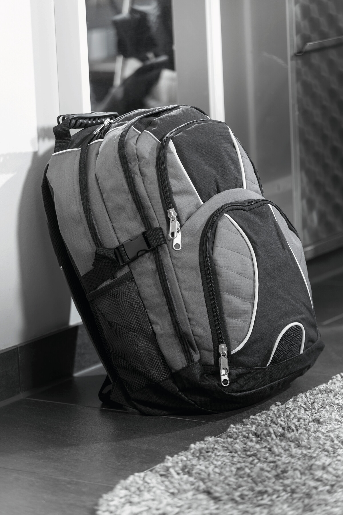 Plecak HYPE z dwiema przednimi kieszeniami zapinanymi na suwak, w tym jedna z mniejszymi kieszonkami w środku, dwie główne komory na suwak. Jedna usztywniana na laptopa, a druga na odtwarzacz CD lub inny sprzęt, z otworem na kabel słuchawek, jedna kieszeń na klucze, dwie kieszenie z siatki po bokach, z mocną rączką, wyściełanymi ramiączkami i wzmocnionym tyłem.