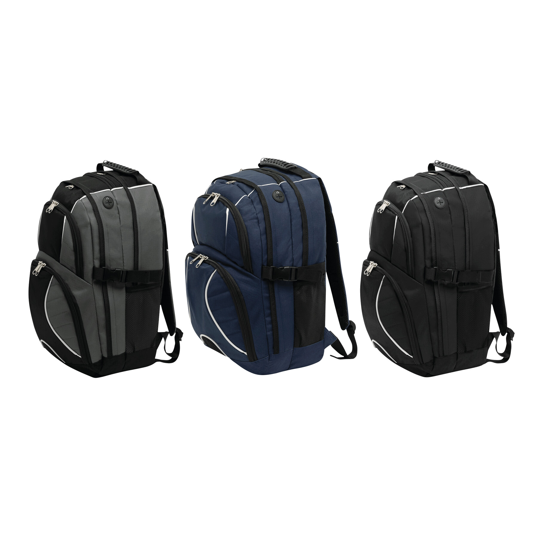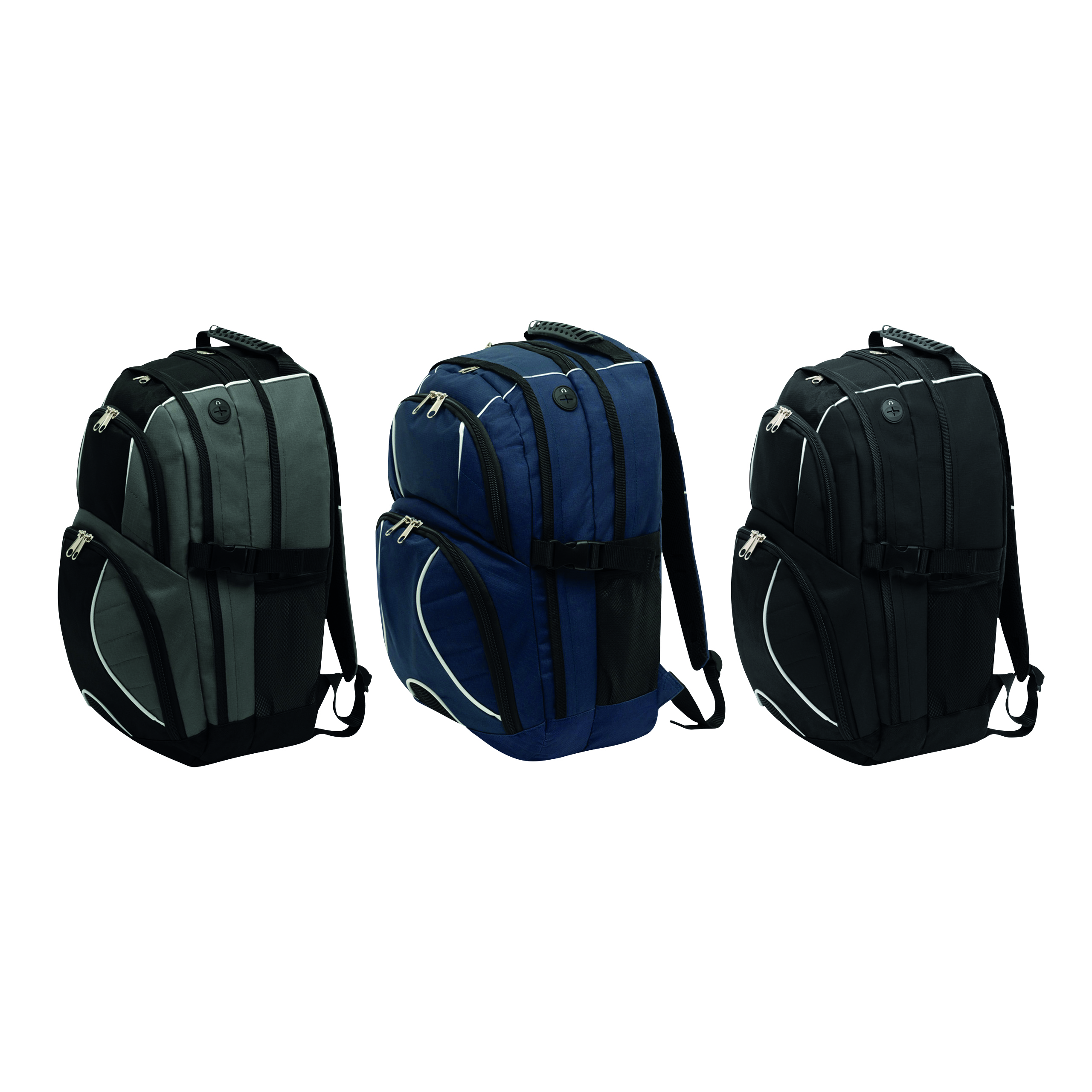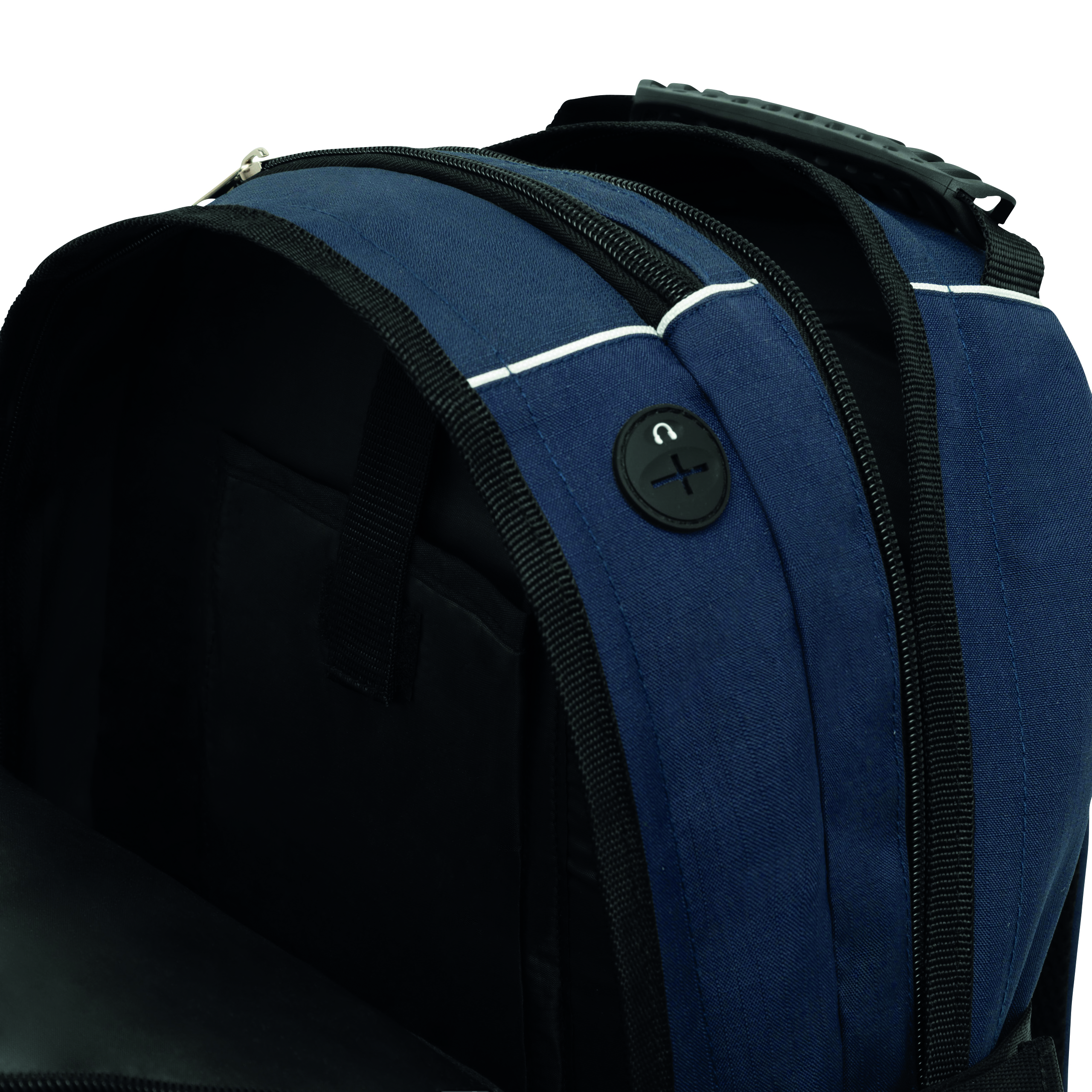 Plecak HYPE z dwiema przednimi kieszeniami zapinanymi na suwak, w tym jedna z mniejszymi kieszonkami w środku, dwie główne komory na suwak. Jedna usztywniana na laptopa, a druga na odtwarzacz CD lub inny sprzęt, z otworem na kabel słuchawek, jedna kieszeń na klucze, dwie kieszenie z siatki po bokach, z mocną rączką, wyściełanymi ramiączkami i wzmocnionym tyłem.