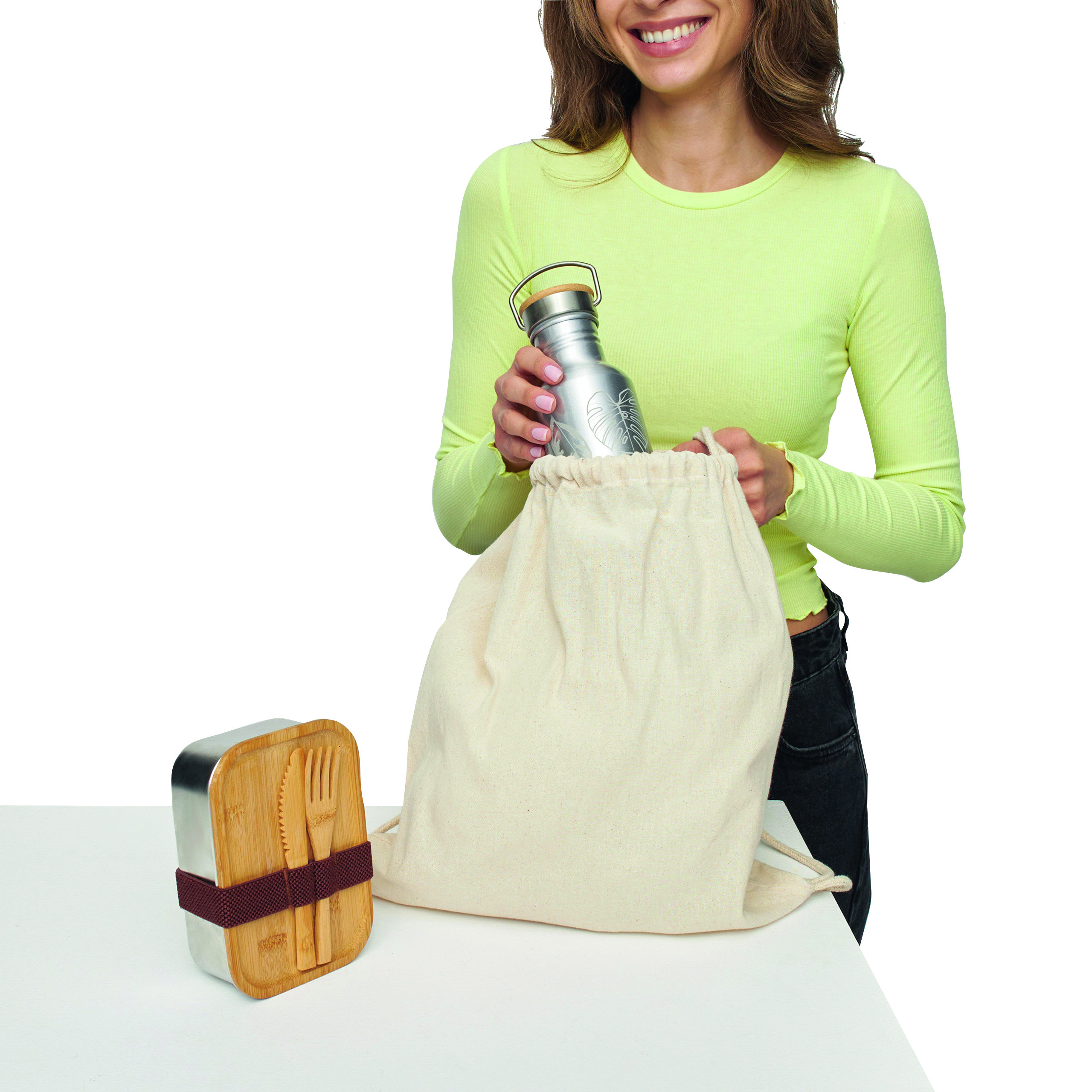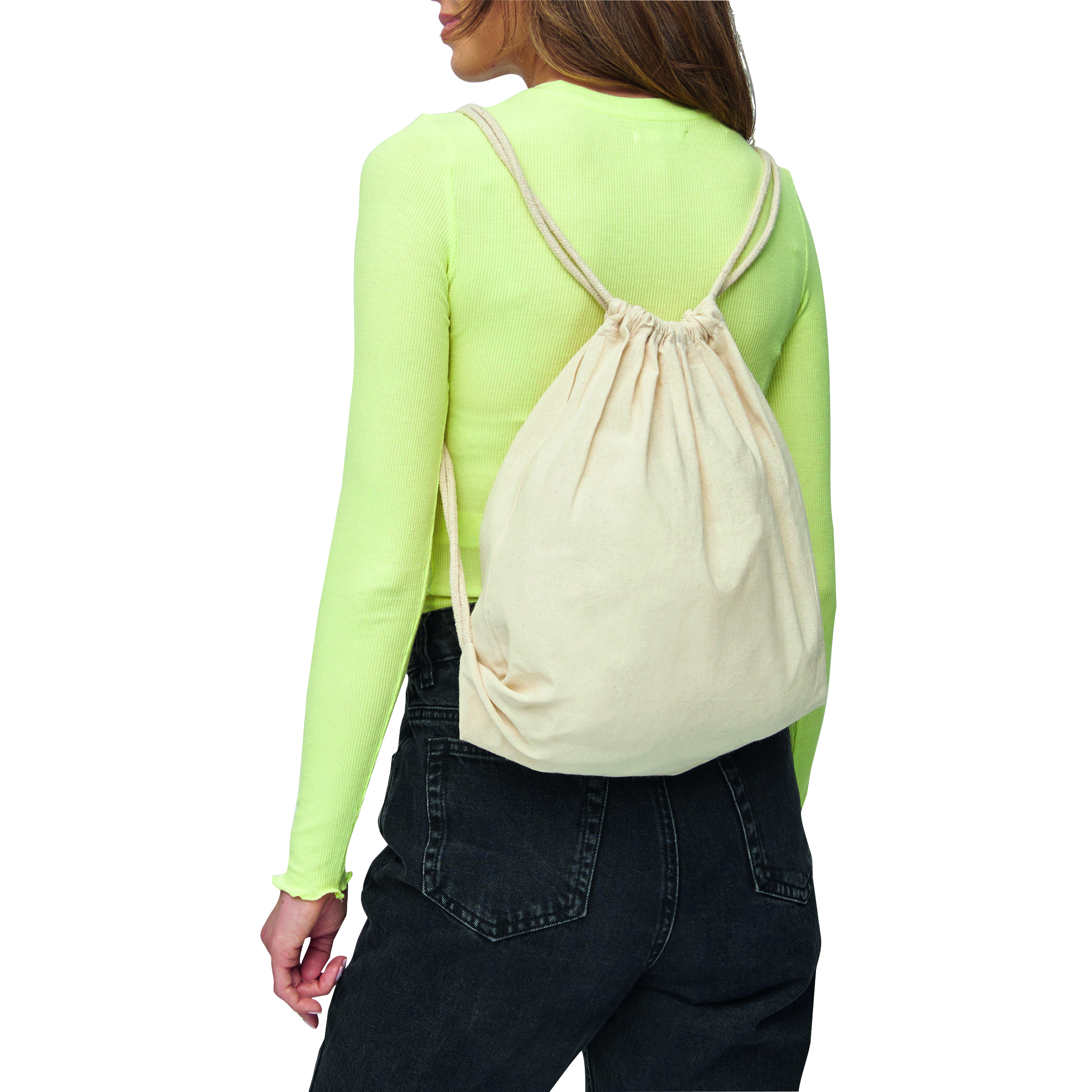Plecak SUBURB z 2 sznurkowymi szelkami, może być noszony na ramieniu lub jako plecak, gramatura ok. 100 g/m², certyfikat OEKO-TEX® Standard 100