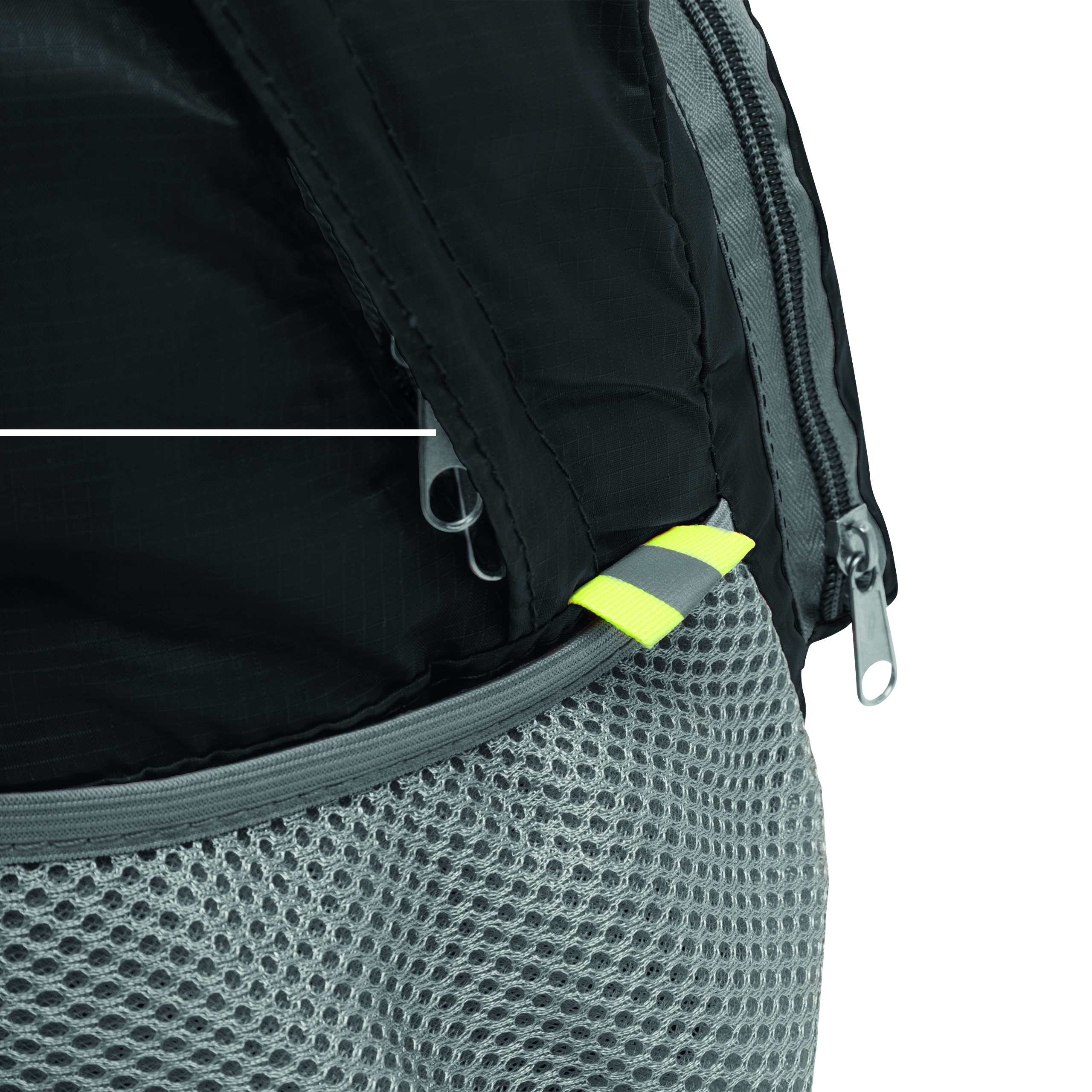 Plecak VOLUNTEER, składany dzięki przedniej kieszeni na zamek z dwustronnym suwakiem i uchwytem wewnątrz, przestronna komora główna na zamek, po bokach 2 siatkowe kieszonki i 2 odblaskowe metki, uchwyt do przenoszenia, regulowane wyściełane paski na ramiona – po złożeniu do formatu małej torebki można mieć go zawsze przy sobie.