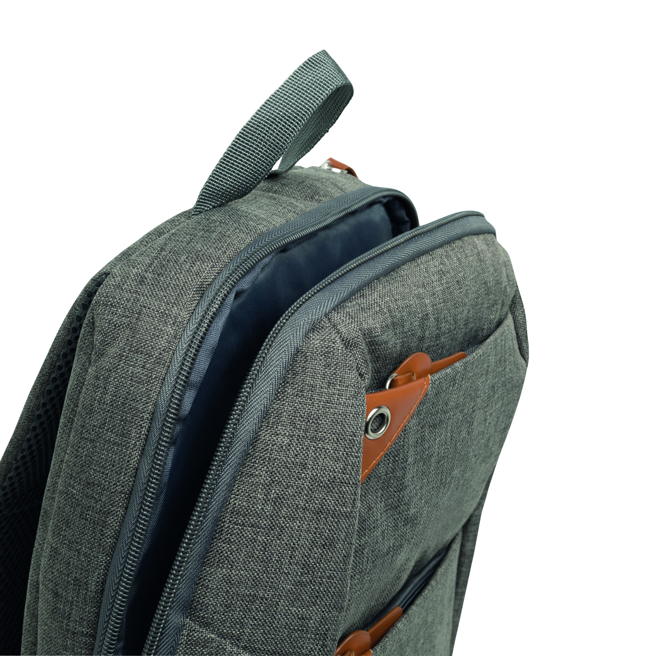 Plecak ABERDEEN z 2 zamykanymi przednimi komorami, z 1 komorą główną, z wyściełaną kieszenią na laptopa zamykaną pionowym zamkiem. Z rączką do przenoszenia oraz z wyściełanymi, wygodnymi plecami i szelkami.