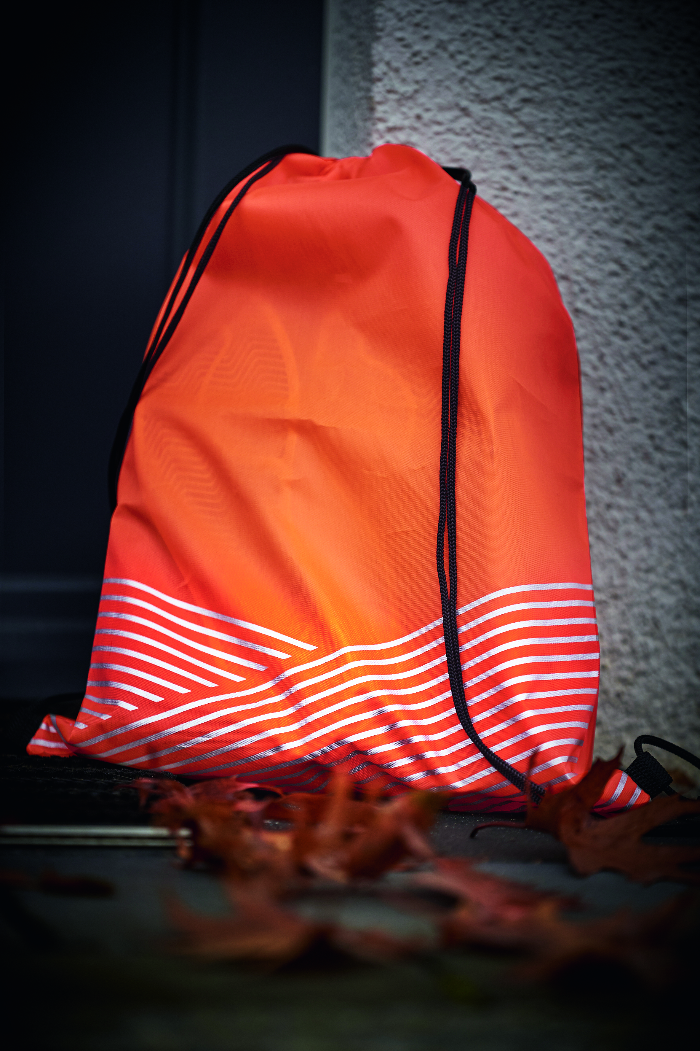 Worek sznurowany BRILLIANT, z odblaskowym nadrukiem. Może być przenoszony na ramieniu lub jak plecak.