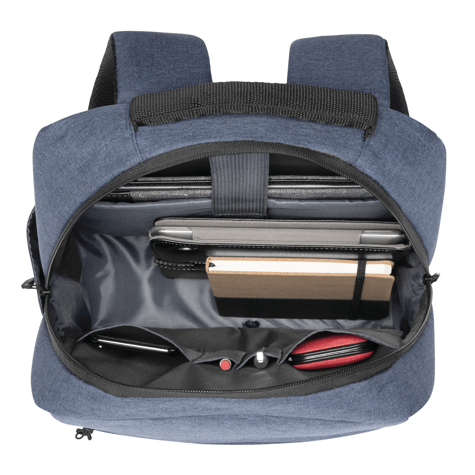 Plecak JUST z 2 przednimi komorami zapinanymi na zamek, z 1 komorą główną, z wyściełaną kieszenią na laptopa lub tablet. Z rączką do przenoszenia oraz z wyściełanymi, wygodnymi plecami i szelkami