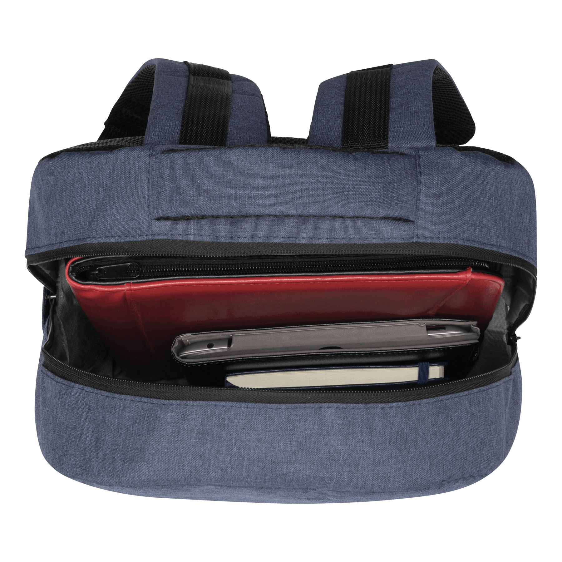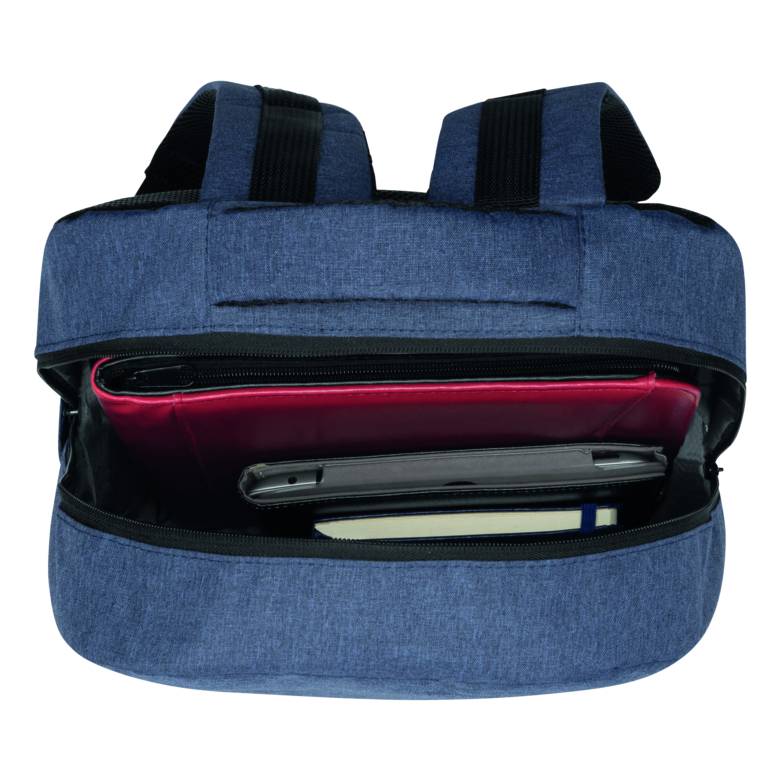Plecak PRAGUE z przednią kieszenią z zamkiem błyskawicznym, główną kieszenią z zamkiem błyskawicznym i wyściełaną kieszenią wewnętrzną na laptopa lub tablet. Z organizerem z 4 kieszeniami, 1 wsuwaną kieszenią boczną, wyściełanym uchwytem, wyściełanymi szelkami i plecami.
