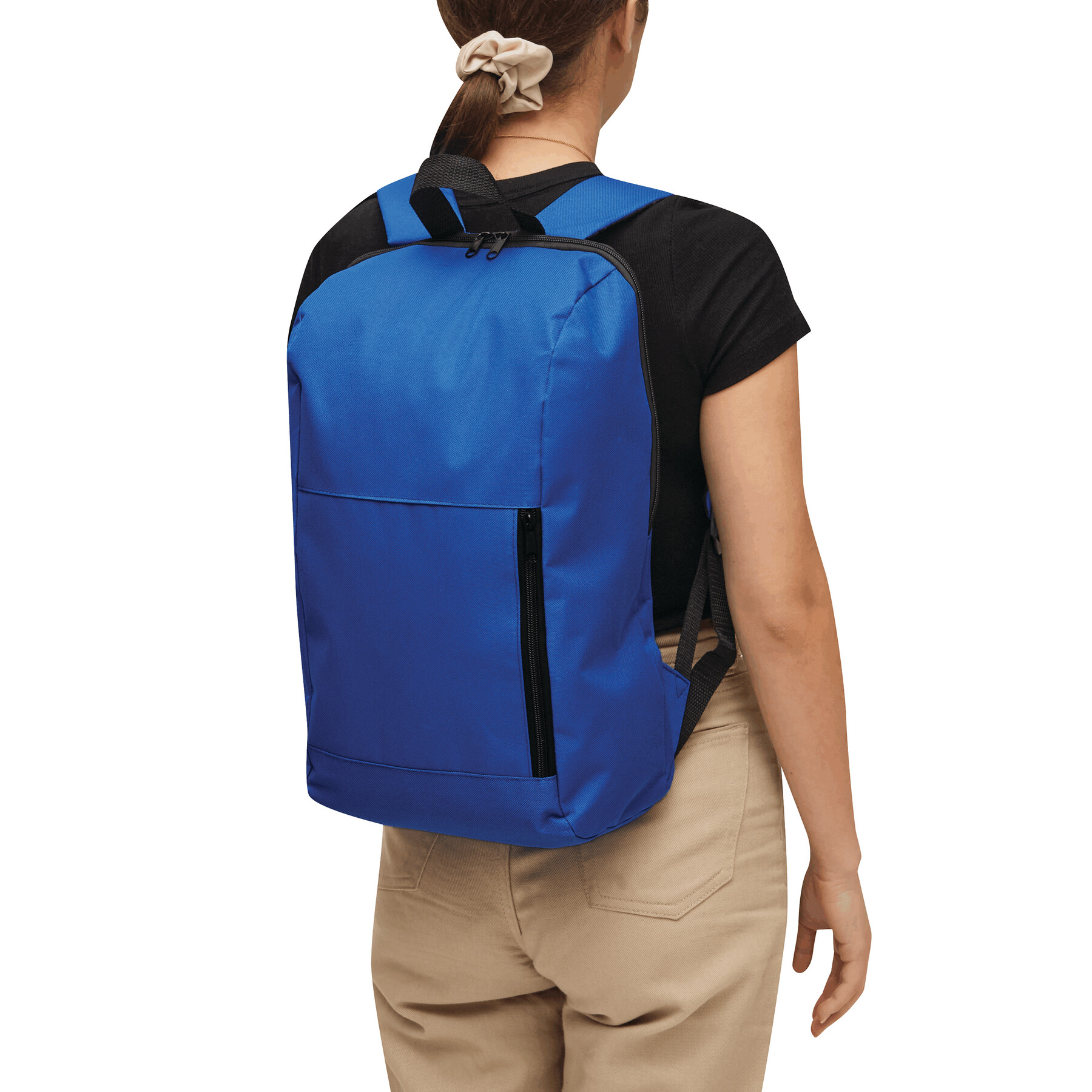 Plecak COMMON. Posiada pionową przednią komorę oraz komorę główną zapinane na suwak. Ma także regulowane, miękkie szelki oraz wygodny pasek do przenoszenia.
