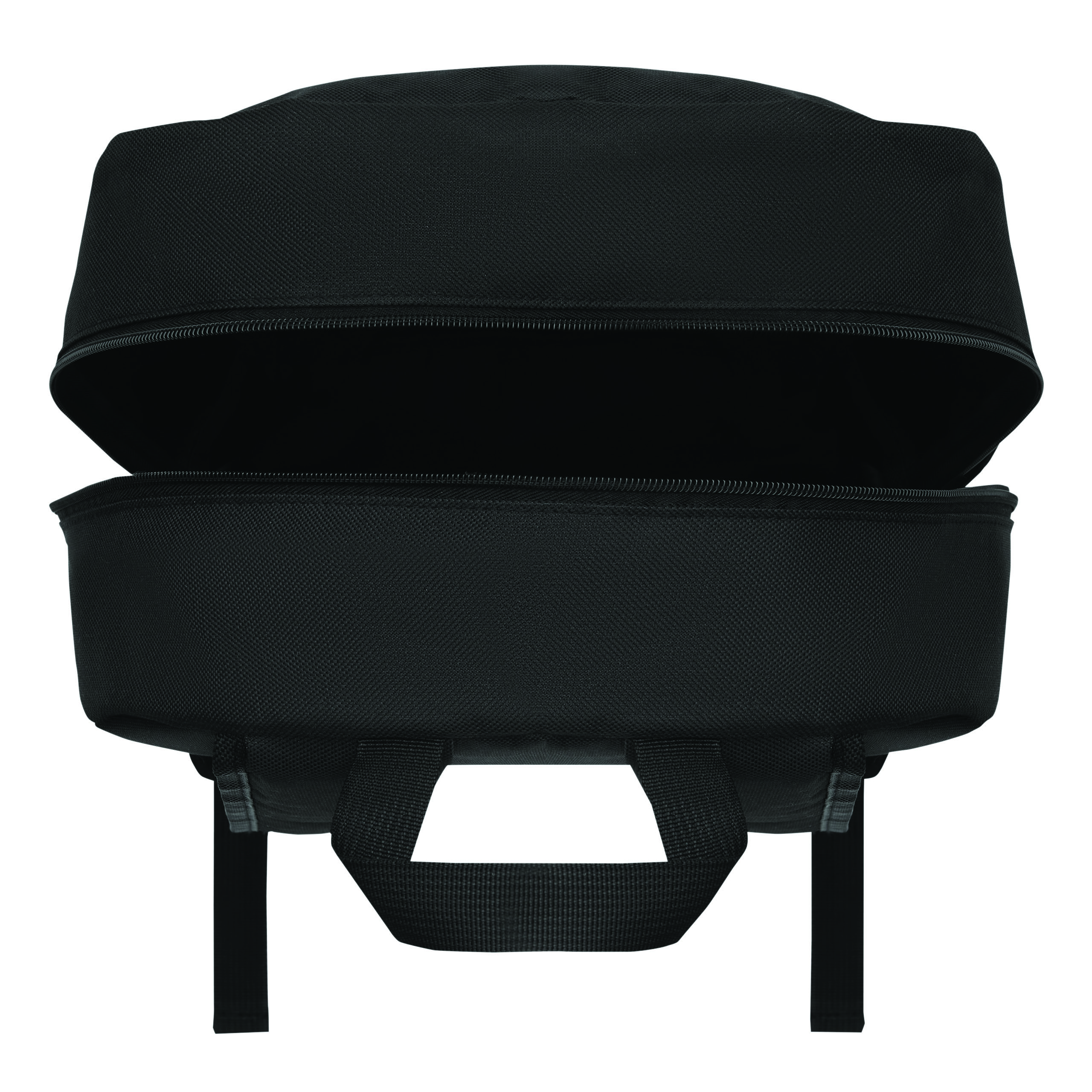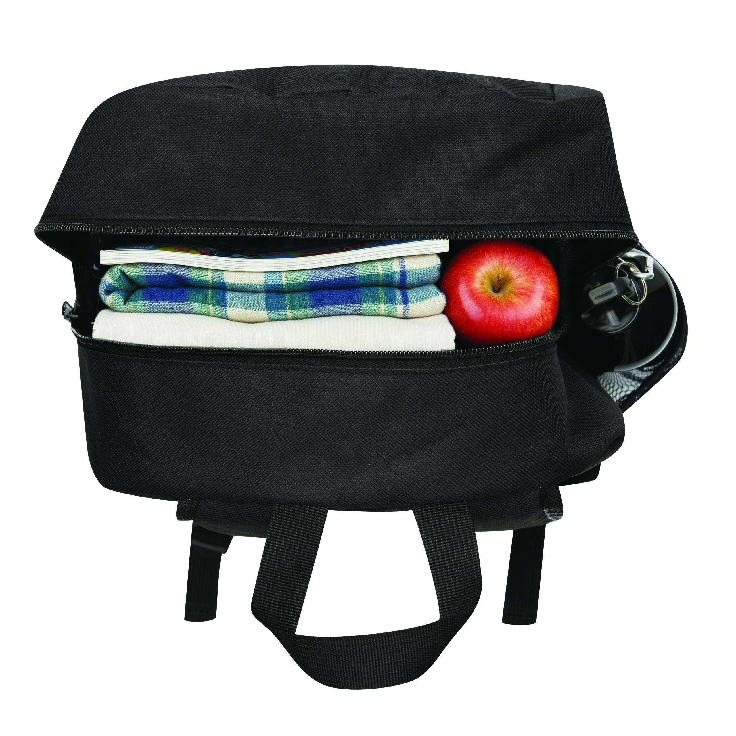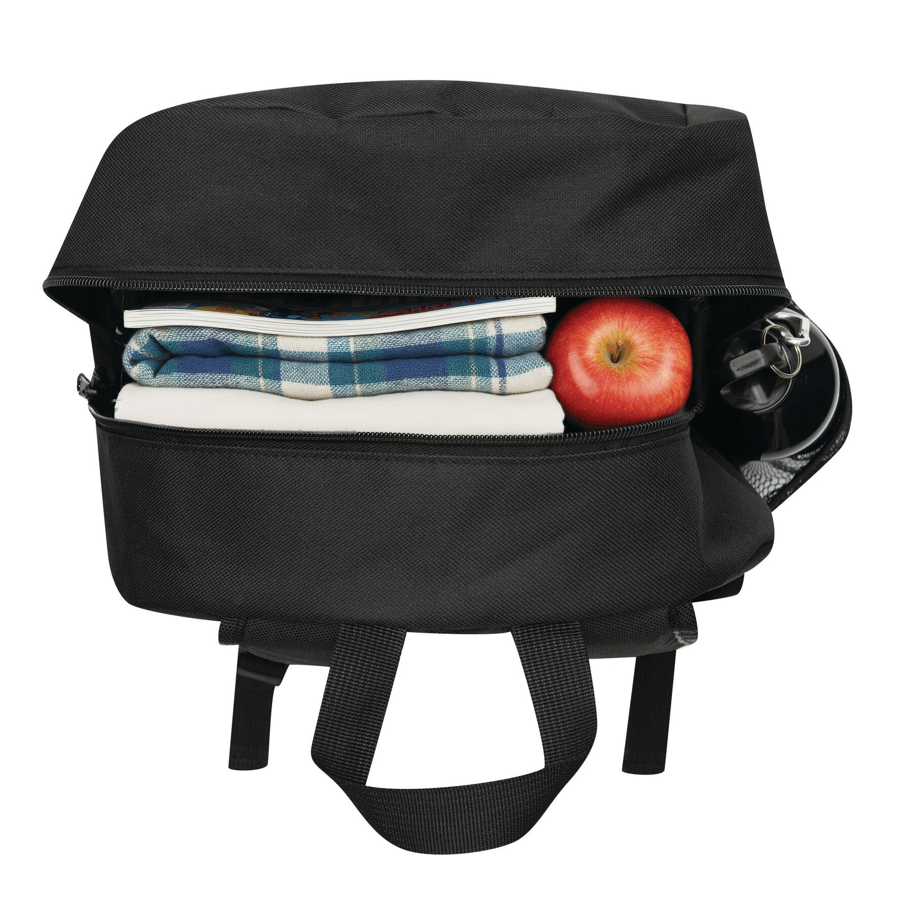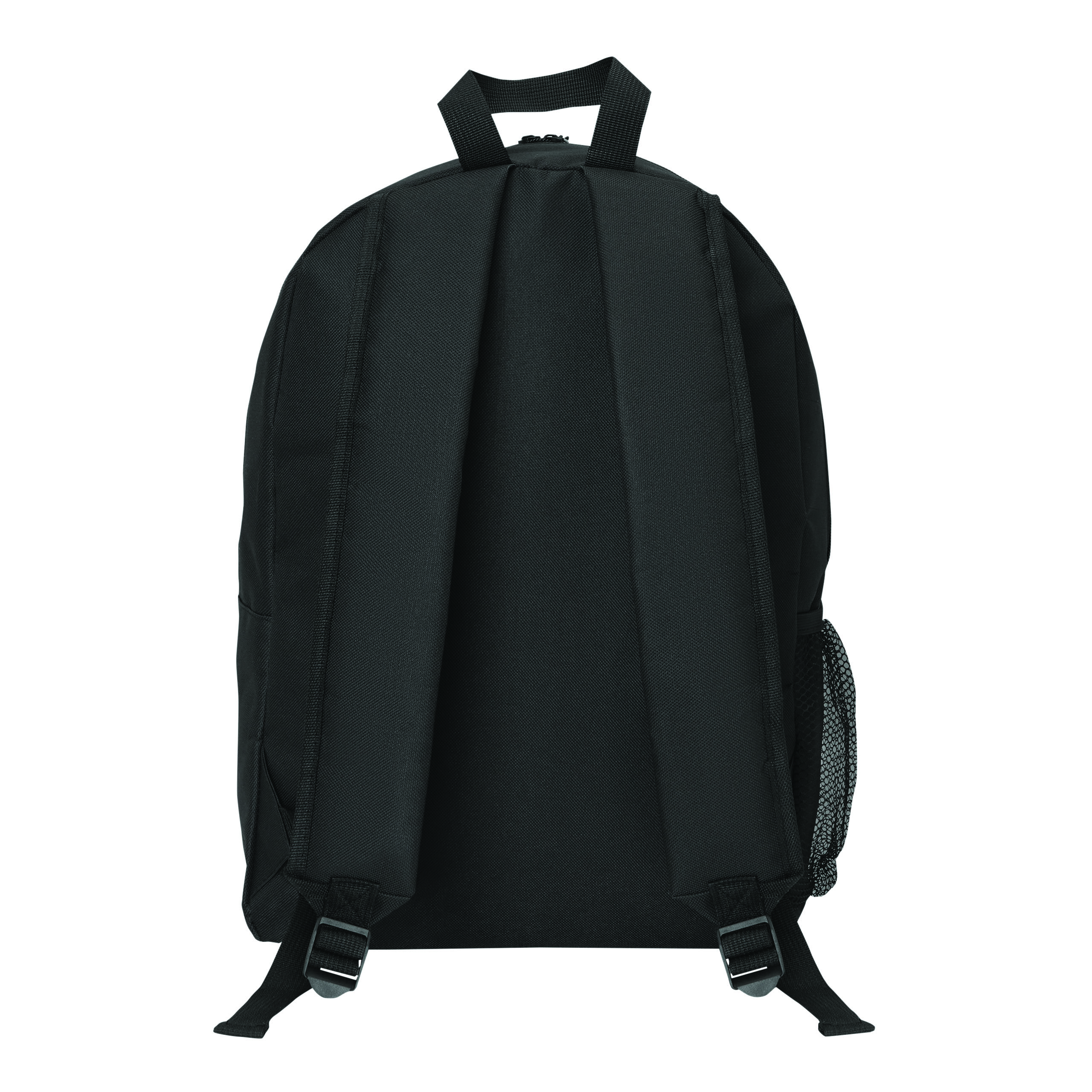 Plecak FARO. Wykonany jest z poliestru pochodzącego z recyklingu (rPET). Ma główną komorę zapinaną na zamek błyskawiczny, przednią kieszeń zapinaną na zamek błyskawiczny z regulowanym elastycznym sznurkiem, uchwyt do przenoszenia, 1 boczną kieszeń z siatki, wyściełane dno oraz regulowane wyściełane paski na ramię.