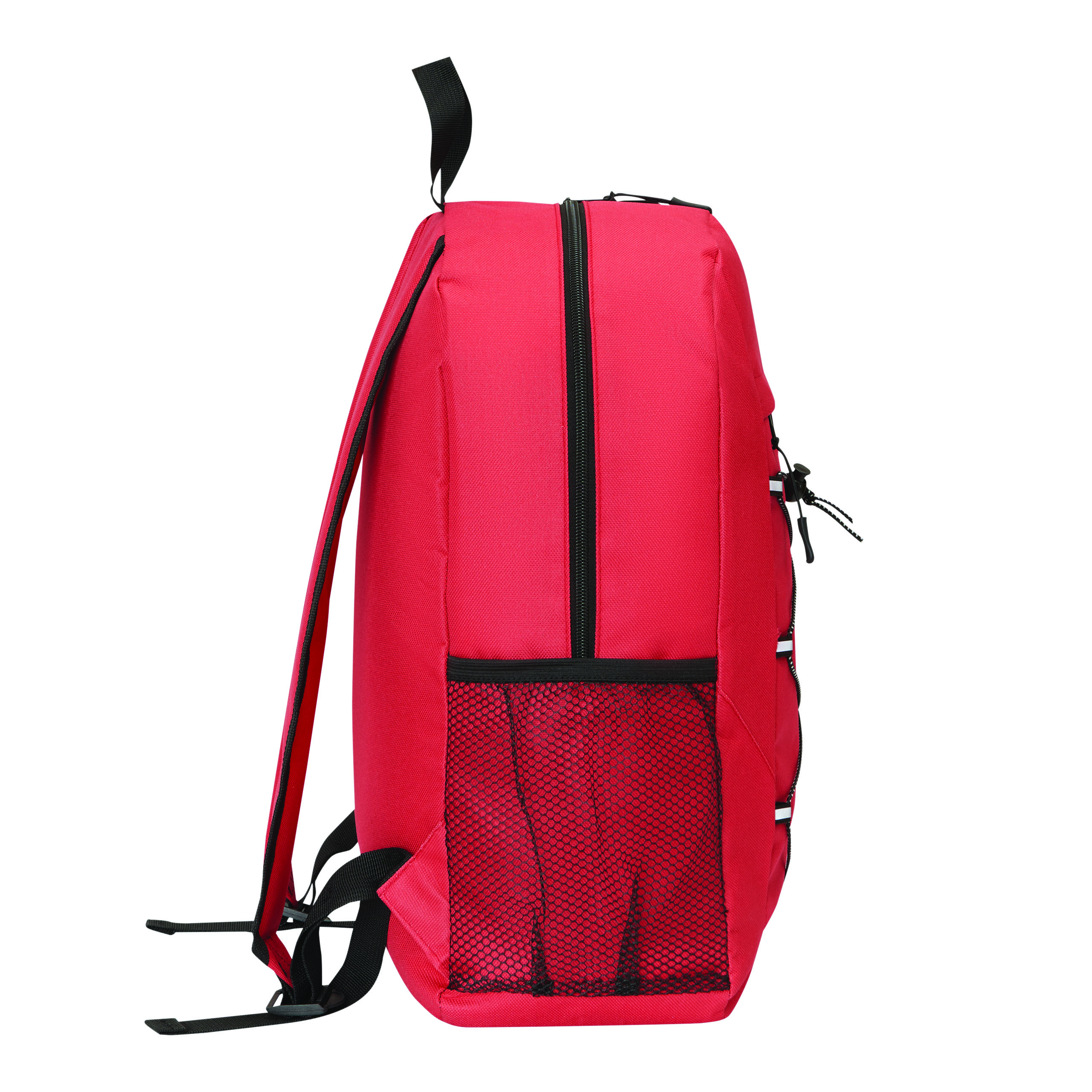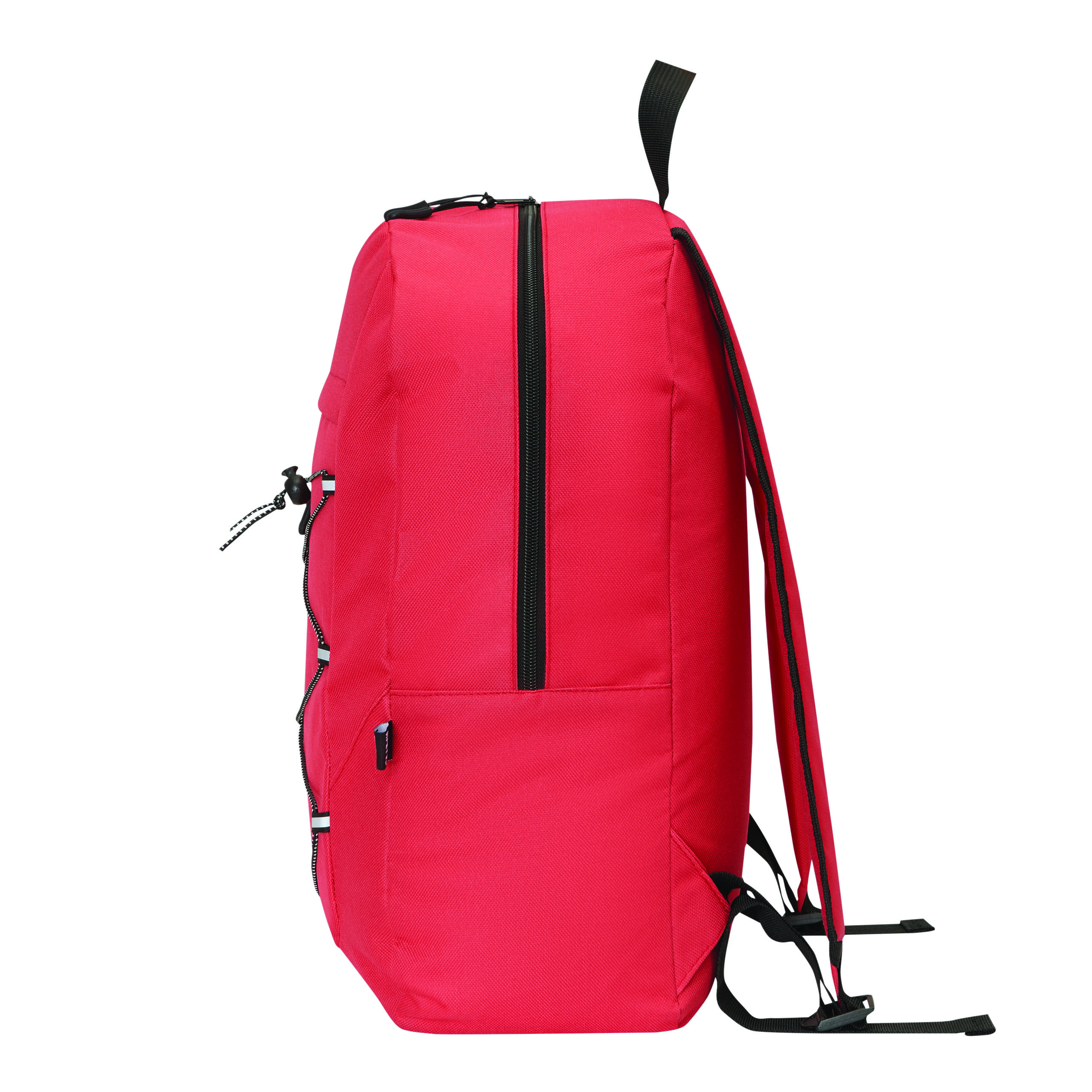 Plecak FARO. Wykonany jest z poliestru pochodzącego z recyklingu (rPET). Ma główną komorę zapinaną na zamek błyskawiczny, przednią kieszeń zapinaną na zamek błyskawiczny z regulowanym elastycznym sznurkiem, uchwyt do przenoszenia, 1 boczną kieszeń z siatki, wyściełane dno oraz regulowane wyściełane paski na ramię.