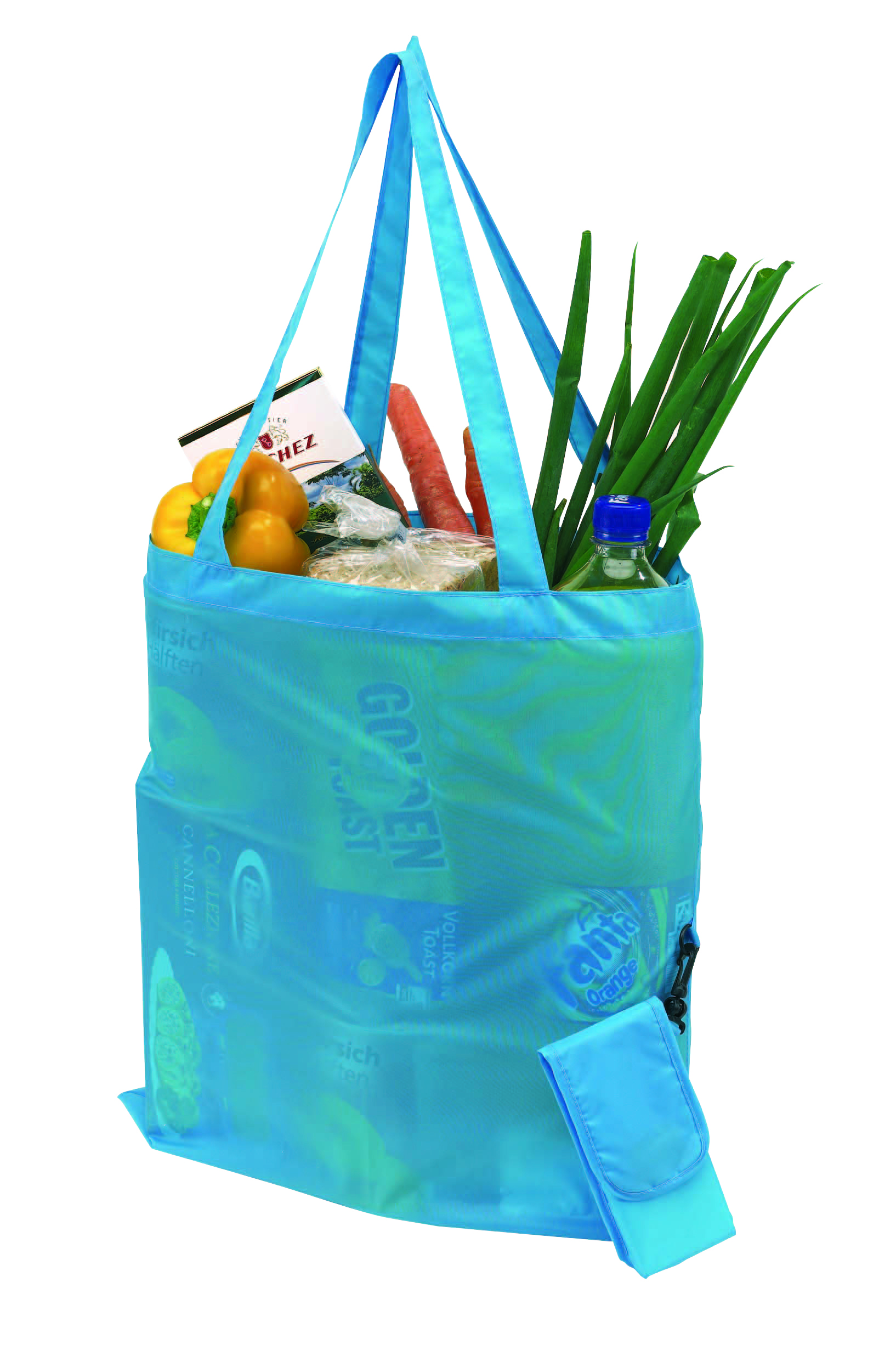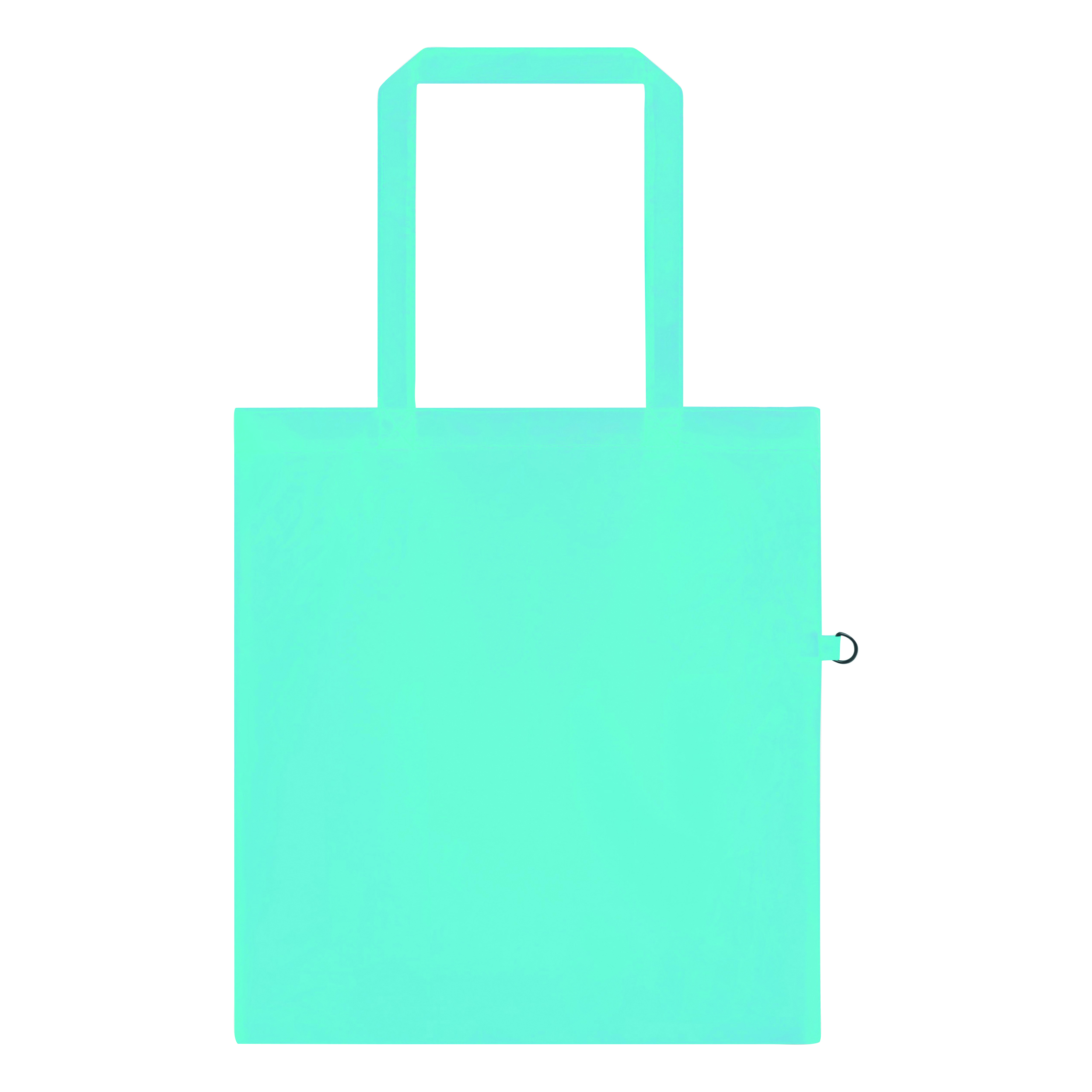 Torba na zakupy SHOPPY z długimi uchwytami, składana w zapinany na rzep pokrowiec z karabińczykiem.