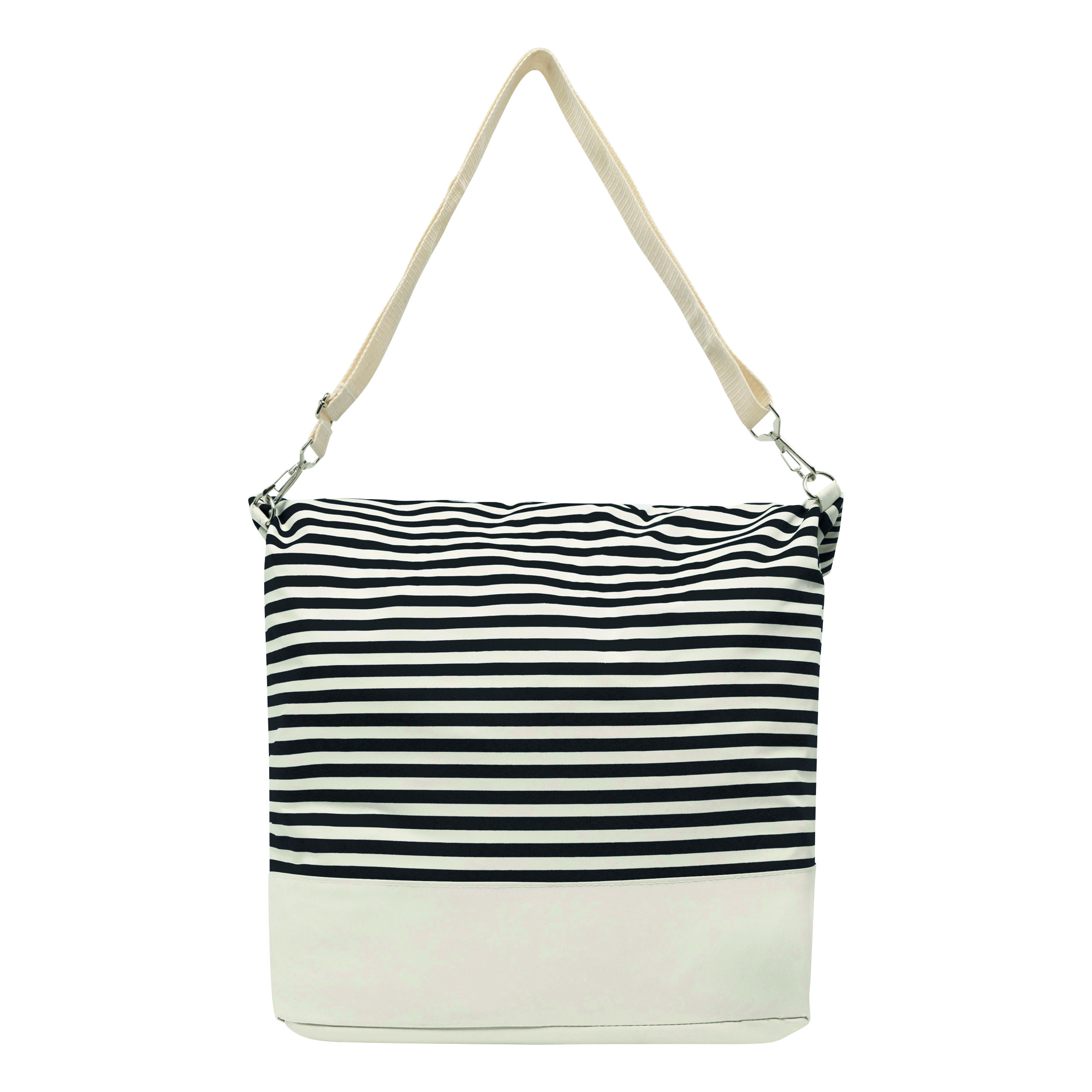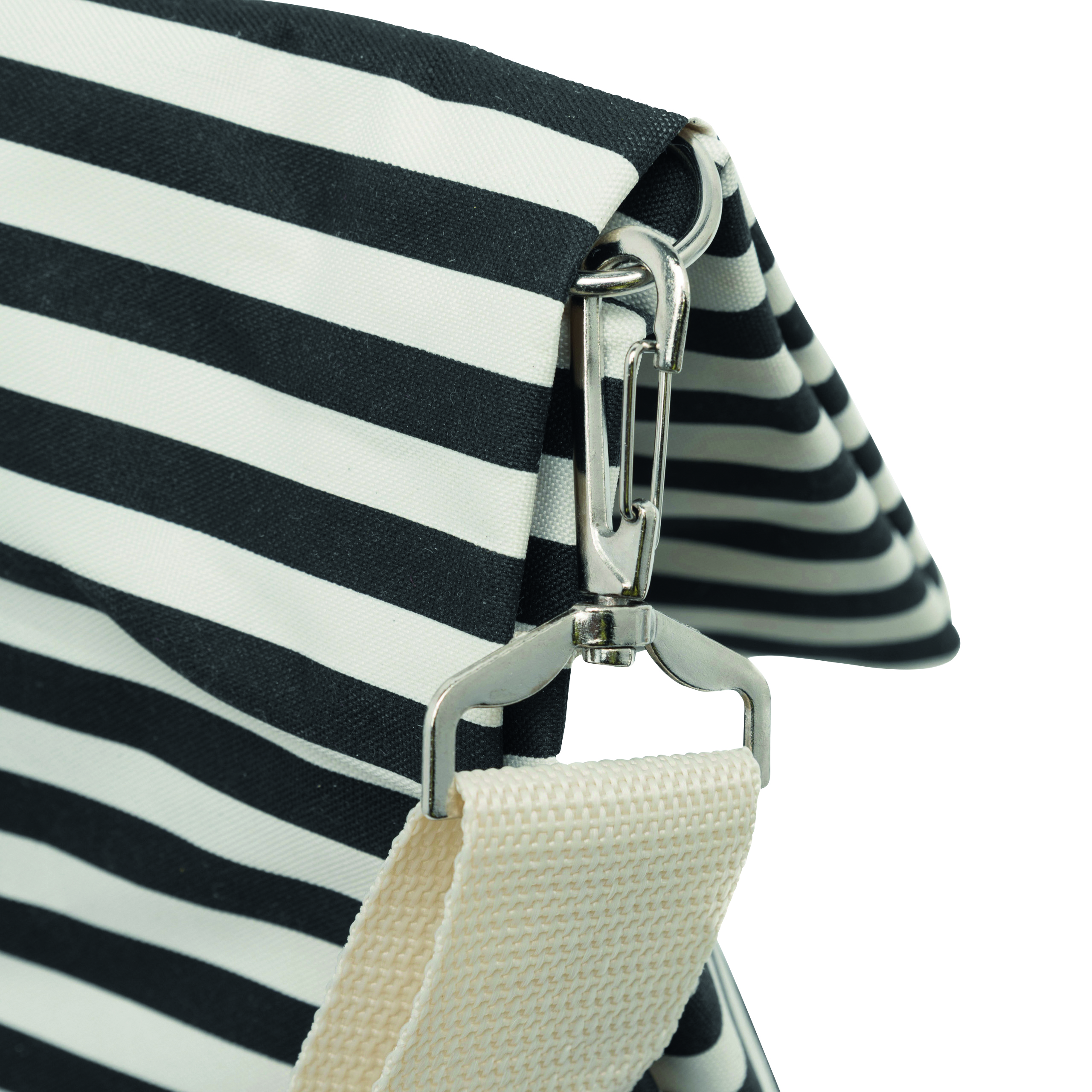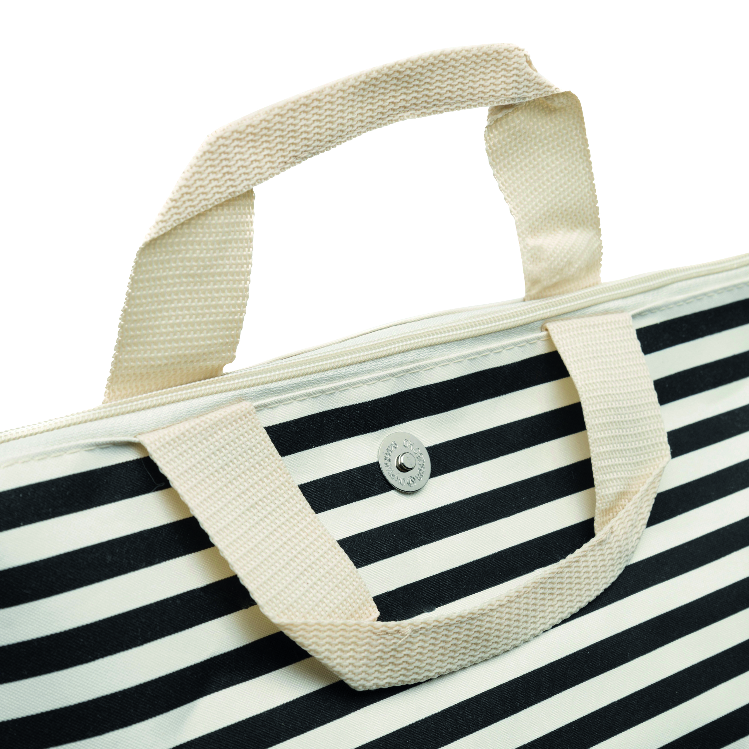 Torba plażowa JUIST z przestronną główną komorą na zamek, posiada 2 wygodne uchwyty do przenoszenia, regulowany i odpinany pasek na ramię, rozkładana dodatkowo dzięki guzikom magnetycznym (pojemność torby można zwiększyć lub zmniejszyć o około 25%).