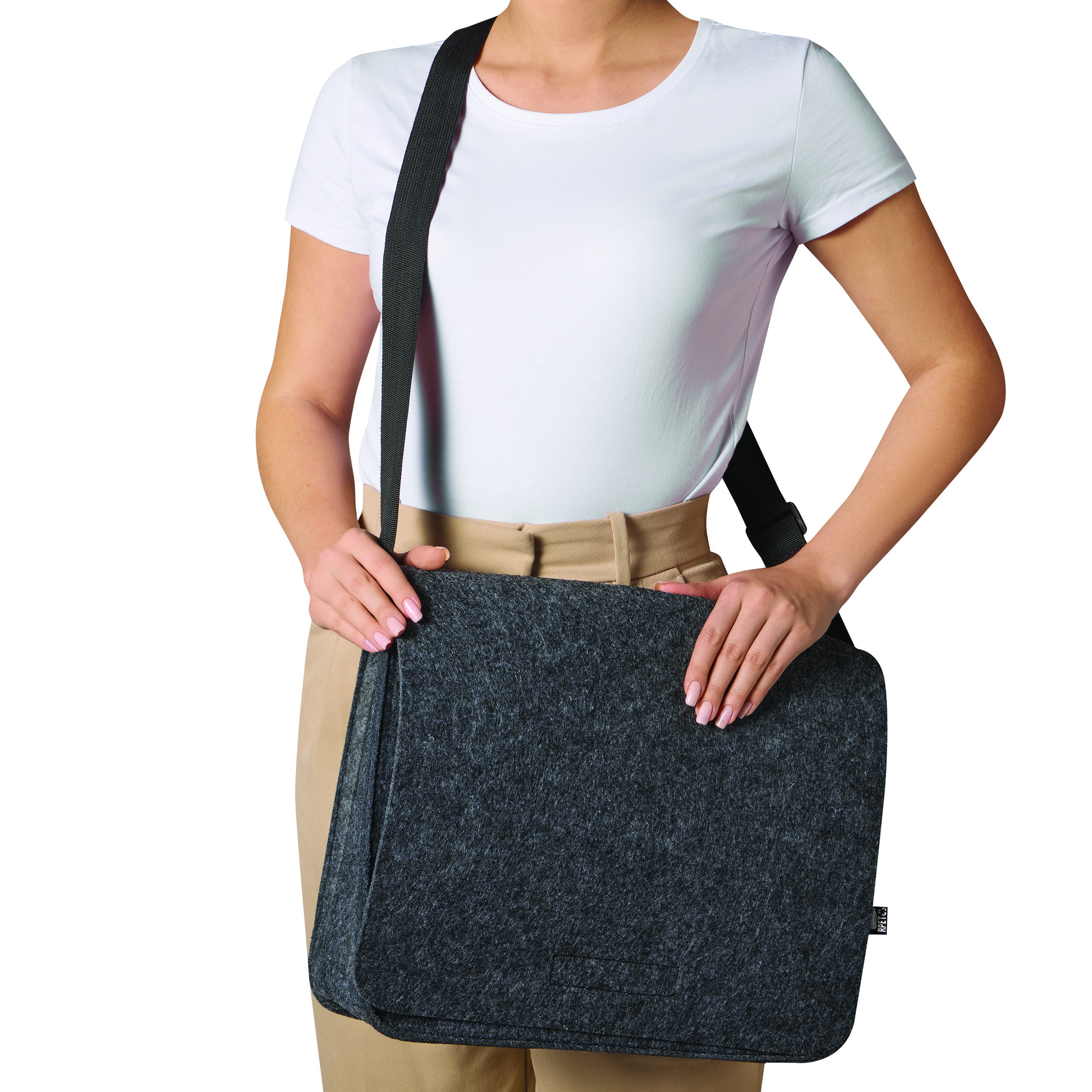Torba na ramię LUTON. Wykonana jest z poliestru pochodzącego z recyklingu (rPET). Posiada klapę z zapięciem na rzep, pojemną komorę główną oraz regulowany pasek na ramię.