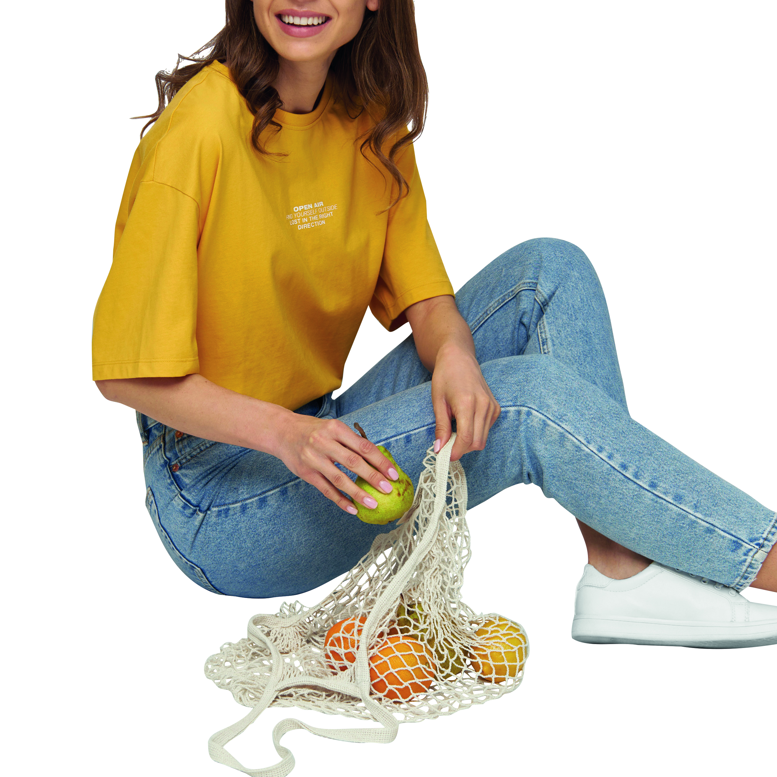 Siatka na zakupy NET L, duża siatka w stylu retro, z owijką do nadruku, z 2 uchwytami do przenoszenia