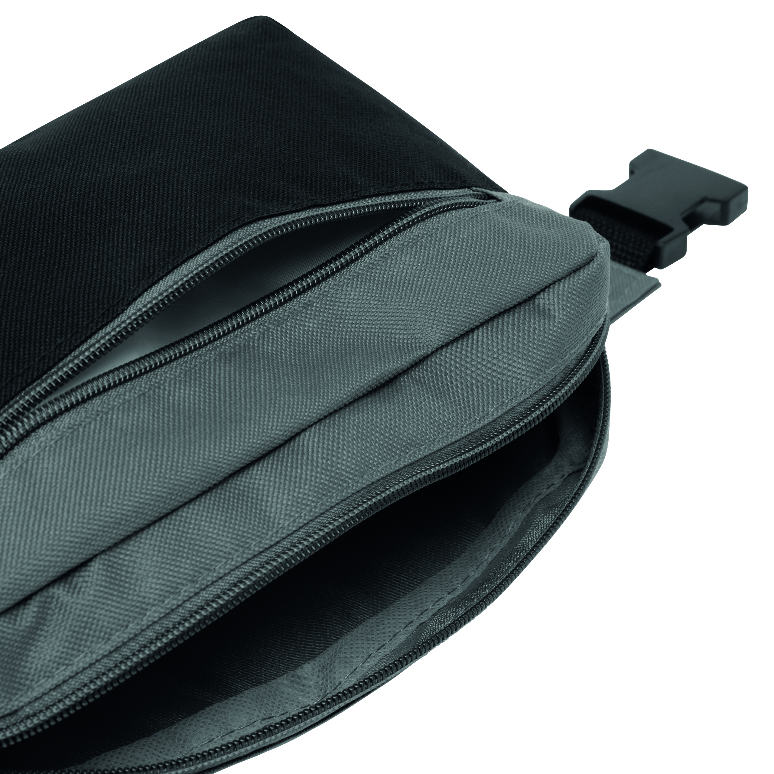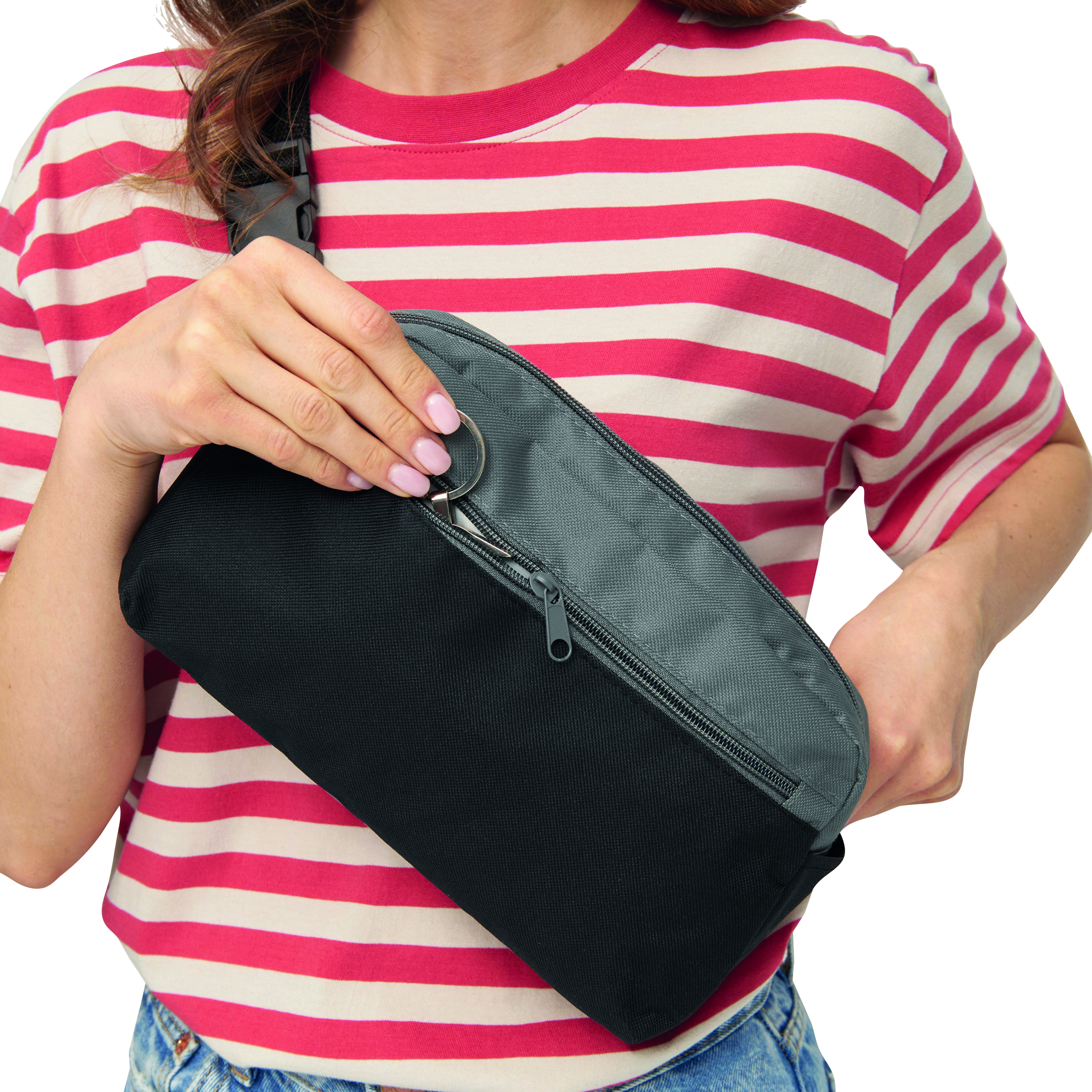 Saszetka CLOSE-BY z przestronną komorą główną i przednią zapinaną na zamek, 2 kieszenie boczne, regulowany pas z klamrą, idealna na drobiazgi i inne cenne rzeczy.